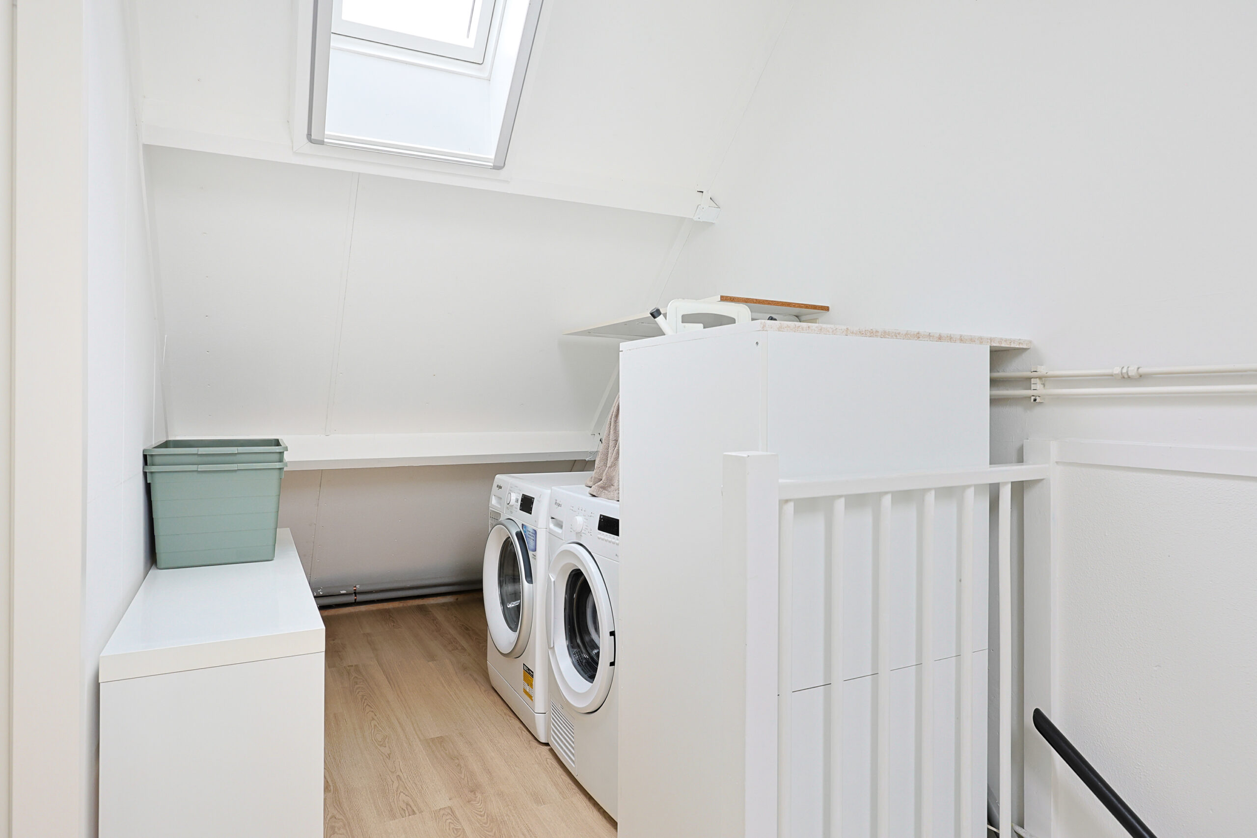 2DE VERDIEPING: Zeer ruime overloop met opstel plaats voor wasmachine en droger en vanaf hier toegang naar de mooie 4e slaapkamer van circa 15,8 m2 die is voorzien van twee tuimelramen.