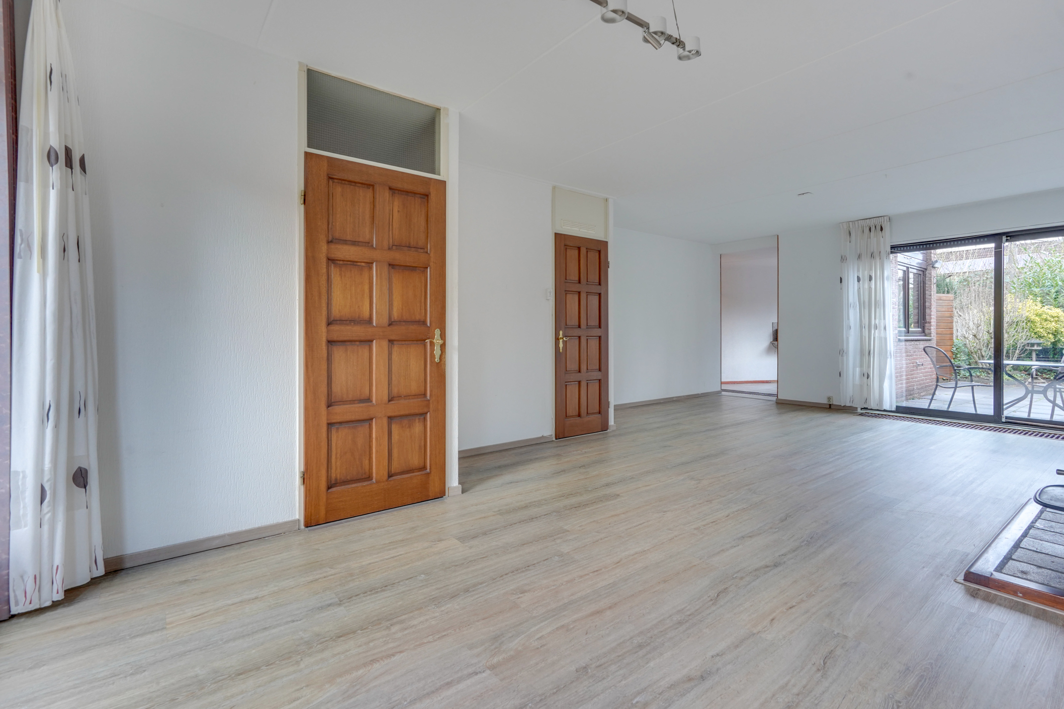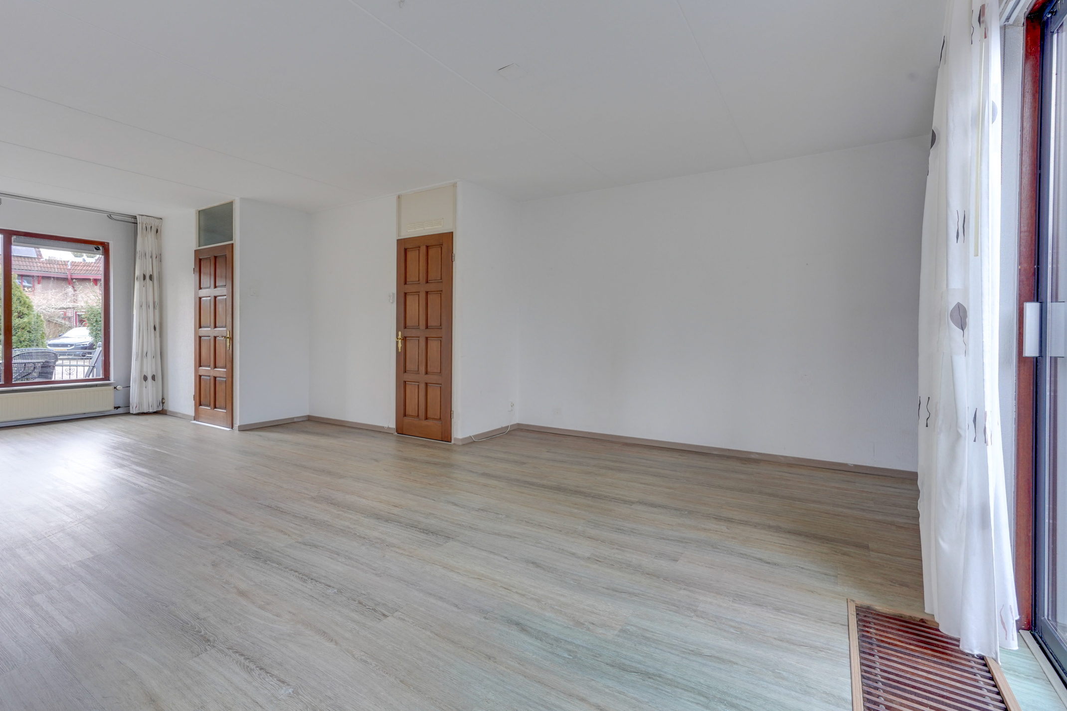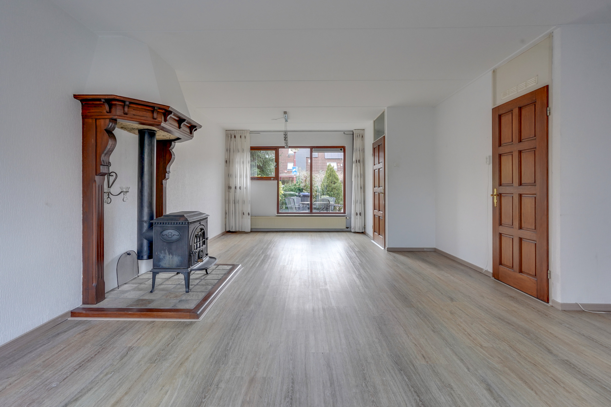 – De woon-/eetkamer is ruim en licht en biedt prettig uitzicht over de voor-/achtertuin.