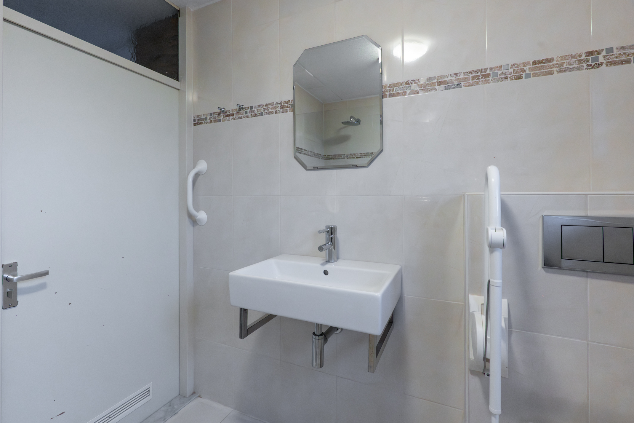 – Keurige badkamer.