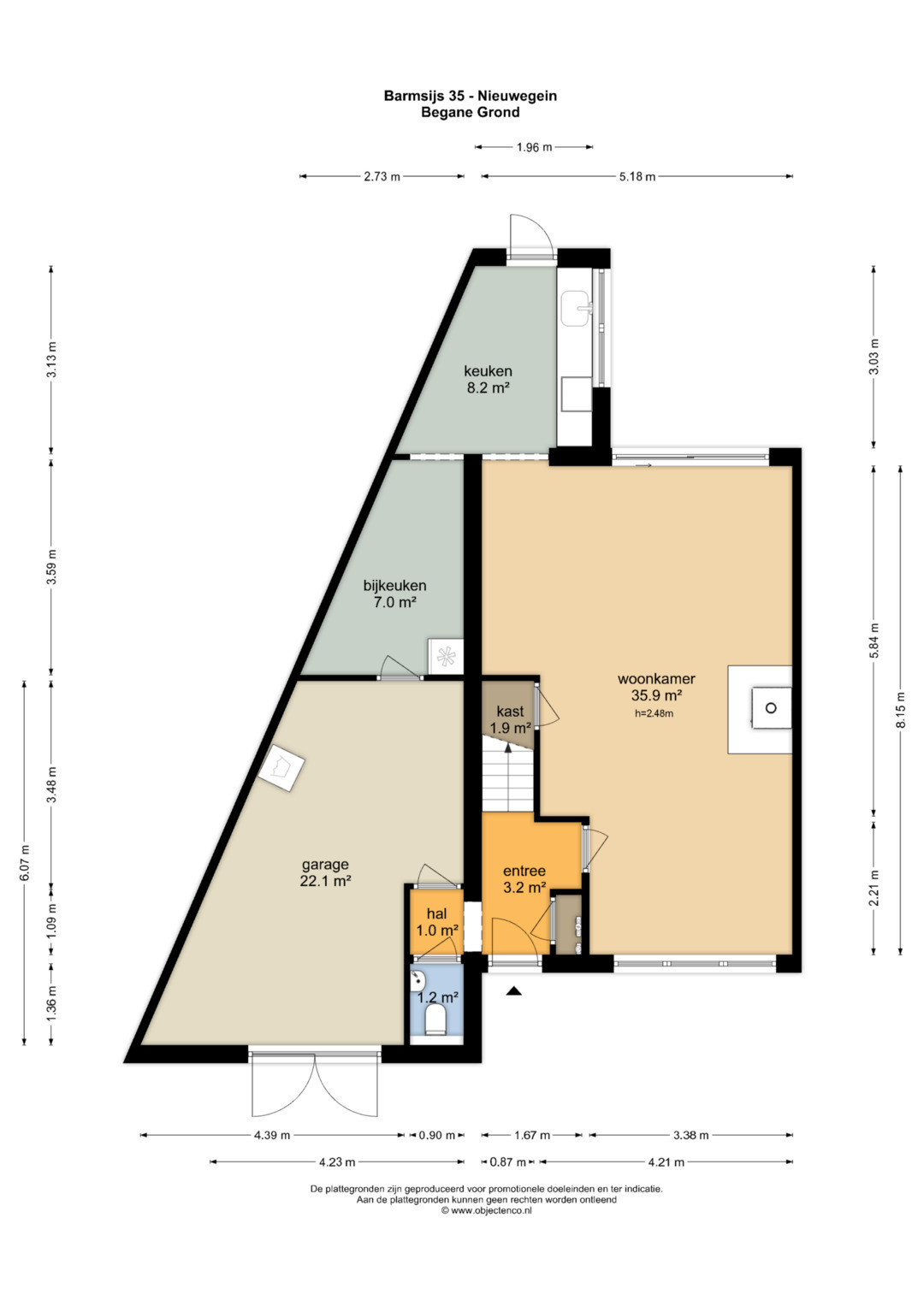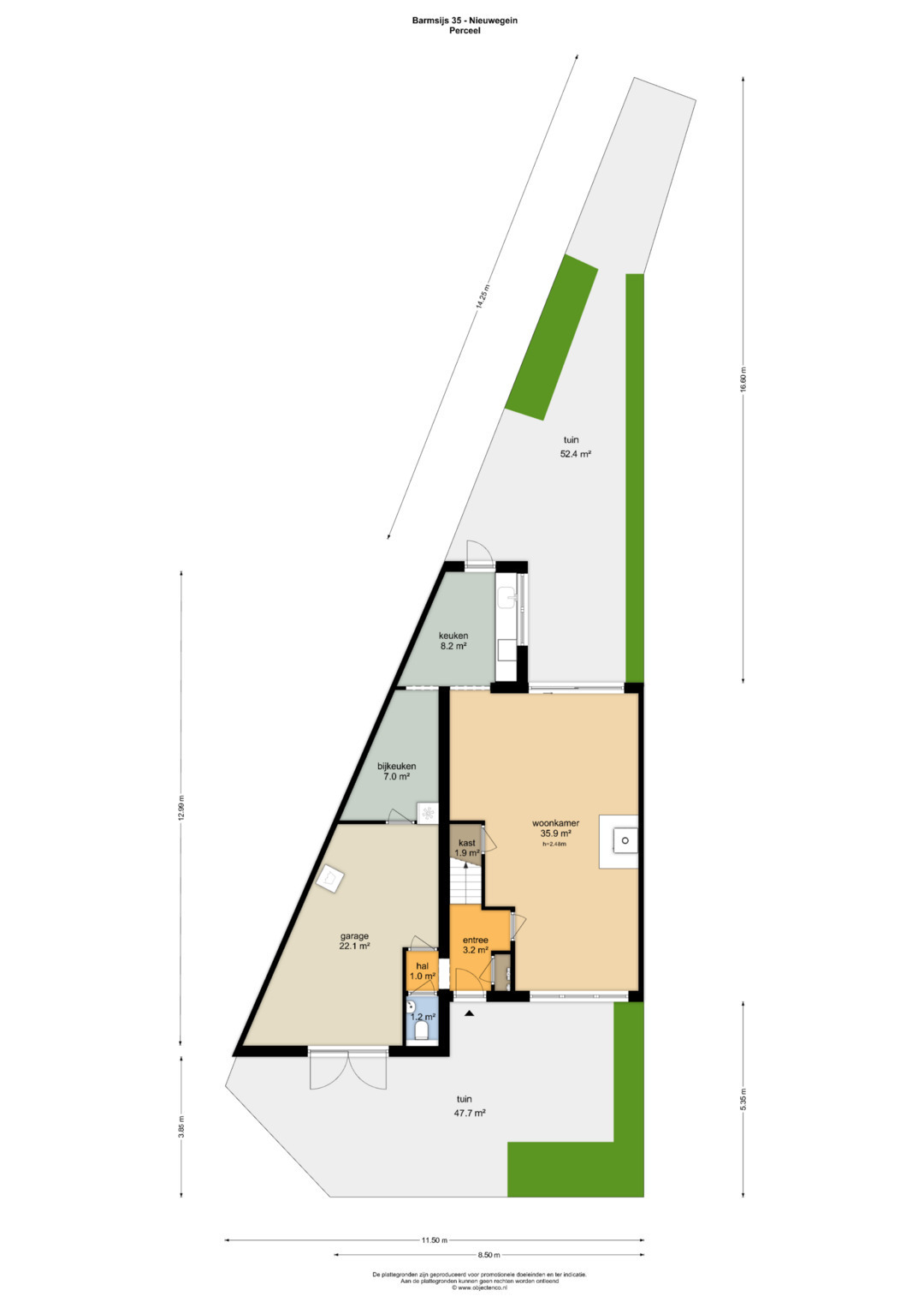 – De garage is van binnenuit bereikbaar en heeft een oppervlakte van ca. 23 m2.