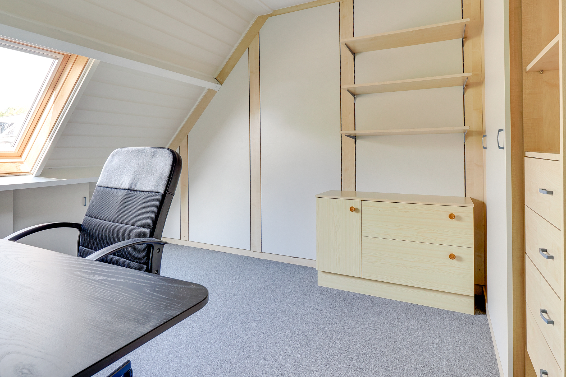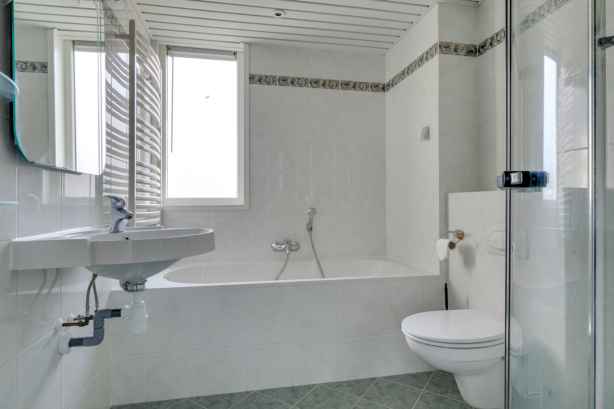 1E VERDIEPING: Op de eerste verdieping bevinden zich twee ruime slaapkamers van resp. 14,1 m2 en 11,3 m2. Erg praktisch is de aparte wasruimte, welke tevens in gebruik kan worden genomen als werkplek. De nette badkamer is voorzien van wastafel, 2e toilet, bad, douche en designradiator.