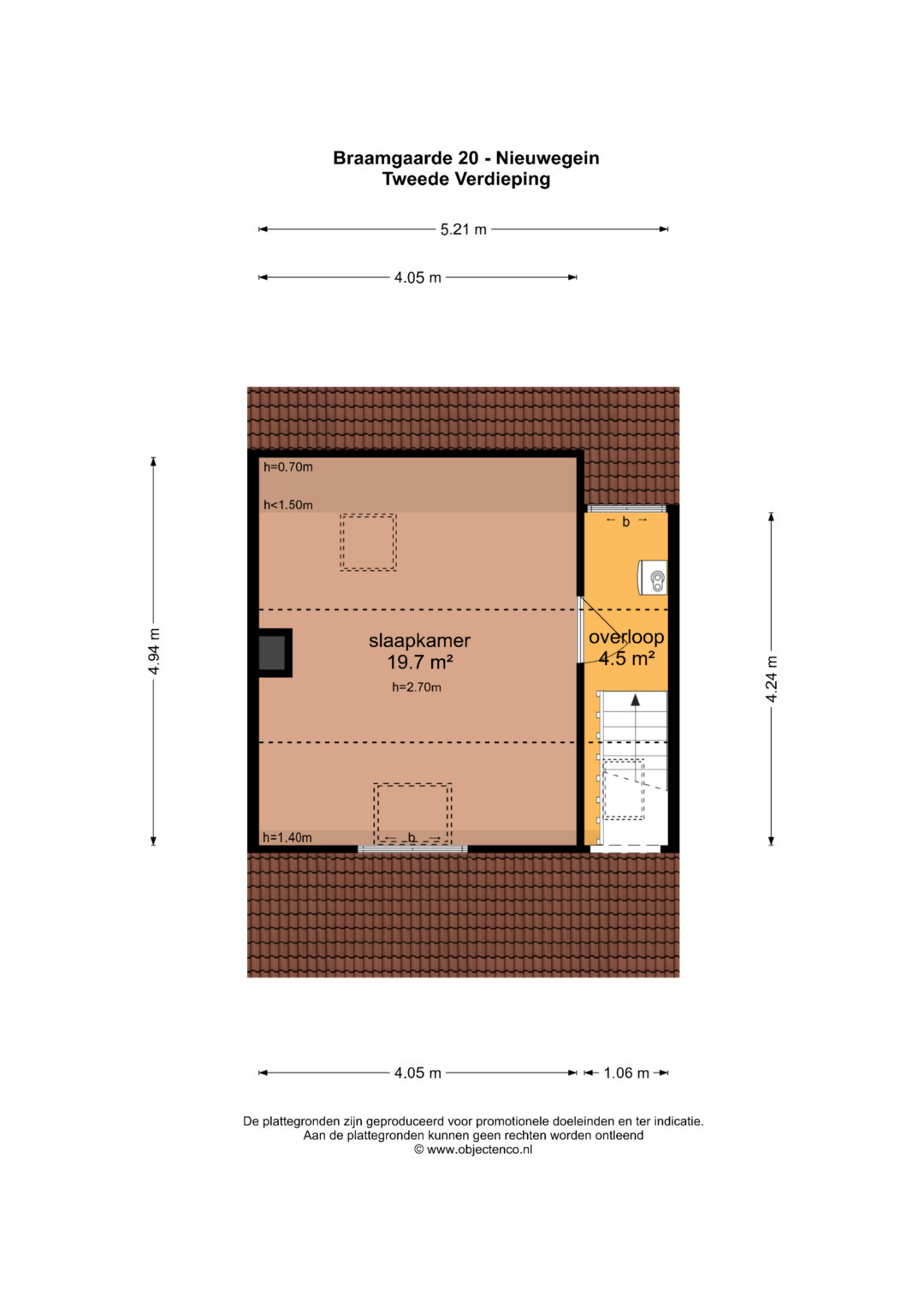 2E VERDIEPING: Overloop met plaats voor de C.V.-ketel volgens opgaaf uit 2021 en toegang tot één grote slaapkamers van resp. 19,7 m2, welke beschikt over dakramen. Deze ruimte kan eenvoudig worden opgesplitst tot twee slaapkamers.