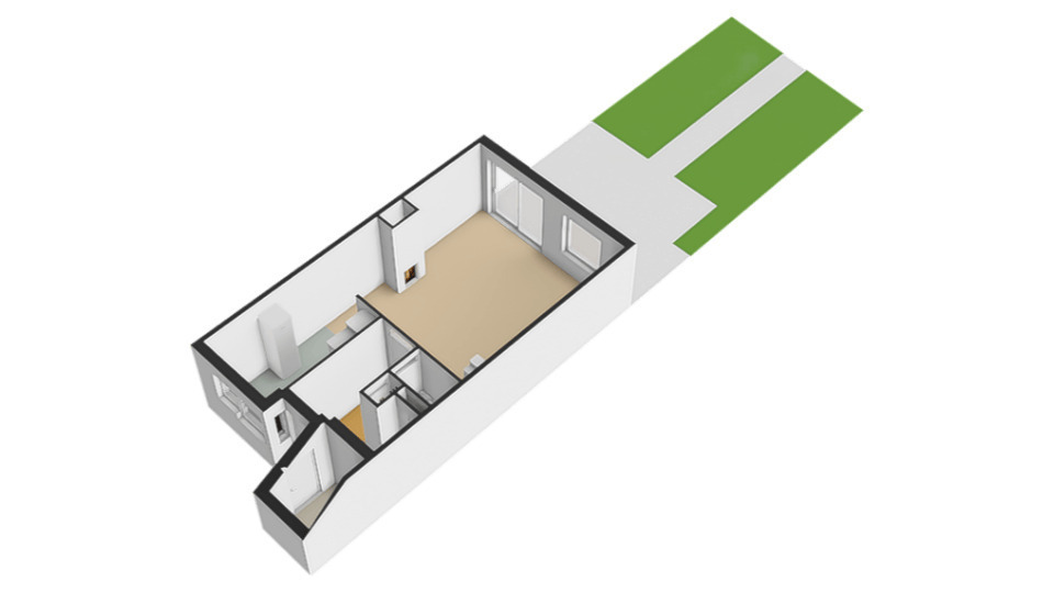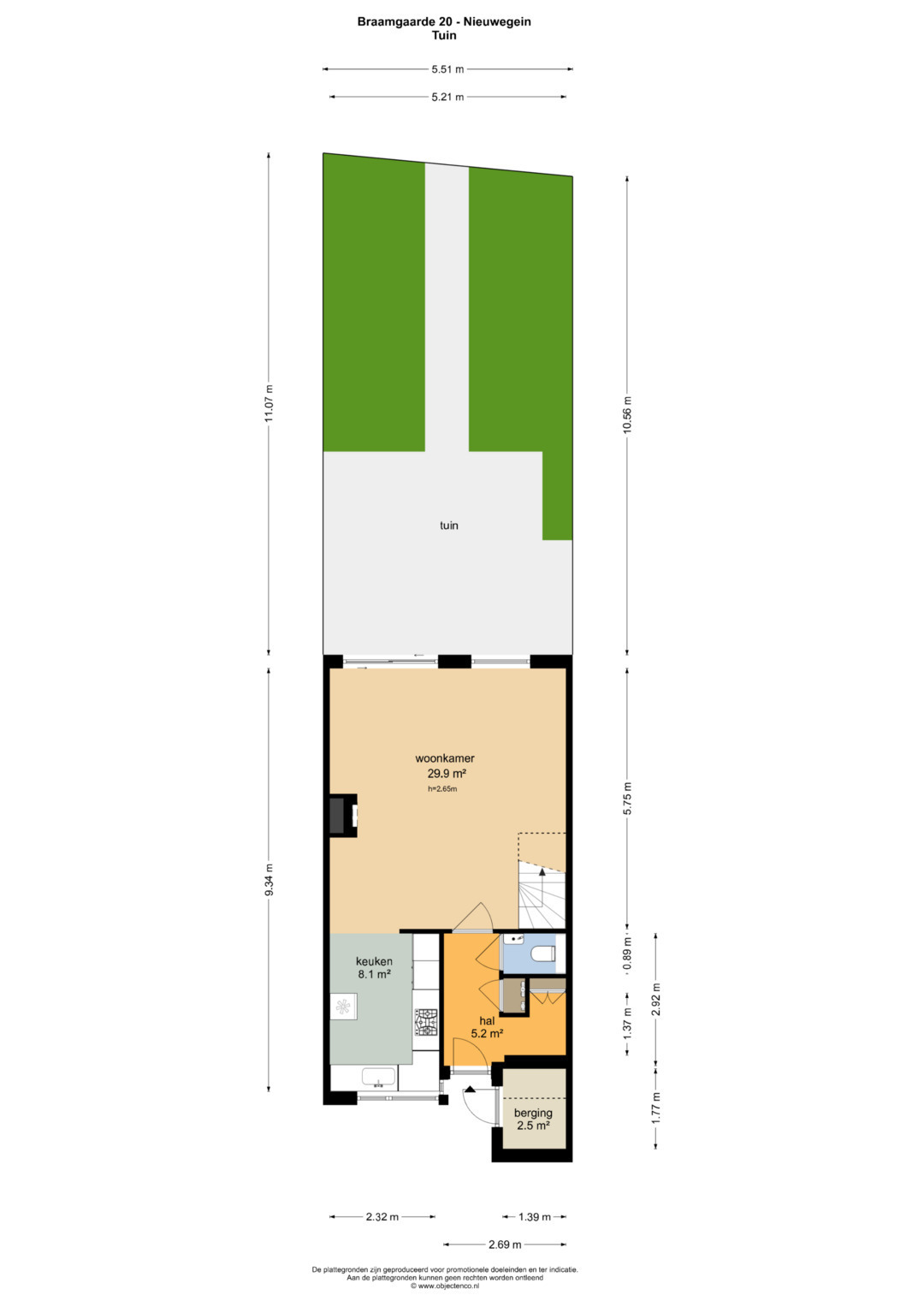 BEGANE GROND: Hal/entree, welke toegang biedt tot het toilet met fontein, de meterkast en de woonkamer. De ruime woonkamer beschikt over veel lichtinval door de vele raampartijen en daarnaast bevindt zich er een sfeervolle haard. De woonkamer biedt middels een schuifpui toegang tot de achtertuin. Aan de voorzijde van de woning bevindt zich de half open keuken. De half open keuken is voorzien van losstaande koel-/vriescombinatie, oven, 4 pits gasstel, afzuigkap, vaatwasser, voldoende opberg mogelijkheden en biedt prettig zicht over de straat. De achtertuin is erg fijn en biedt voldoende ruimte, zelfs wanneer de woning zal worden uitgebouwd. De achtertuin is keurig aangelegd en gesitueerd op het oosten. Aan de voorzijde van de woning bevindt zich de interne berging van ca. 2,5 m2.