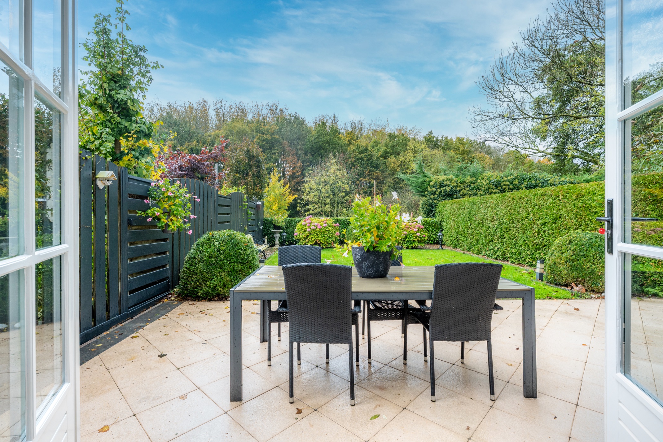 – Diepe tuin gelegen op het westen en keurig aangelegd.