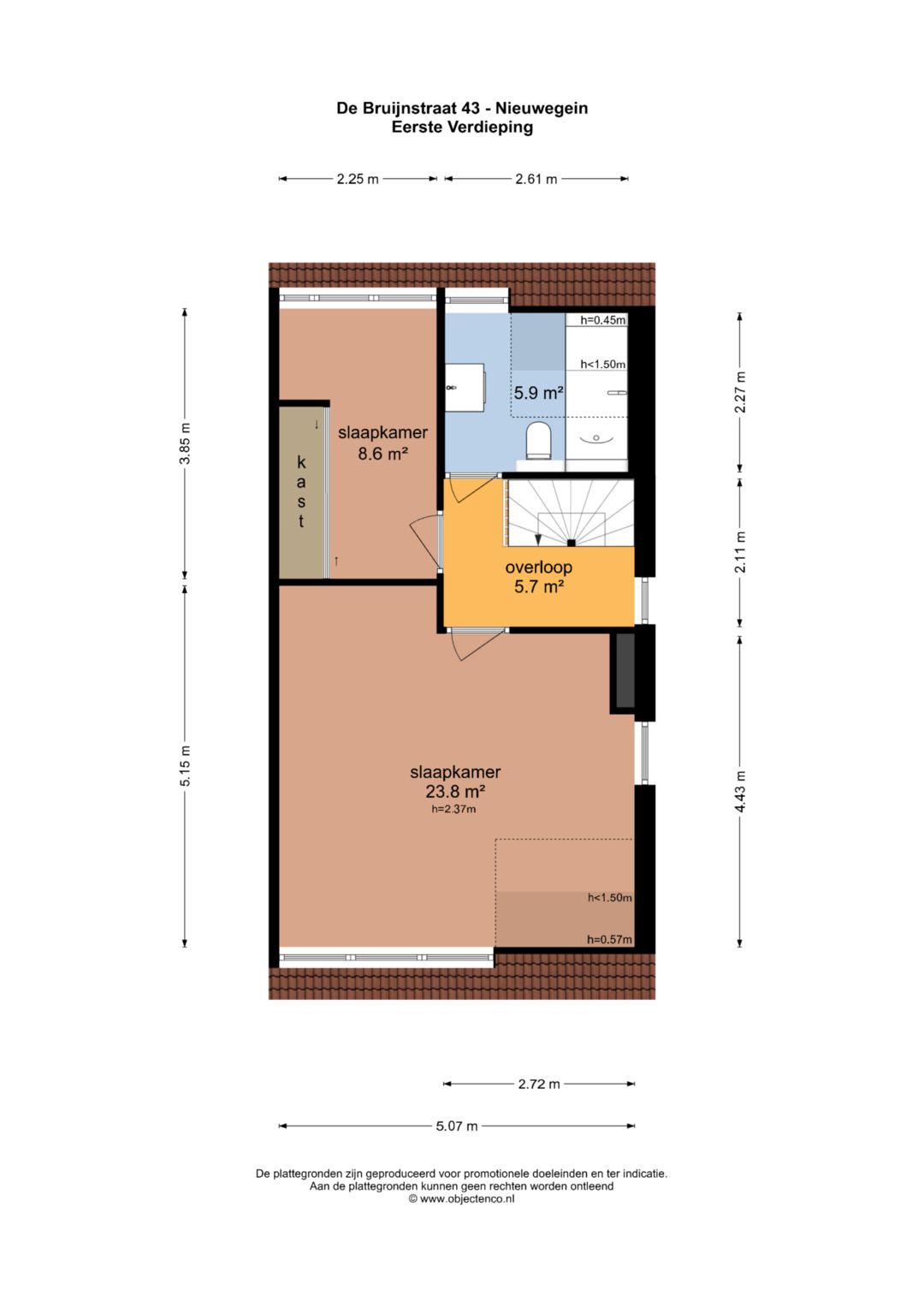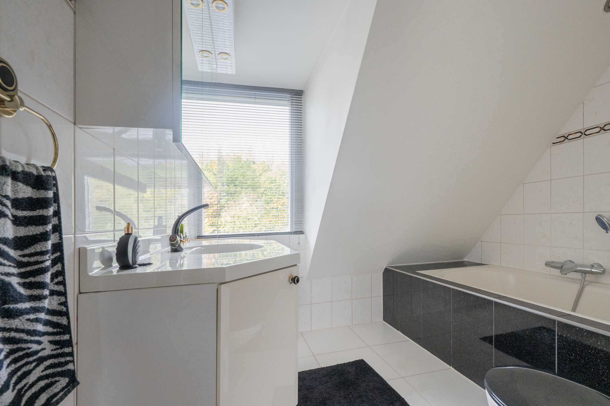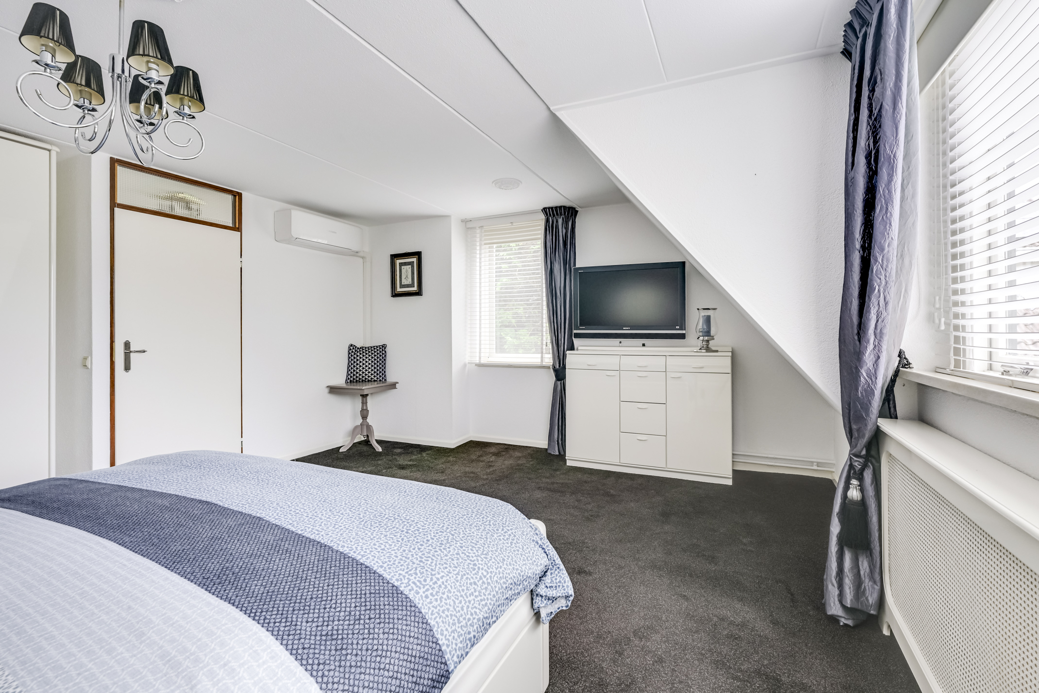 1e Verdieping: Ruime overloop met aan de voorzijde een erg grote slaapkamer van 23,8 m2 die voorzien is van een dakkapel. Deze slaapkamer is eenvoudig op te delen in twee slaapkamers, wat voorheen ook zo was. Aan de achterzijde van de woning vind je de tweede slaapkamer van circa 8,6 m2 met een vaste kastenwand. De keurige badkamer is voorzien van een wastafelmeubel, ligbad en tweede toilet.