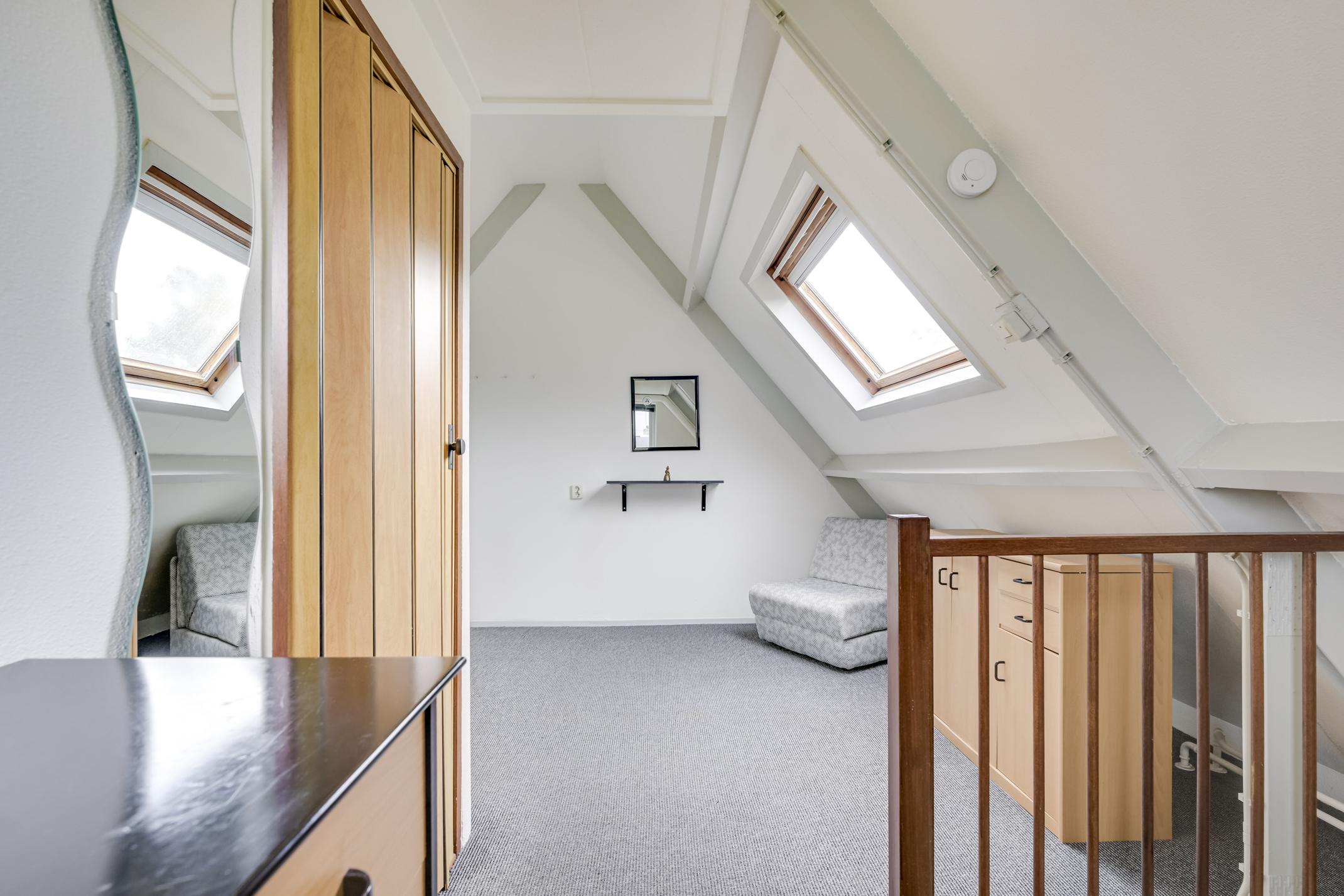 2e Verdieping: Zeer ruime overloop met toegang naar de zolderverdieping en een aparte waskamer. In deze waskamer bevindt zich ook de CV-opstelling en wasmachineaansluiting. De bergzolder is voorzien van een tuimelraam en er is hier eenvoudig een extra slaapkamer te realiseren.
