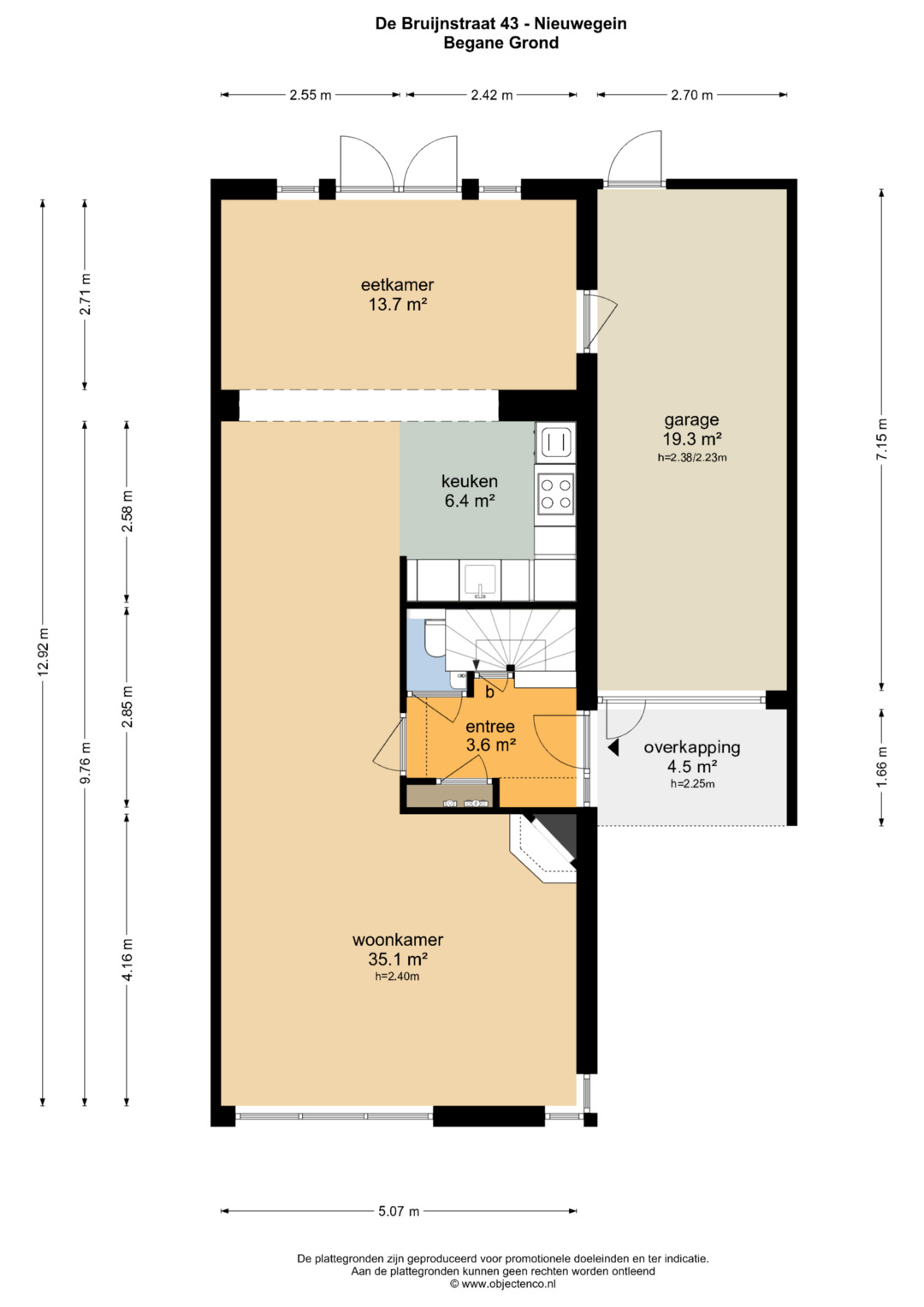 – Extra ruime garage van circa 19,3 m2.