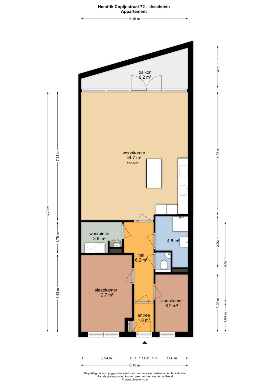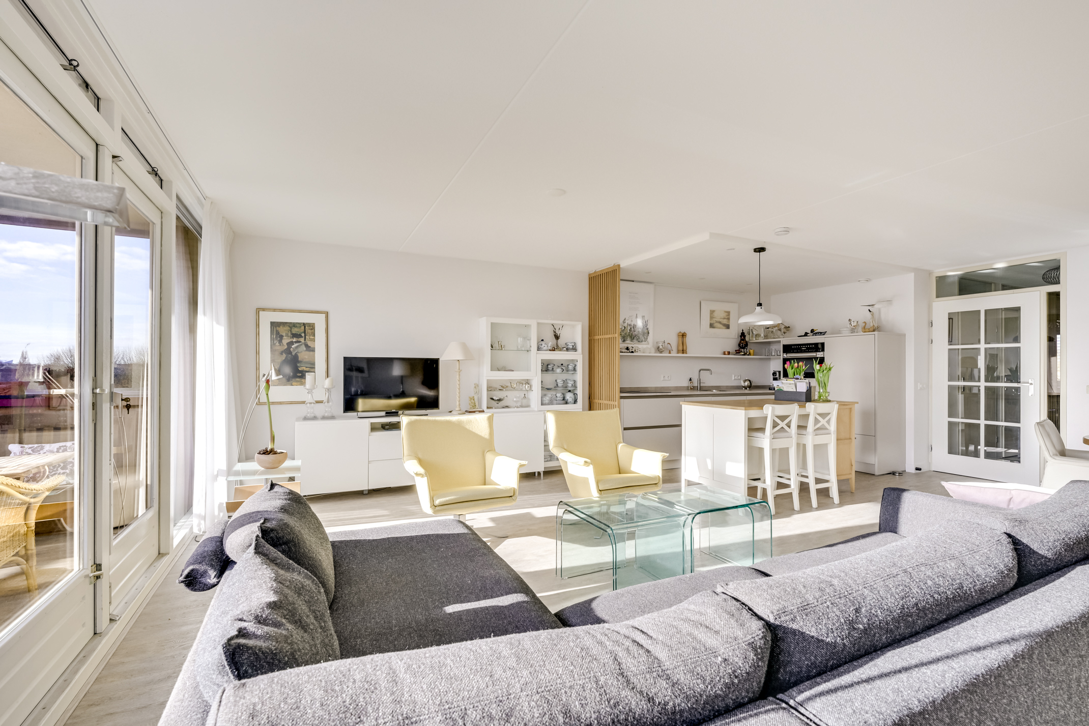 DERDE VERDIEPING: Vanuit een tussenhal bereik je de entree en zijn alle vertrekken bereikbaar. De woonkamer is een ruime, lichte kamer met ruimte voor een grote bank en een gezellige eettafel. De eye-catcher is naast het panoramische uitzicht toch zeker ook de open luxe keuken. De luxe keuken beschikt over alle gewenste inbouwapparatuur en is in een lichte kleurstelling uitgevoerd. Vanuit de woonkamer middels openslaande deuren is het ruime balkon bereikbaar. Het balkon ligt op het zuiden en biedt de hele dag een plaats in de zon! Vanuit het balkon is volop privacy en een panoramisch uitzicht over IJsselstein. De slaapkamers bevinden zich aan de voorzijde van het appartement. Beide slaapkamers hebben een prettige lichtinval en zijn indelingsvrije ruimtes. De slaapkamers zijn resp. 12,7 en 6,2 m2 groot.