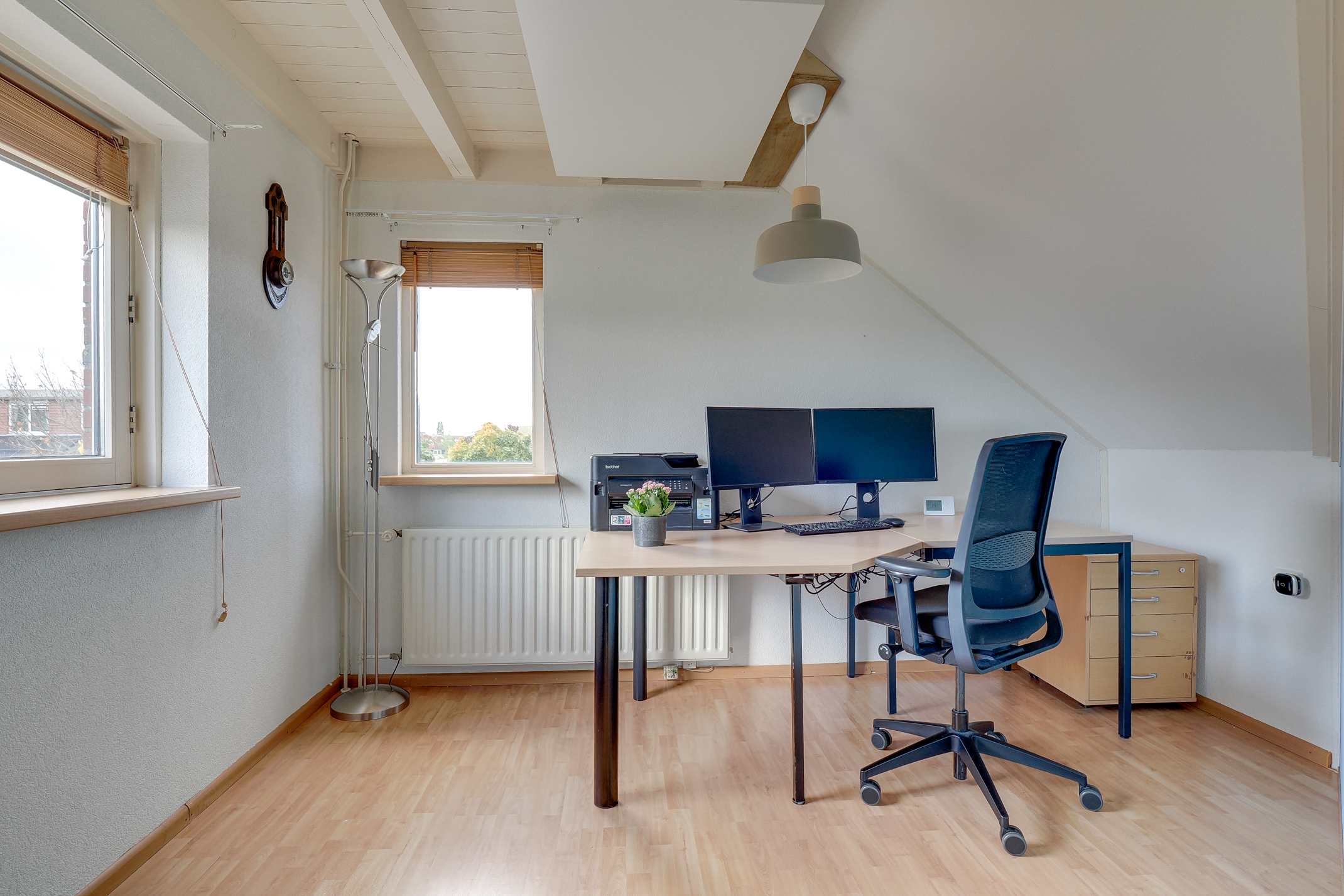 2e Verdieping: Zeer ruime overloop met mogelijkheid om hier een werkplek te creëren, separate wasruimte en twee speels ingedeelde slaapkamers van respectievelijk circa 8,9 m2 en 8,9 m2.