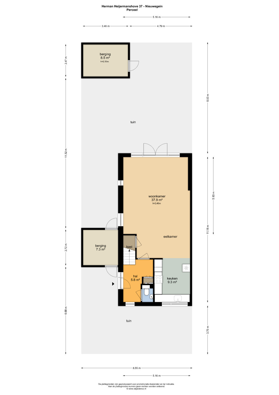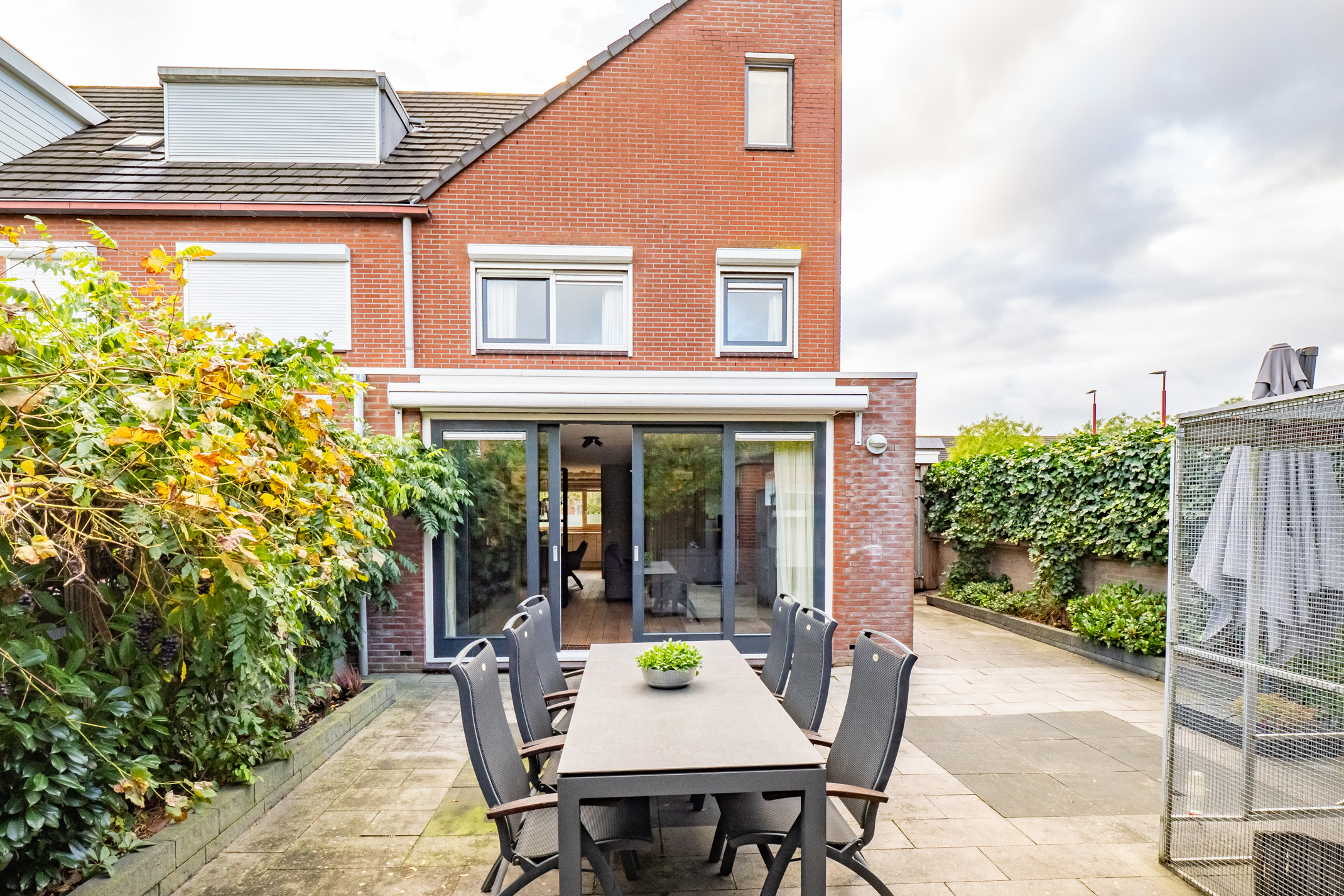 – Tuin voorzien van houten berging aan de kopgevel van circa 7,3 m2 en stenen berging van circa 8,5 m2 in de achtertuin.