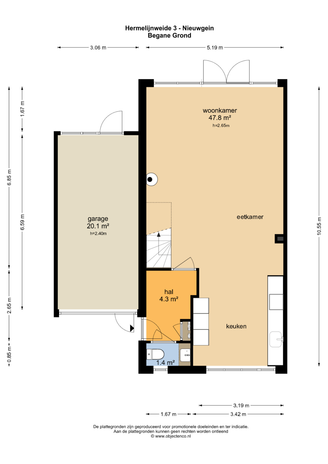 – De woning heeft een grote aangebouwde garage van maar liefst 20,1 m2.
