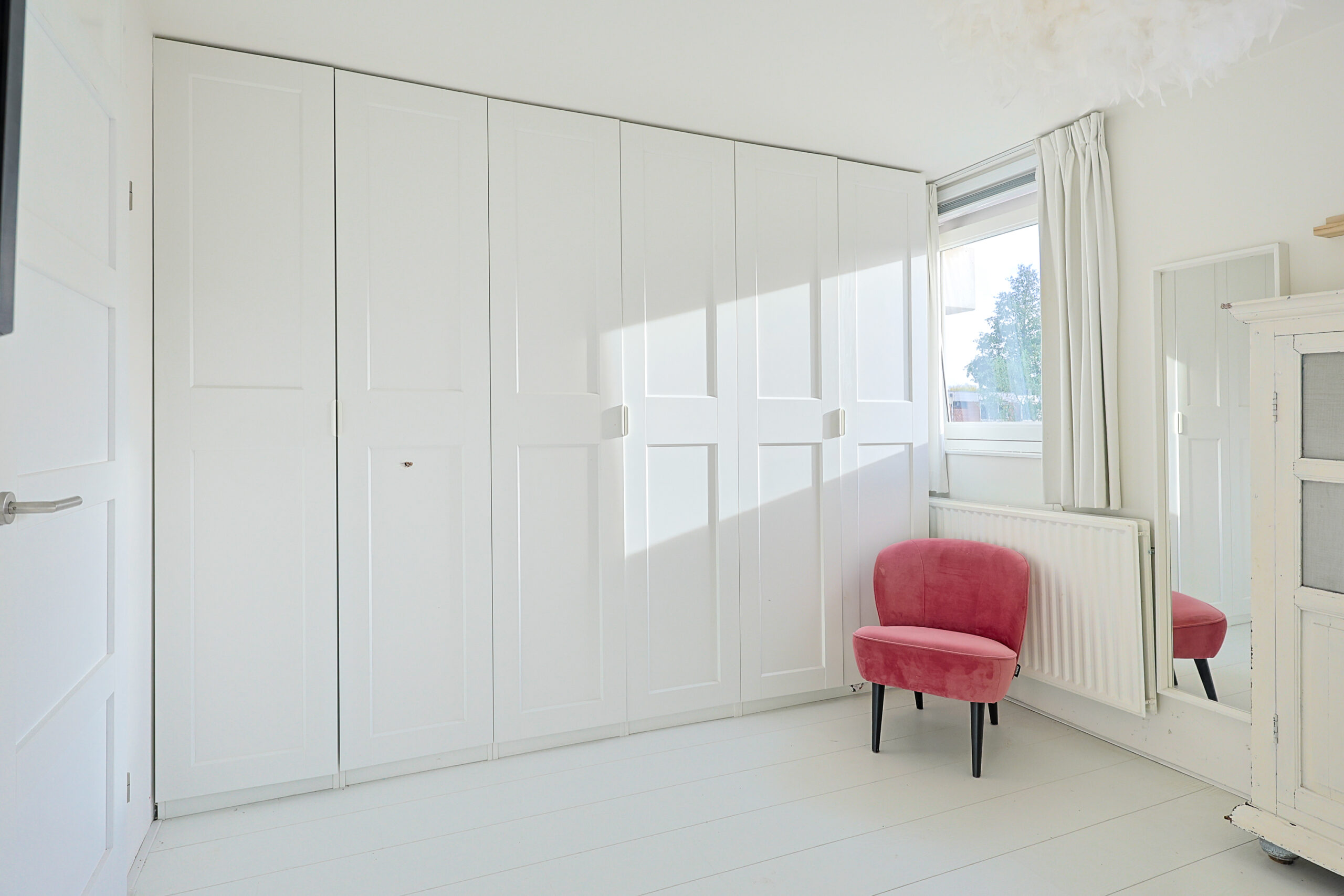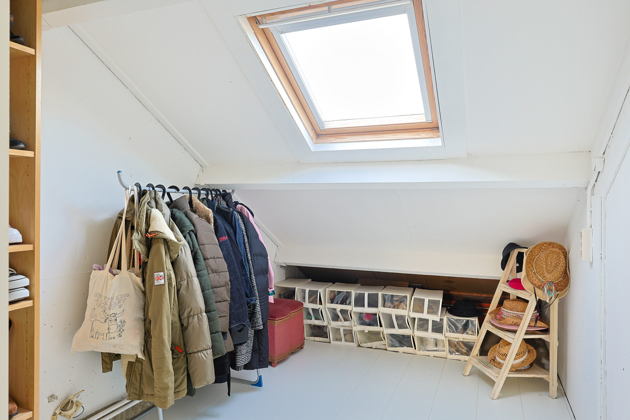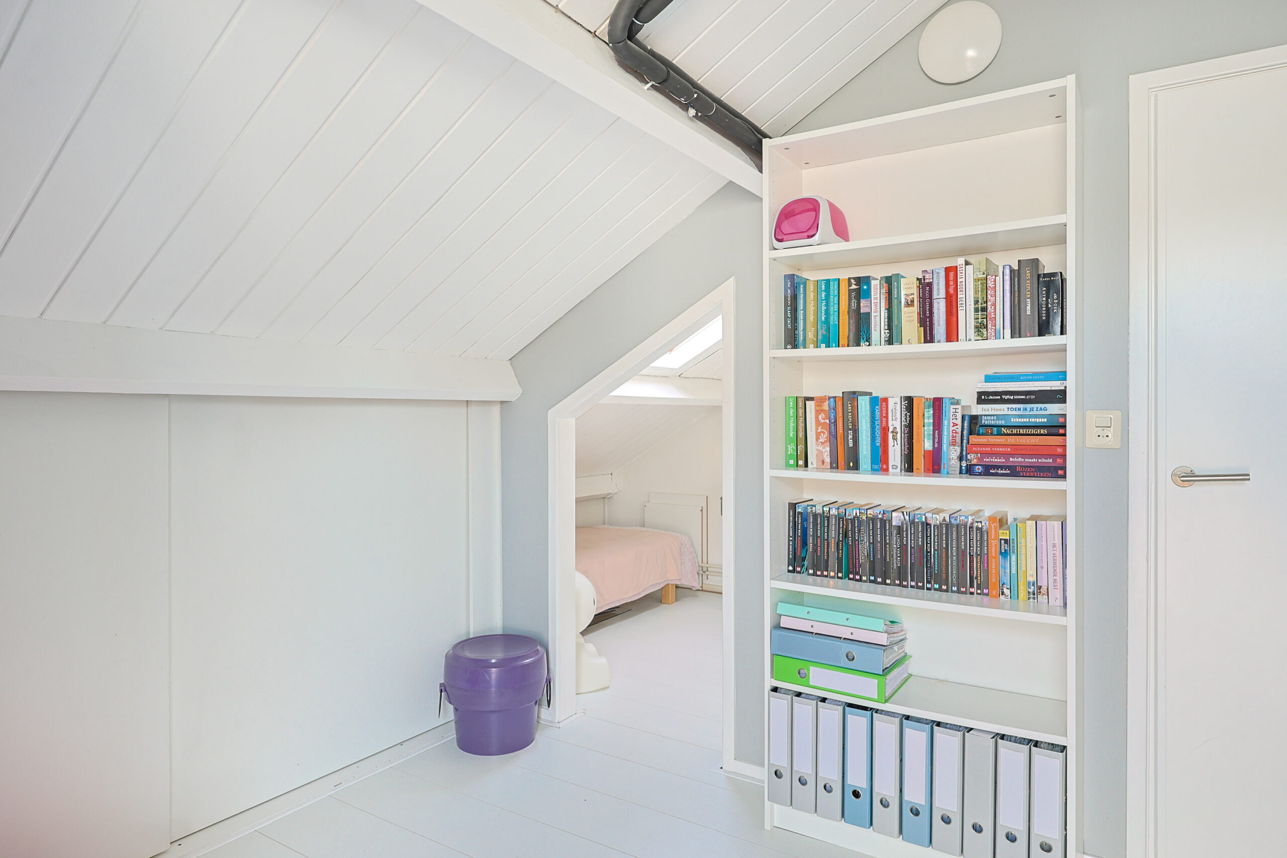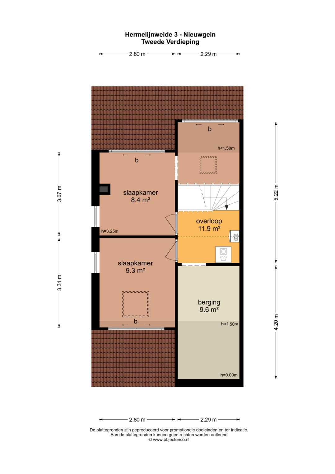Tweede verdieping: Ruime overloop met grote inpandige berging. Vanaf de overloop heb je toegang naar twee slaapkamers van respectievelijk 9,3 m2 en 8,4 m2 beide voorzien van een extra bergruimte. Op de overloop is de opstel plaats voor de wasmachine en cv ketel. Op deze verdieping is er de mogelijkheid tot creëren van een 2de badkamer of een 6de slaapkamer op zolder.