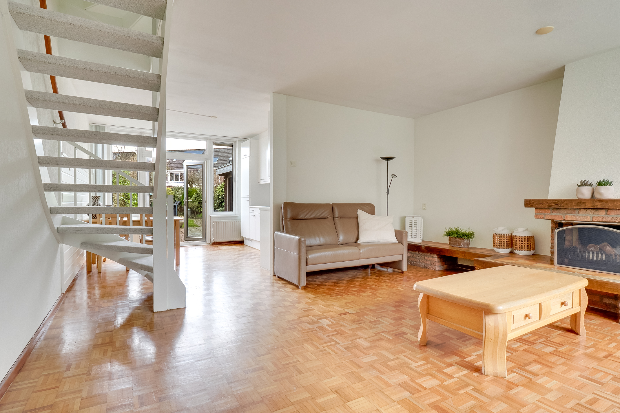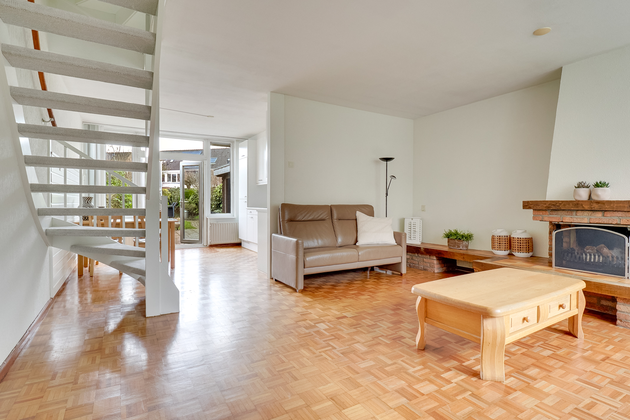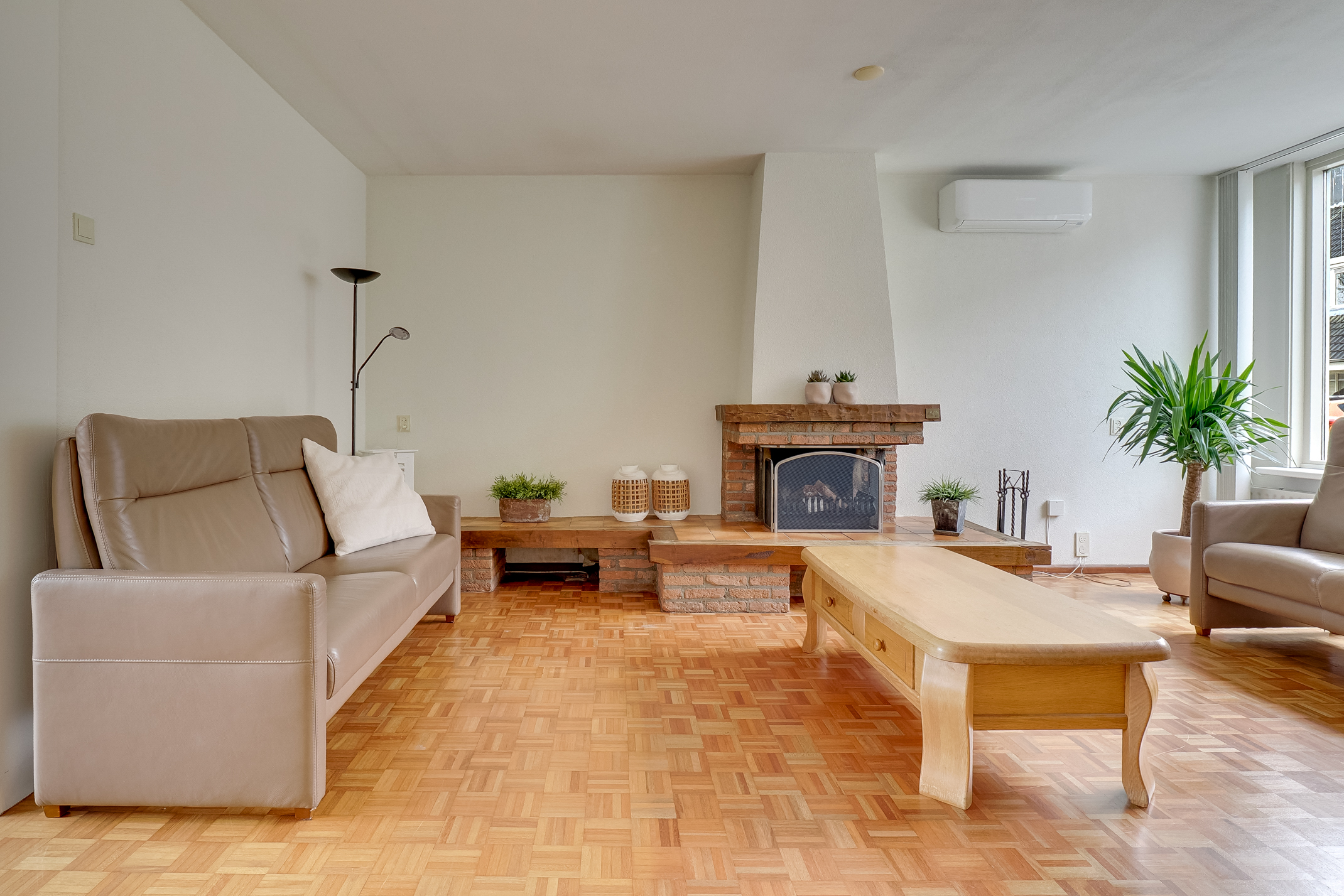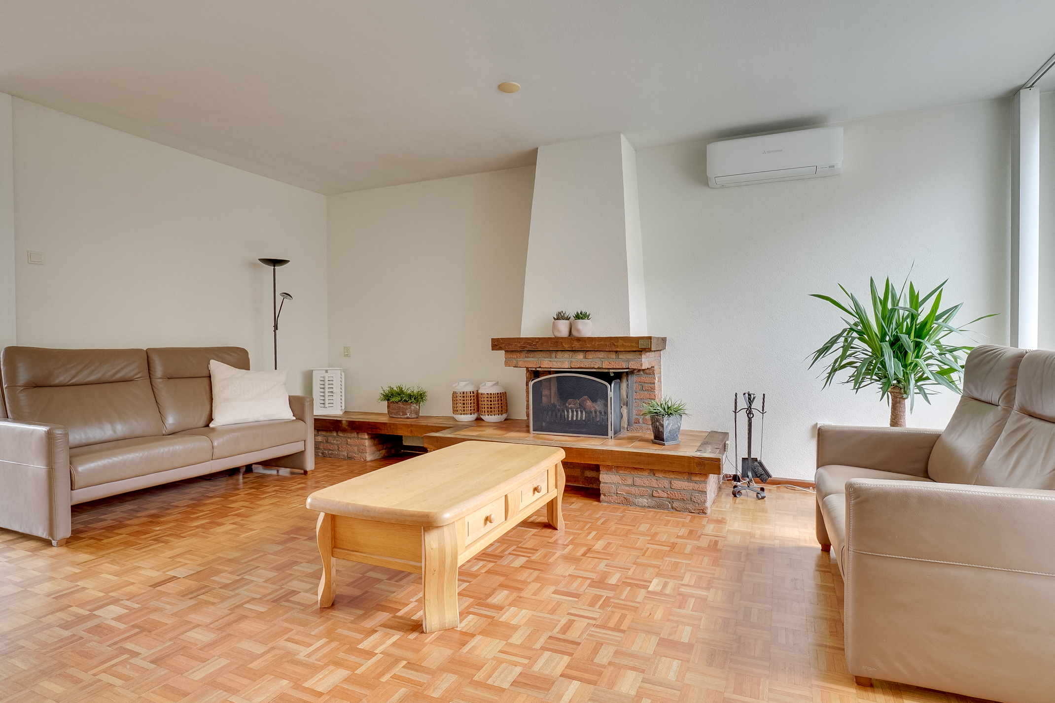 – Lichte woonkamer voorzien van sfeervolle haard en airco.
