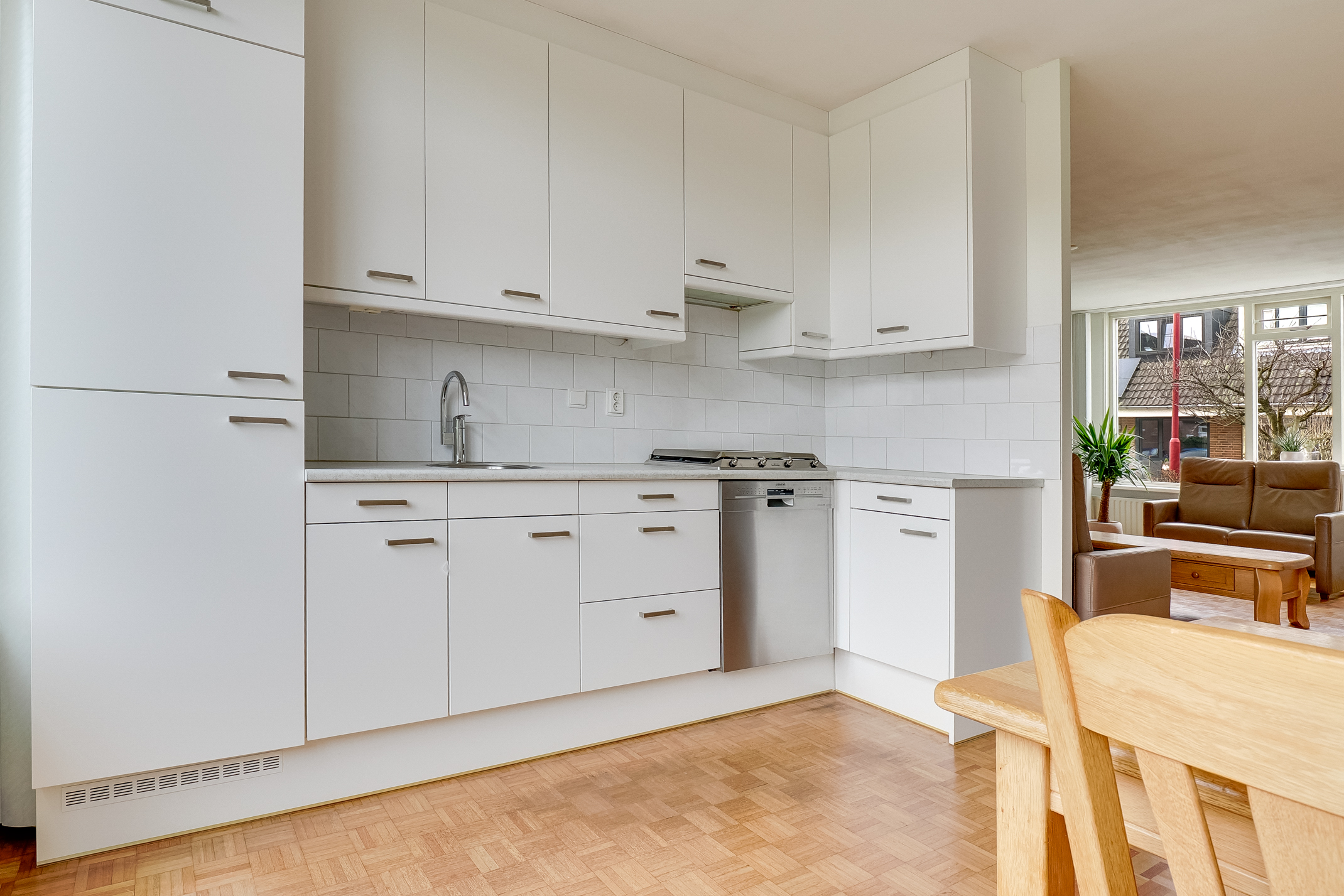 BEGANE GROND:Via de keurig aangelegen voortuin bereik je de hal/entree, welke toegang biedt tot het toilet met fontein, de meterkast en de woonkamer. De ruime woonkamer beschikt over veel lichtinval door de vele raampartijen en daarnaast bevindt zich er een sfeervolle uitstekend onderhouden open haard en airco. Via de woonkamer kom je bij de open keuken. Aan de achterzijde van de woning bevindt zich de open keuken. De open keuken is voorzien van koel-/vriescombinatie, gaskookplaat, afzuigkap, vaatwasser, voldoende opberg-