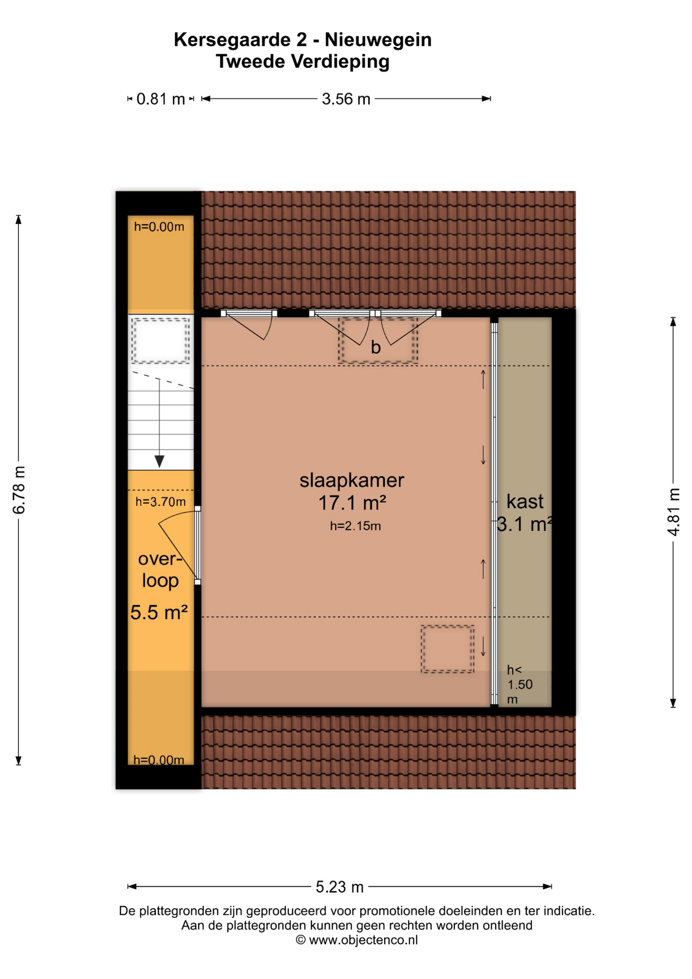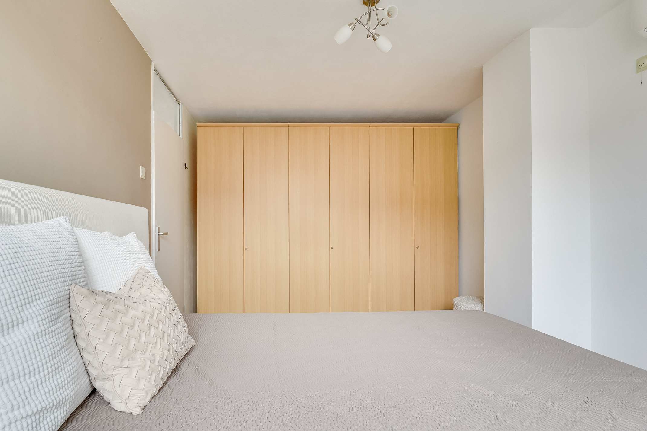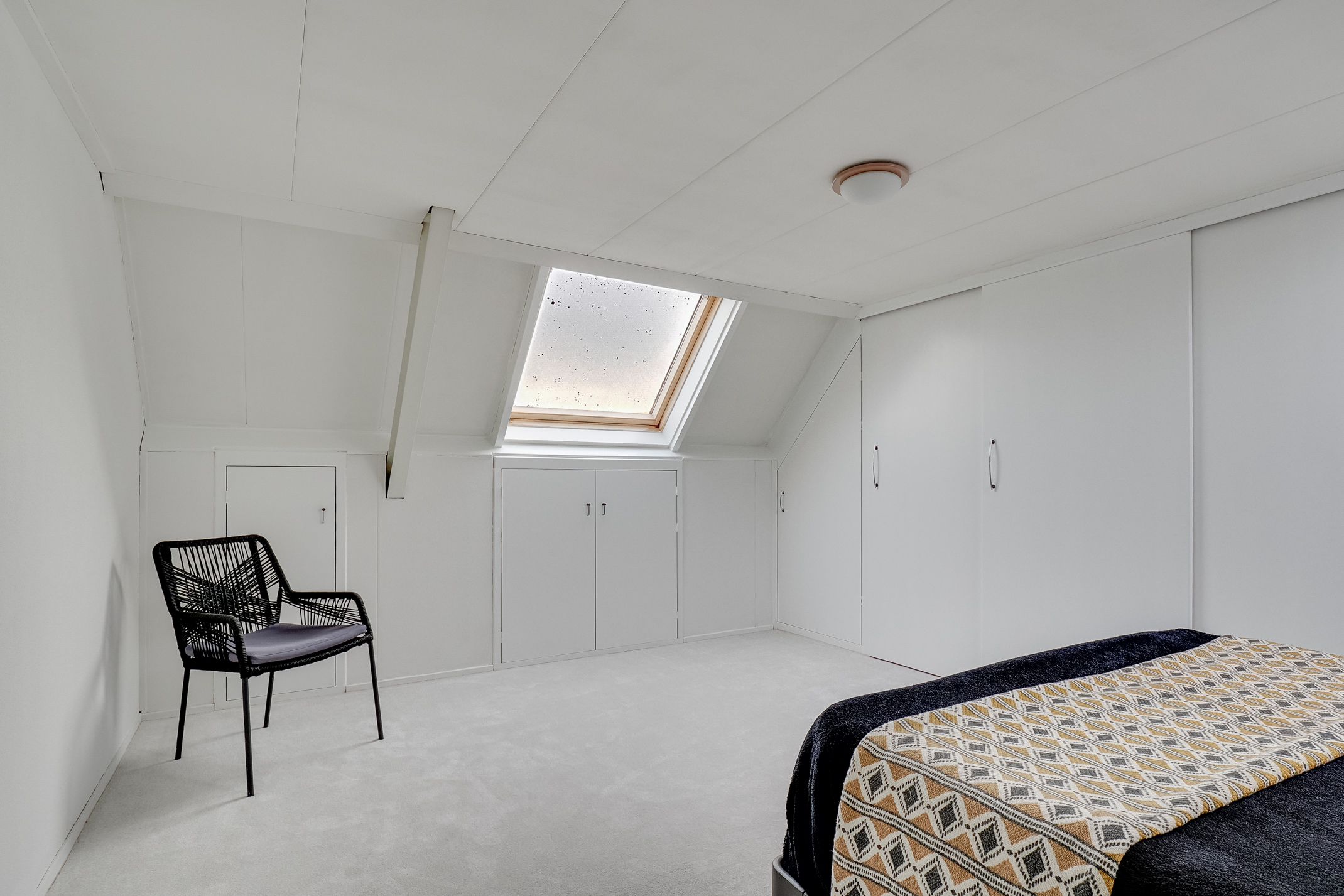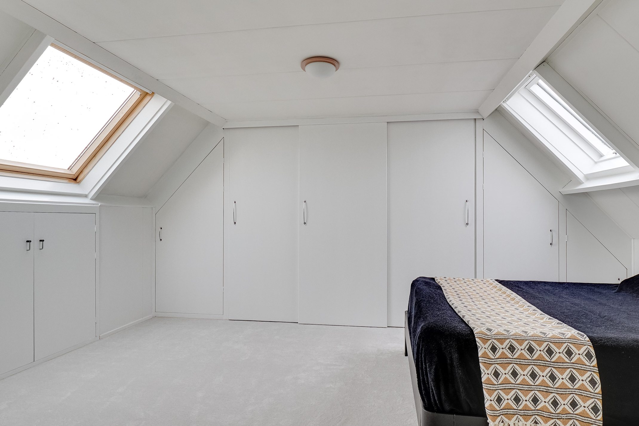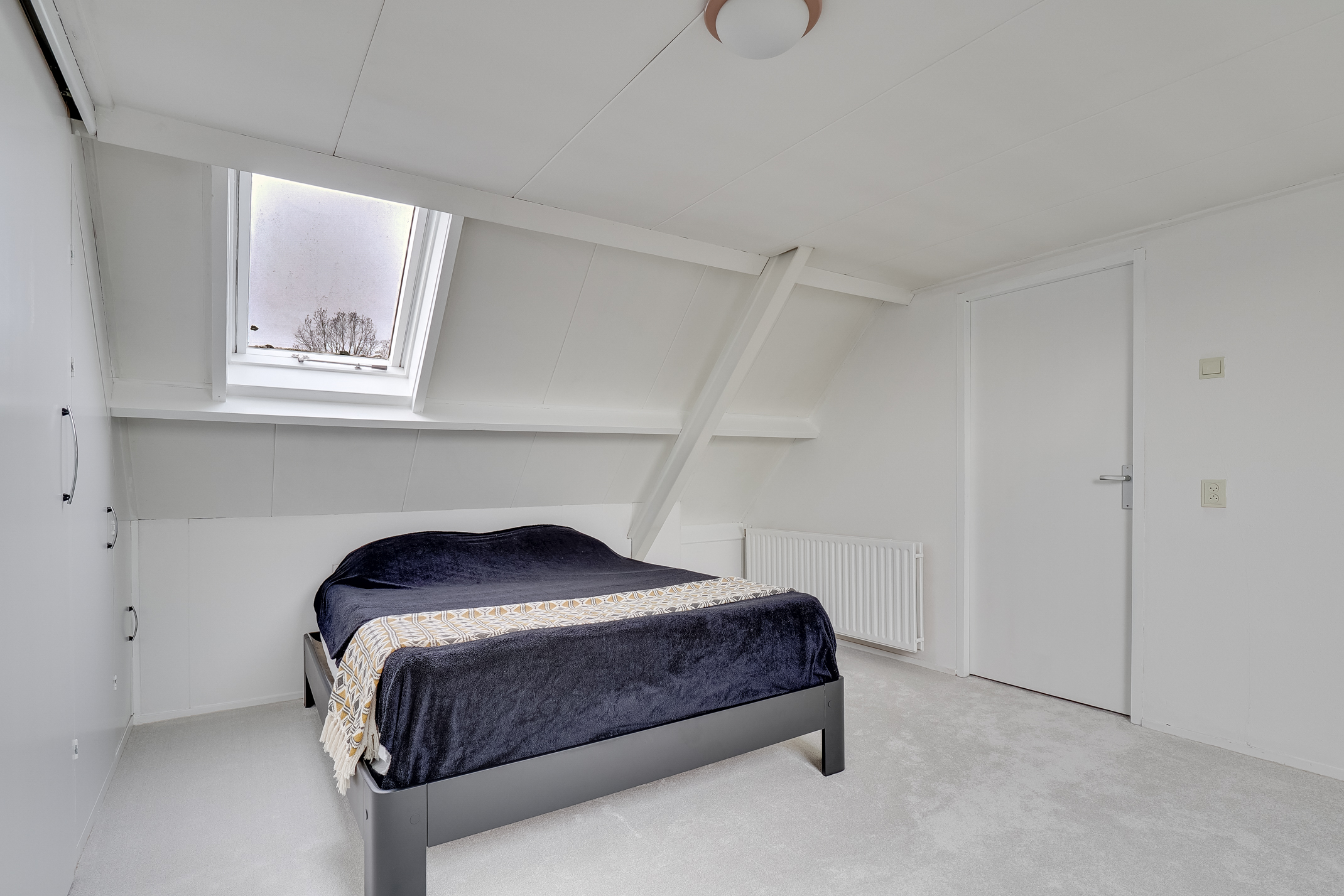 2E VERDIEPING: Overloop met plaats voor de C.V.-ketel en toegang tot de vierde slaapkamer van ca. 17,1 m2. De mooie slaapkamer met voldoende lichtinval en bergruimte is ook voorzien van een kastenwand.