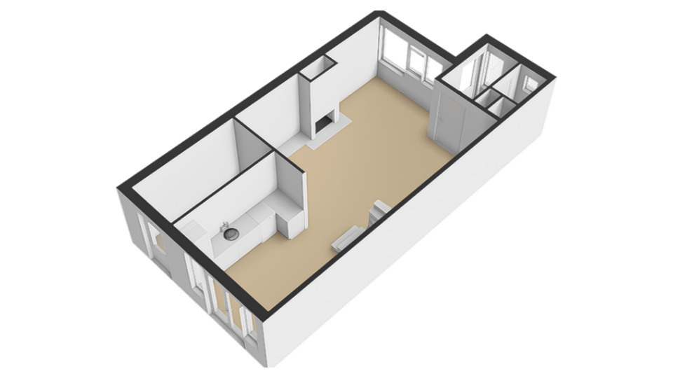 – Open keuken voorzien van apparatuur.