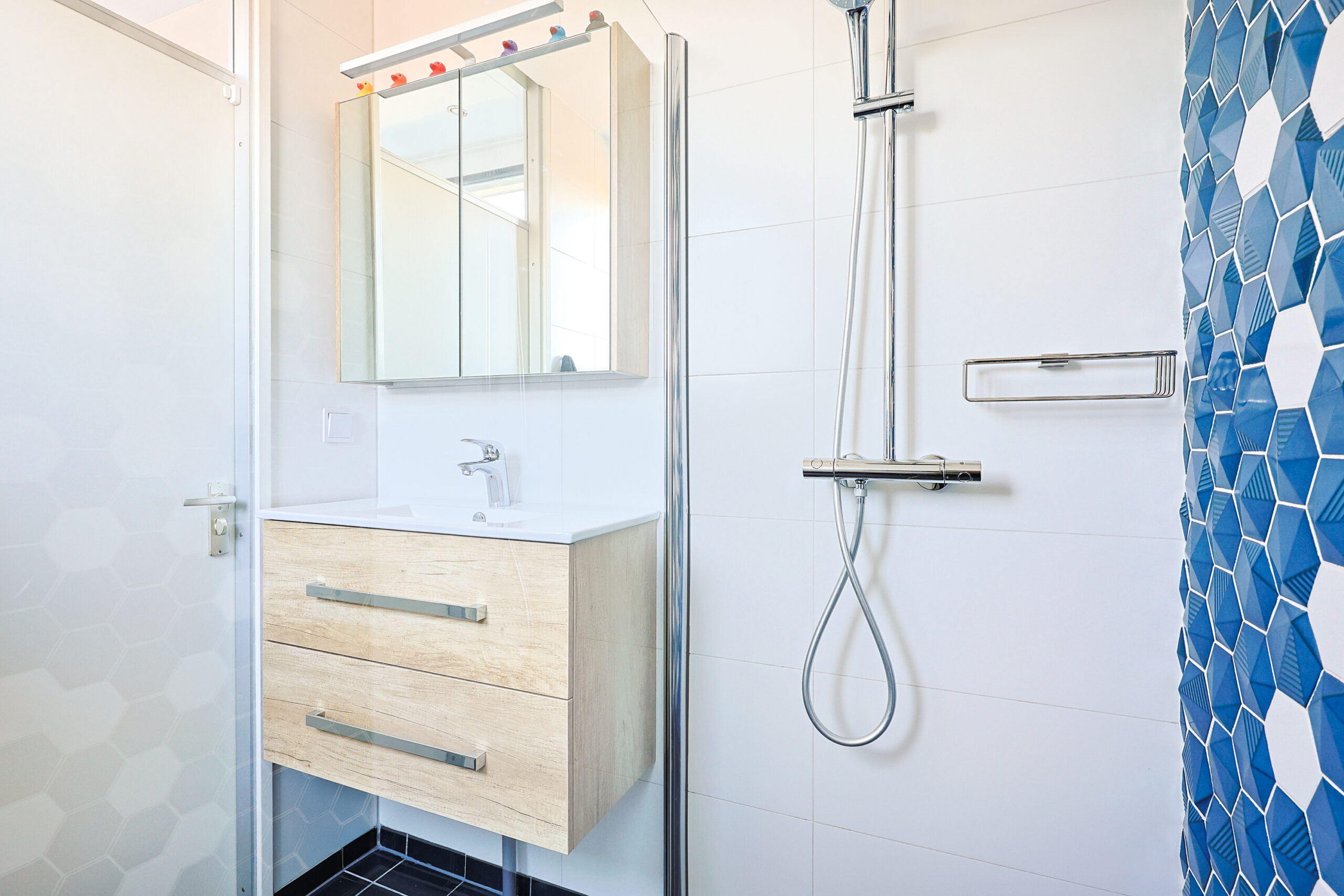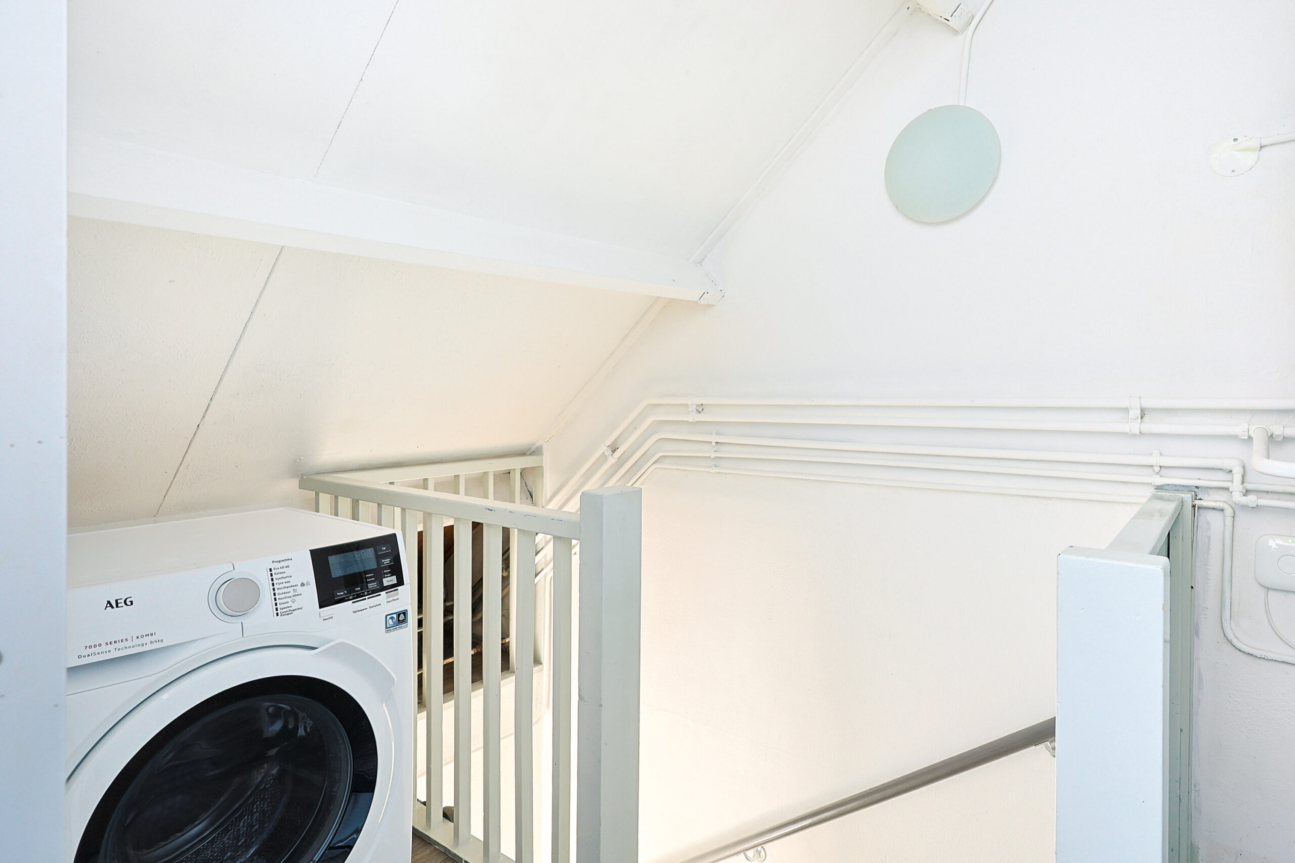 DERDE VERDIEPING: Op de derde verdieping bevindt zich de overloop en aansluiting wasmachine en tevens bergruimte onder de schuine kap. Daarnaast is ook de badkamer te vinden op deze verdieping. De badkamer is in 2021 vernieuwd en heeft een inloopdouche, designradiator en een wastafel. Op dezelfde verdieping is ook de ruime slaapkamer gevestigd van ca. 11,4 m2, ook is er in de slaapkamer extra bergruimte onder de schuine kap.