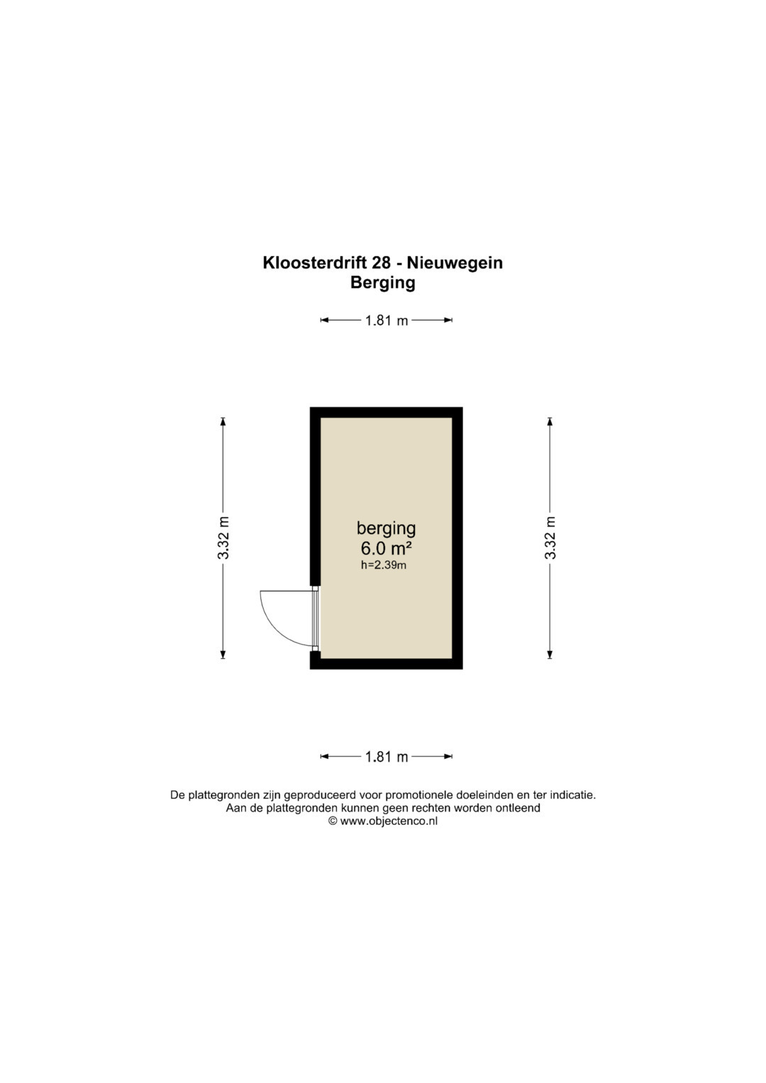 – Berging op de begane grond van ca. 6 m2 aanwezig.