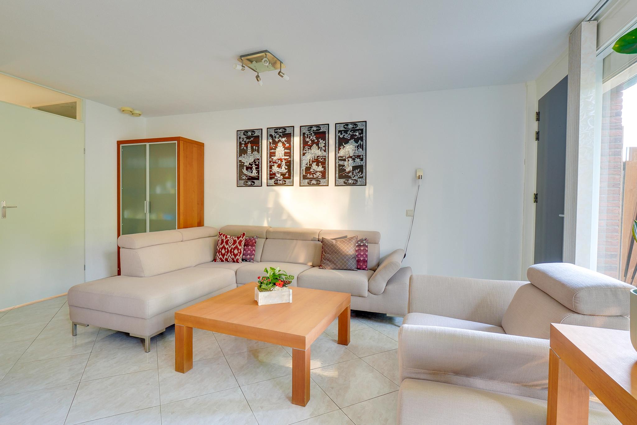Begane grond: Entree, toilet met fonteintje, trapopgang en meterkast. Toegang tot de lichte woon-/eetkamer. De woon-/eetkamer is zeer licht vanwege een grote raampartij en biedt toegang tot de voortuin. De keuken is gelegen aan de achterzijde van de woning. De keuken is uitgevoerd in een houten kleur en beschikt over inbouw apparatuur. De gehele begane grond is voorzien van een plavuizen vloer. De keurig aangelegde achtertuin is gesitueerd op het zonnige zuiden en is voorzien van een ruime berging van ca. 9,3 m2 en fraaie overkapping.