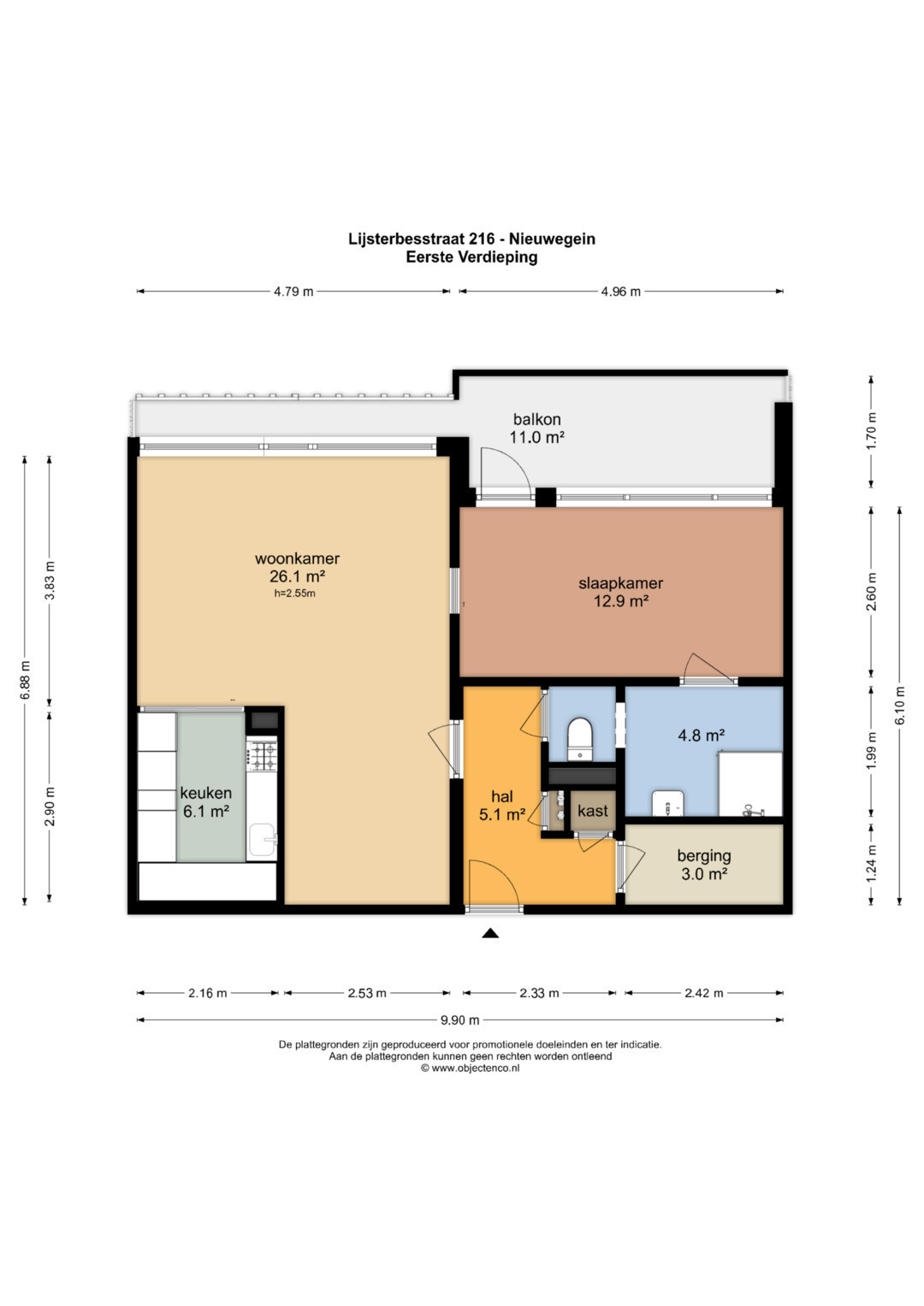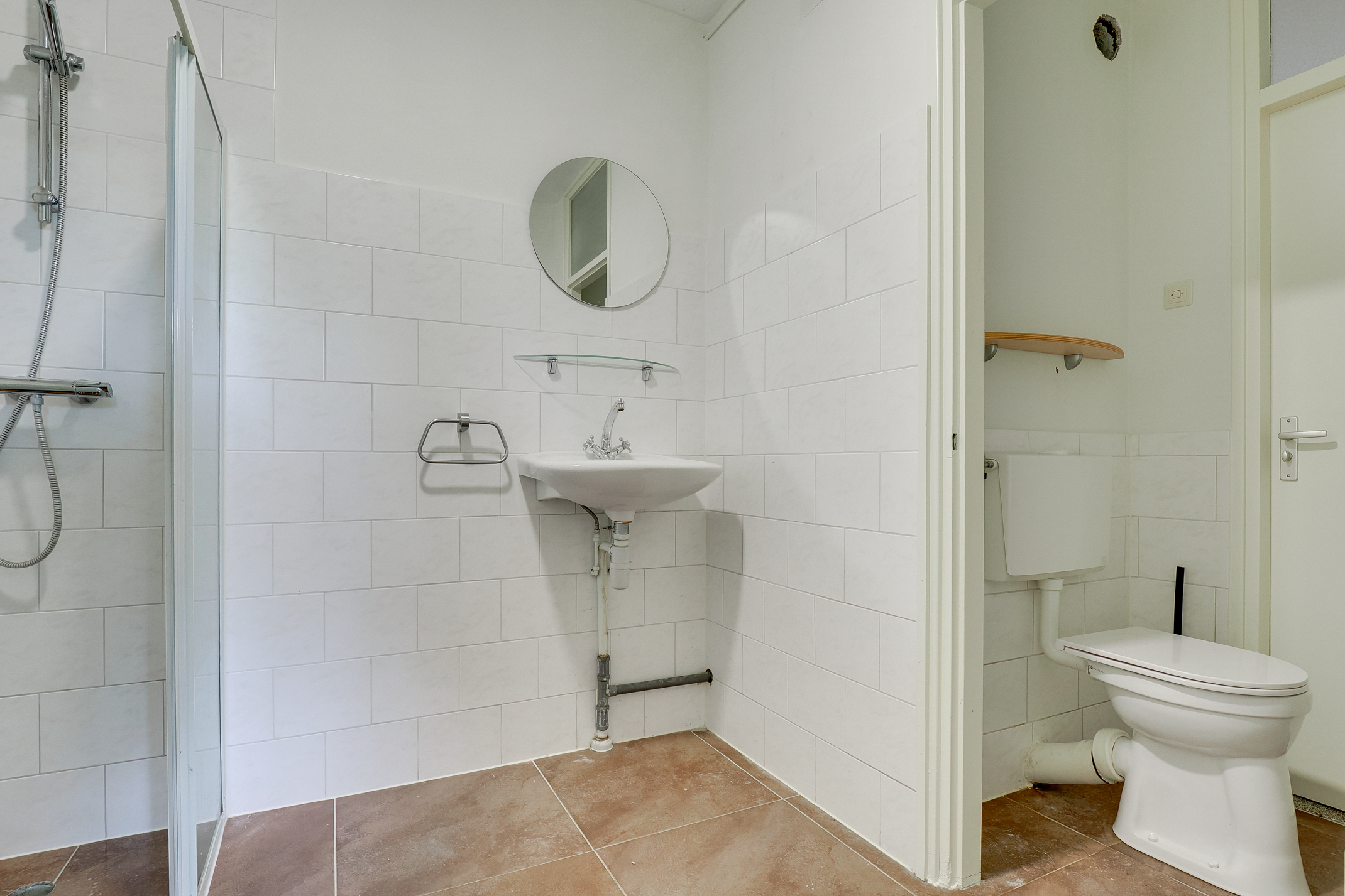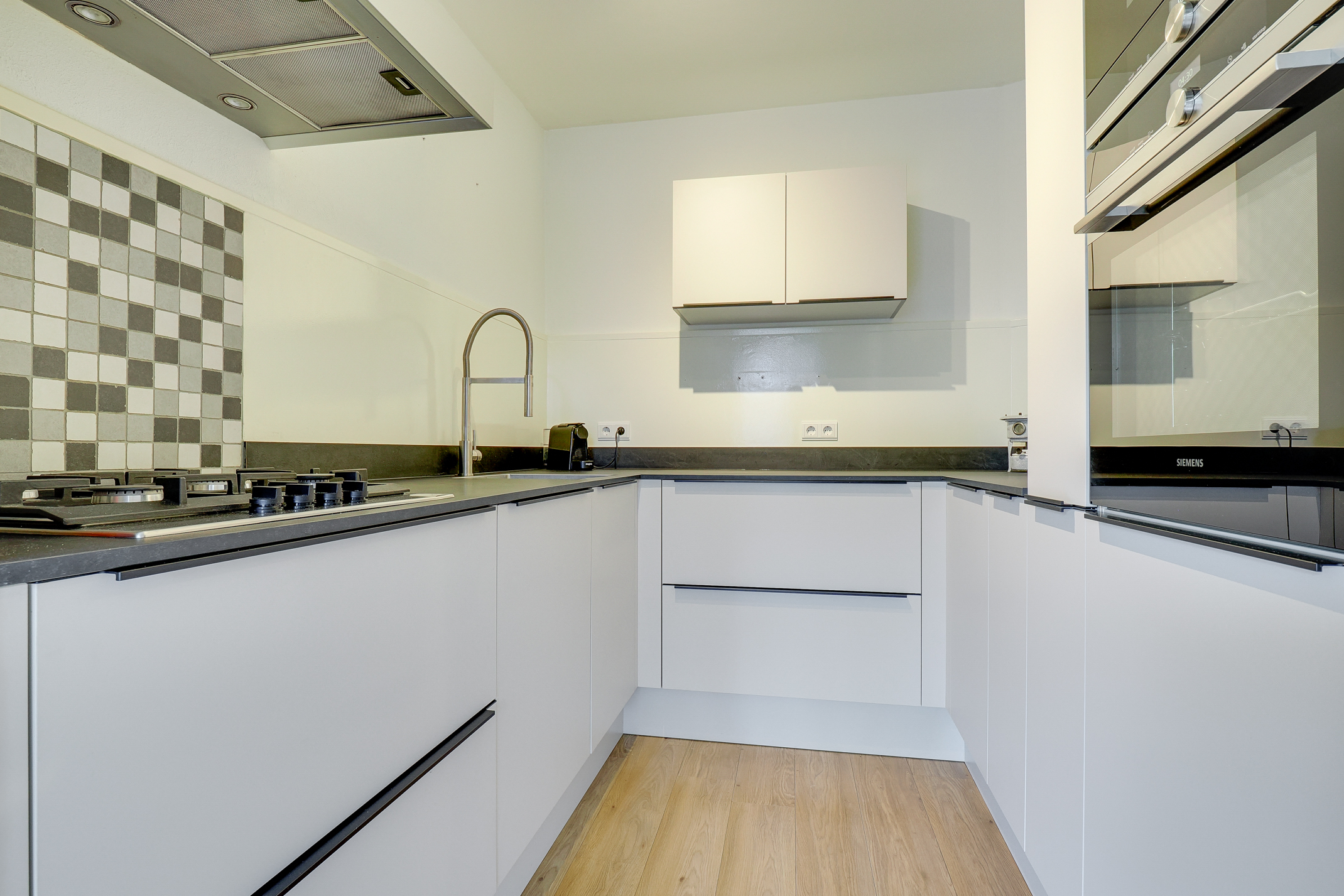 1e verdieping: Je komt binnen via het portiek. De hal van het appartement biedt toegang tot de meterkast, een ruime bergkast en een separate toiletruimte. De woonkamer is royaal van opzet en dankzij de grote raampartijen heerlijk licht. Vanuit hier is er toegang tot het ruime balkon op het westen, waar je geniet van de middag- en avondzon én uitzicht hebt op het groen. De keuken is modern en compleet, voorzien van een strakke U opstelling met hoogwaardige Siemens inbouwapparatuur, waaronder een 5 pits gasstel, afzuigkap, oven, magnetron, koel-/vriescombinatie en vaatwasser. Hier kun je direct aan de slag! De slaapkamer is eveneens ruim en licht, met directe toegang tot het balkon. Via de slaapkamer bereik je de badkamer, die tevens via het toilet bereikbaar is. De badkamer is uitgerust met een douche, wastafel en wasmachineaansluiting.