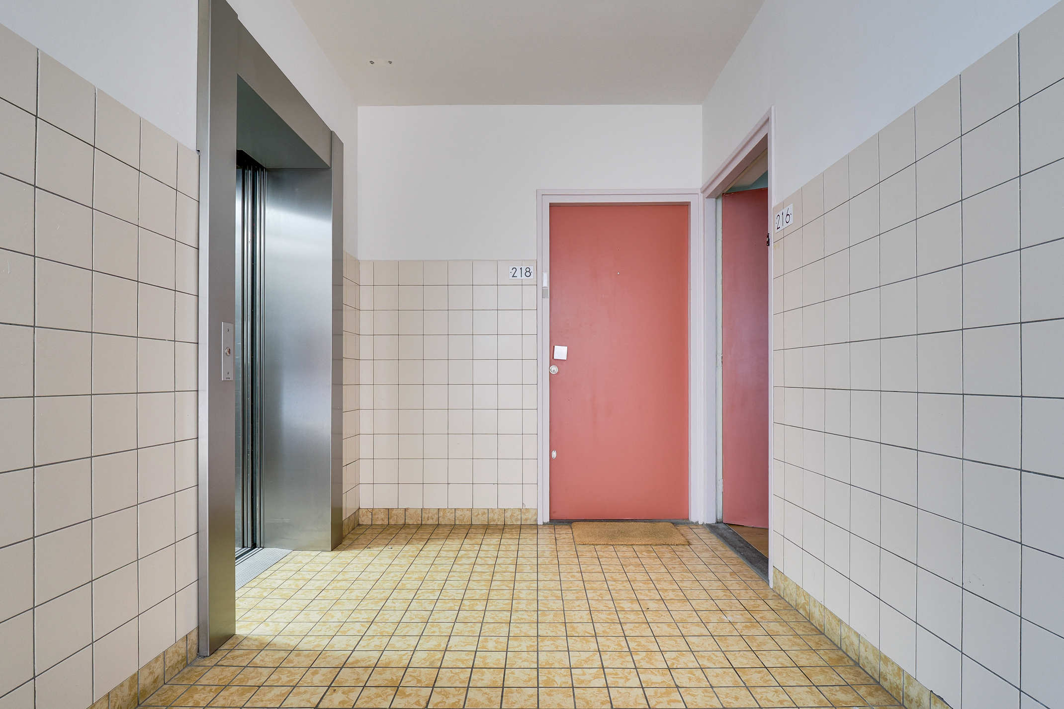 Begane grond: Afgesloten entree met bellentableau, brievenbussen en toegang tot de algemene hal. Vanuit hier bereik je de bergingen, het trappenhuis en de lift.