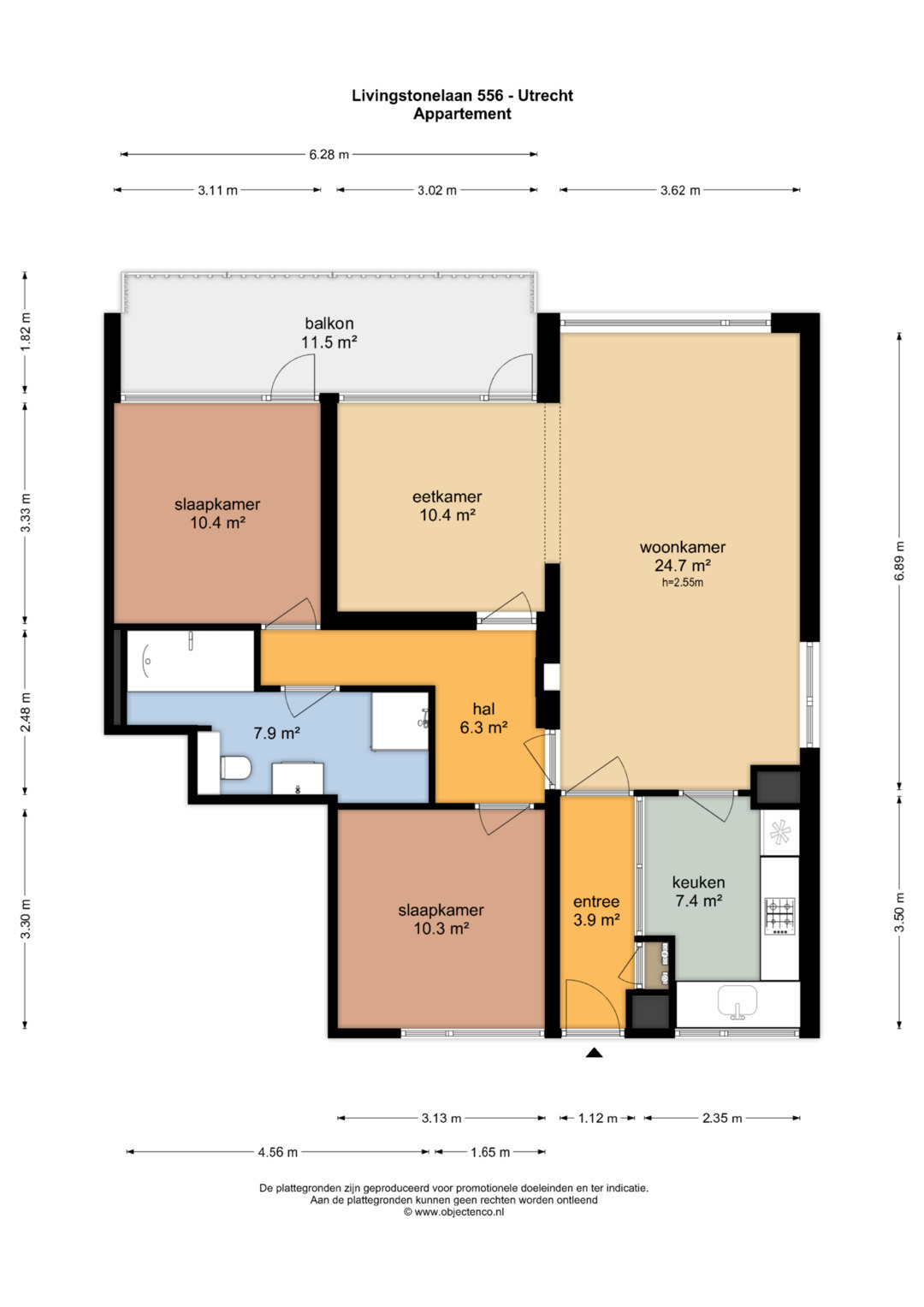 – Zeer ruim appartement op de vijfde verdieping van circa 88 m2.