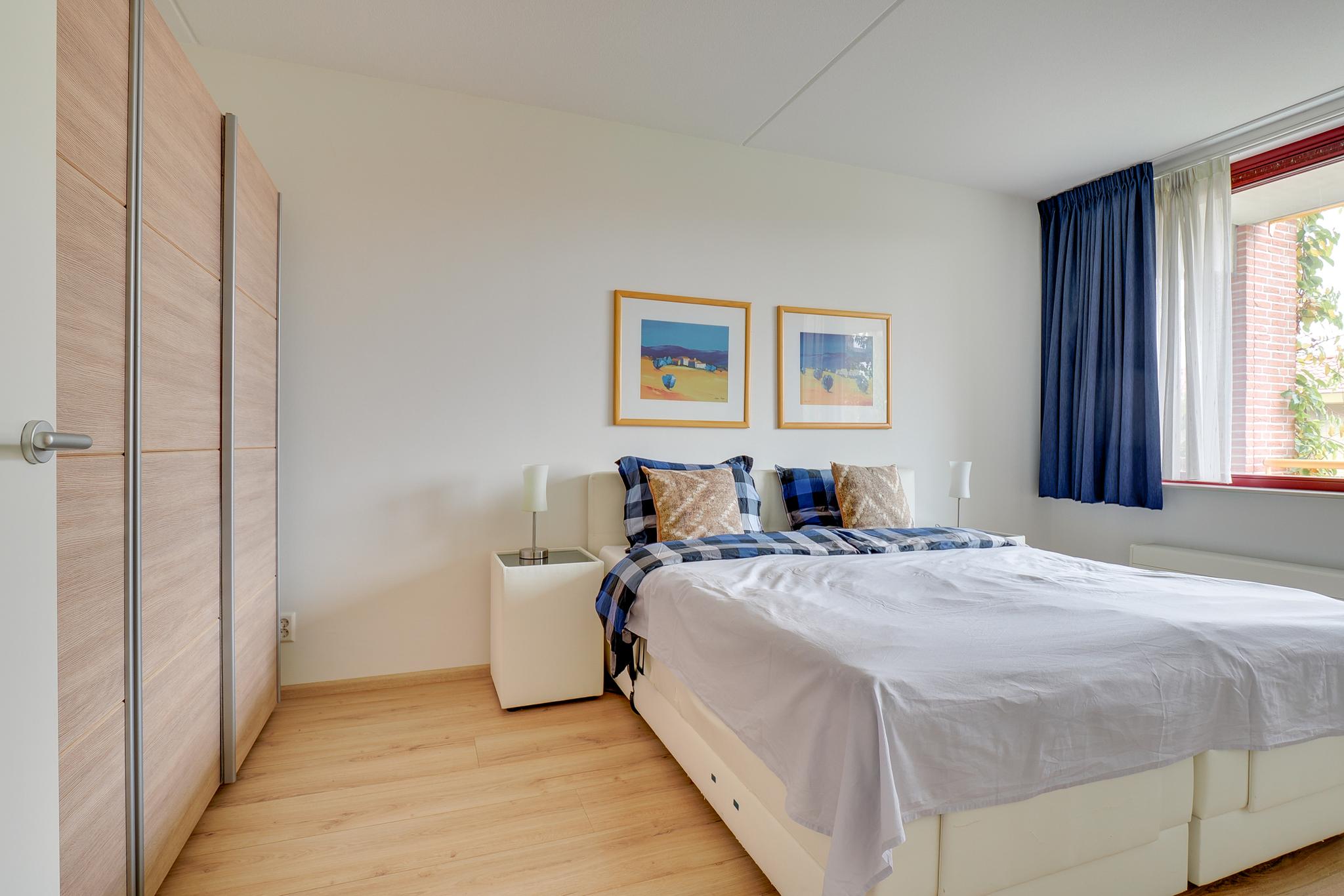 Voordeur met daarachter de ruime hal met meterkast, de hoofdslaapkamer, de 2e slaapkamer, toilet met fonteintje, ruime berging met de mechanische ventilatie-unit en de aansluiting voor wasmachine en wasdroger. Een betegelde badkamer met dubbele wastafel met grote spiegel, douche en toilet. Aan het einde van de hal bevindt zich de woonkamer met moderne open keuken. Deze is uitgevoerd in een witte kleur en voorzien van diverse inbouwapparatuur. Vanuit de woonkamer bereik je het op het westen gelegen, inpandige balkon van ca. 9 m2 met mooi uitzicht. Grenzend aan de woonkamer bevindt zich de eetkamer, welke te bereiken is middels schuifdeuren en ook in gebruik kan worden genomen als 3e slaapkamer/werkkamer. De 4e kamer is een fijne kleedkamer of bergruimte, deze kamer heeft echter geen daglichttoetreding. Met het inrichten van de mogelijke 3e slaapkamer zal het appartement van een zeer prettige indeling genieten: slaapkamer, kleedkamer en badkamer aaneengesloten, dit geeft een fijn hotelgevoel.