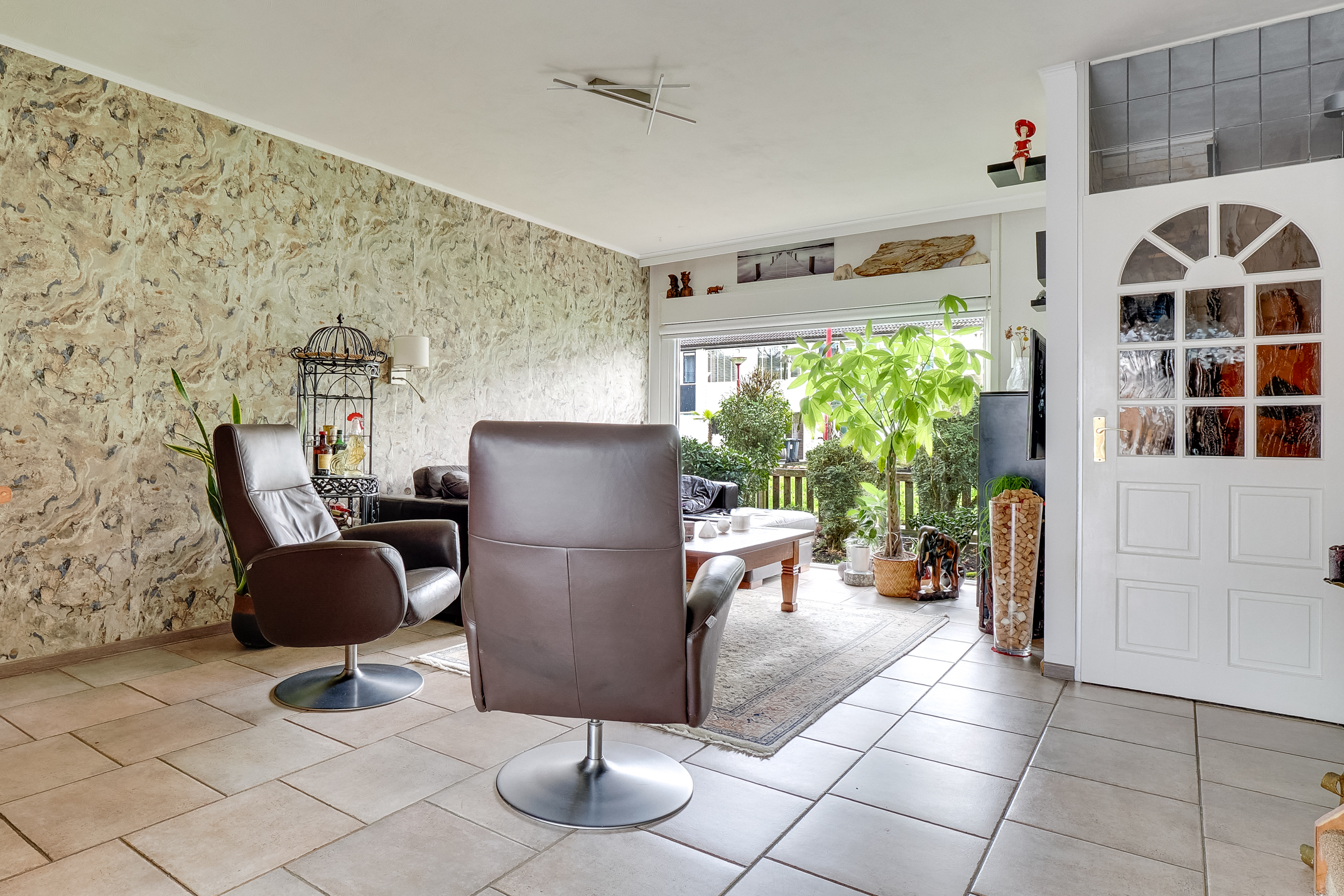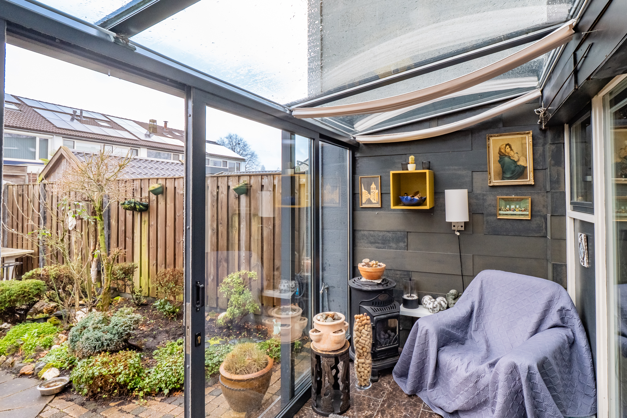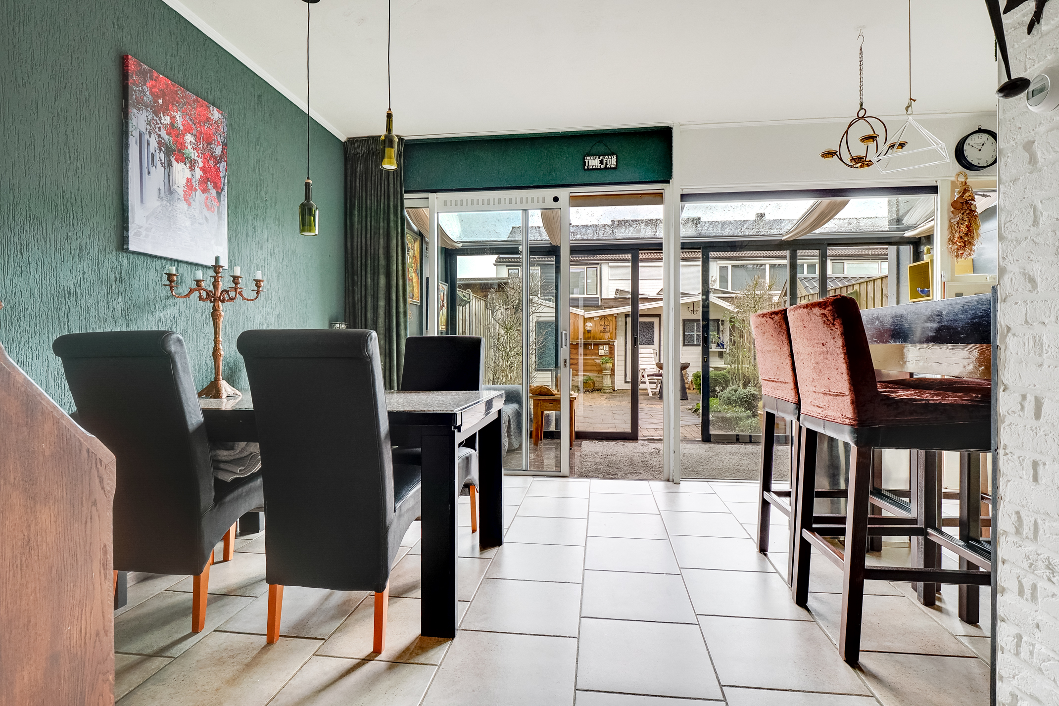 INDELING: Begane grond: Via de voortuin toegang naar de entree. Vanuit de entree toegang naar de hal met toiletruimte en meterkast. Half open keuken aan de achterzijde voorzien van witte inrichting in U-opstelling met diverse inbouwapparatuur. Speels ingedeelde woonkamer welke is voorzien van een plavuizenvloer. Aan de achterzijde, vanuit de eetkamer bereik je via de schuifpui de mooie ruime serre. Vanuit de serre toegang naar de ruime achtertuin die voorzien is van een ruime berging van totaal ca. 11,6 m2.