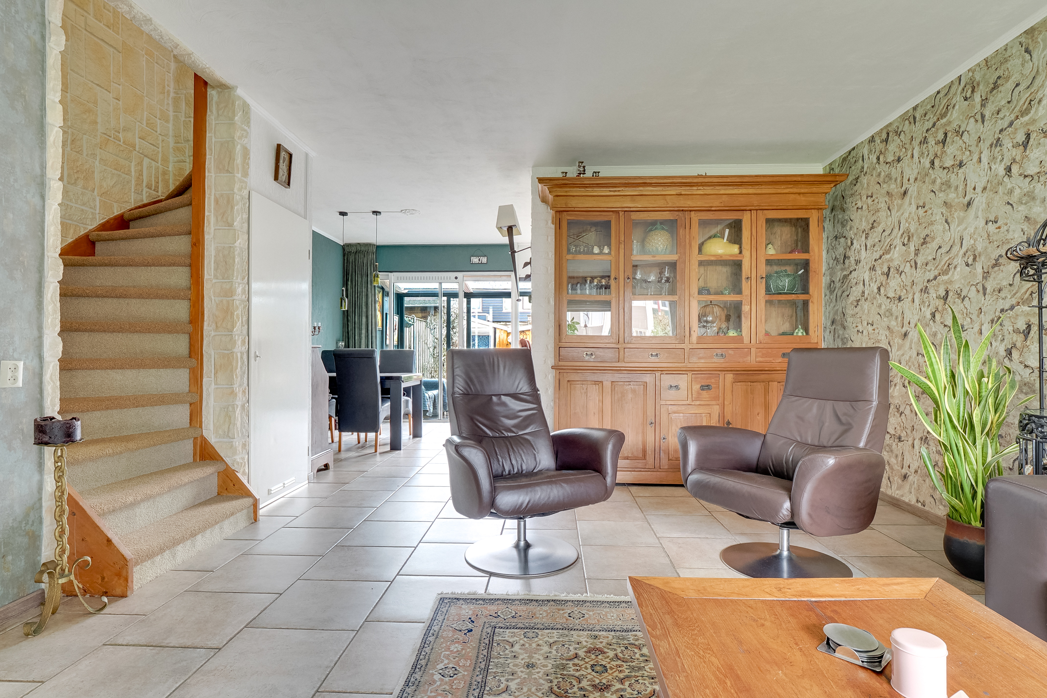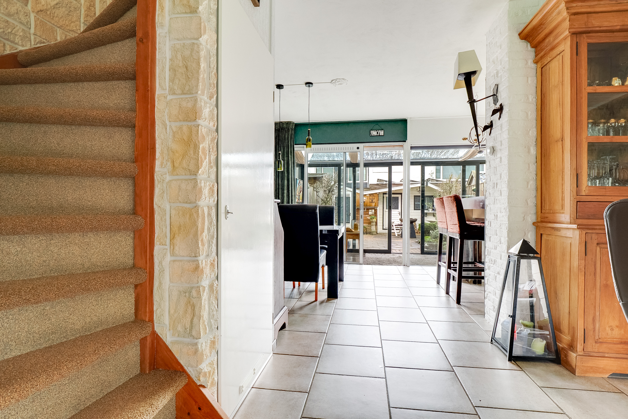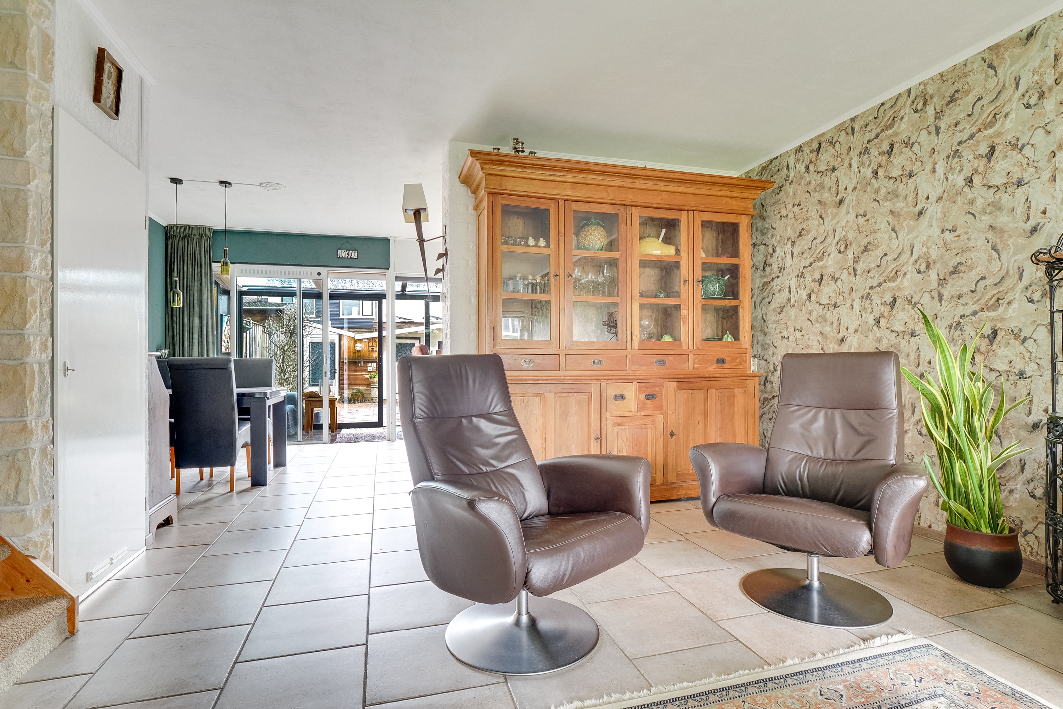 INDELING: Begane grond: Via de voortuin toegang naar de entree. Vanuit de entree toegang naar de hal met toiletruimte en meterkast. Half open keuken aan de achterzijde voorzien van witte inrichting in U-opstelling met diverse inbouwapparatuur. Speels ingedeelde woonkamer welke is voorzien van een plavuizenvloer. Aan de achterzijde, vanuit de eetkamer bereik je via de schuifpui de mooie ruime serre. Vanuit de serre toegang naar de ruime achtertuin die voorzien is van een ruime berging van totaal ca. 11,6 m2.