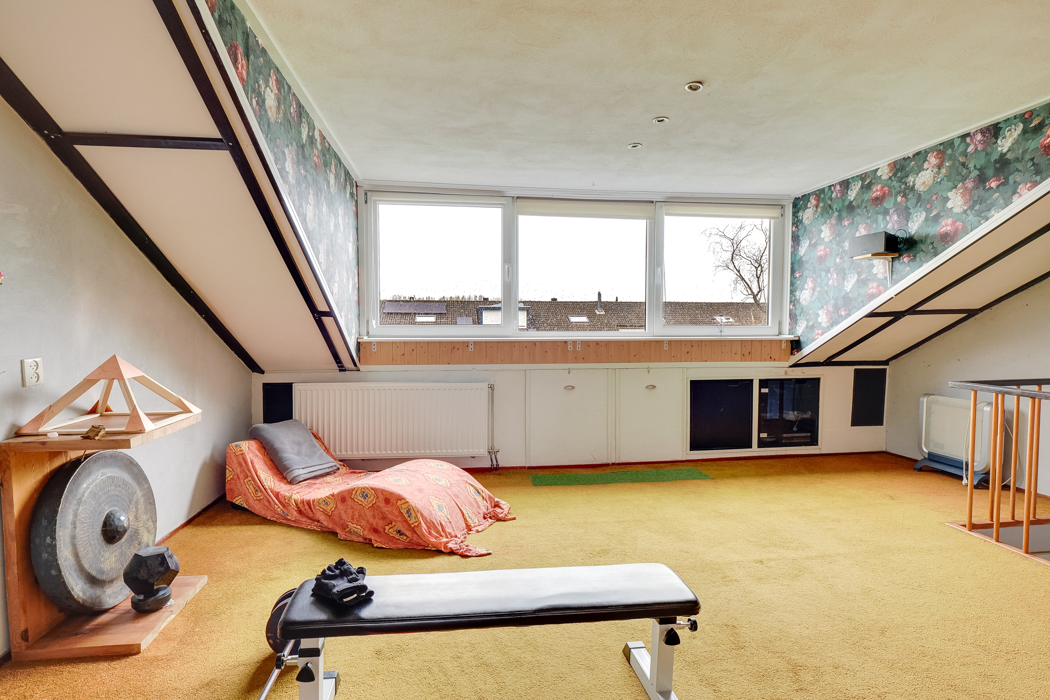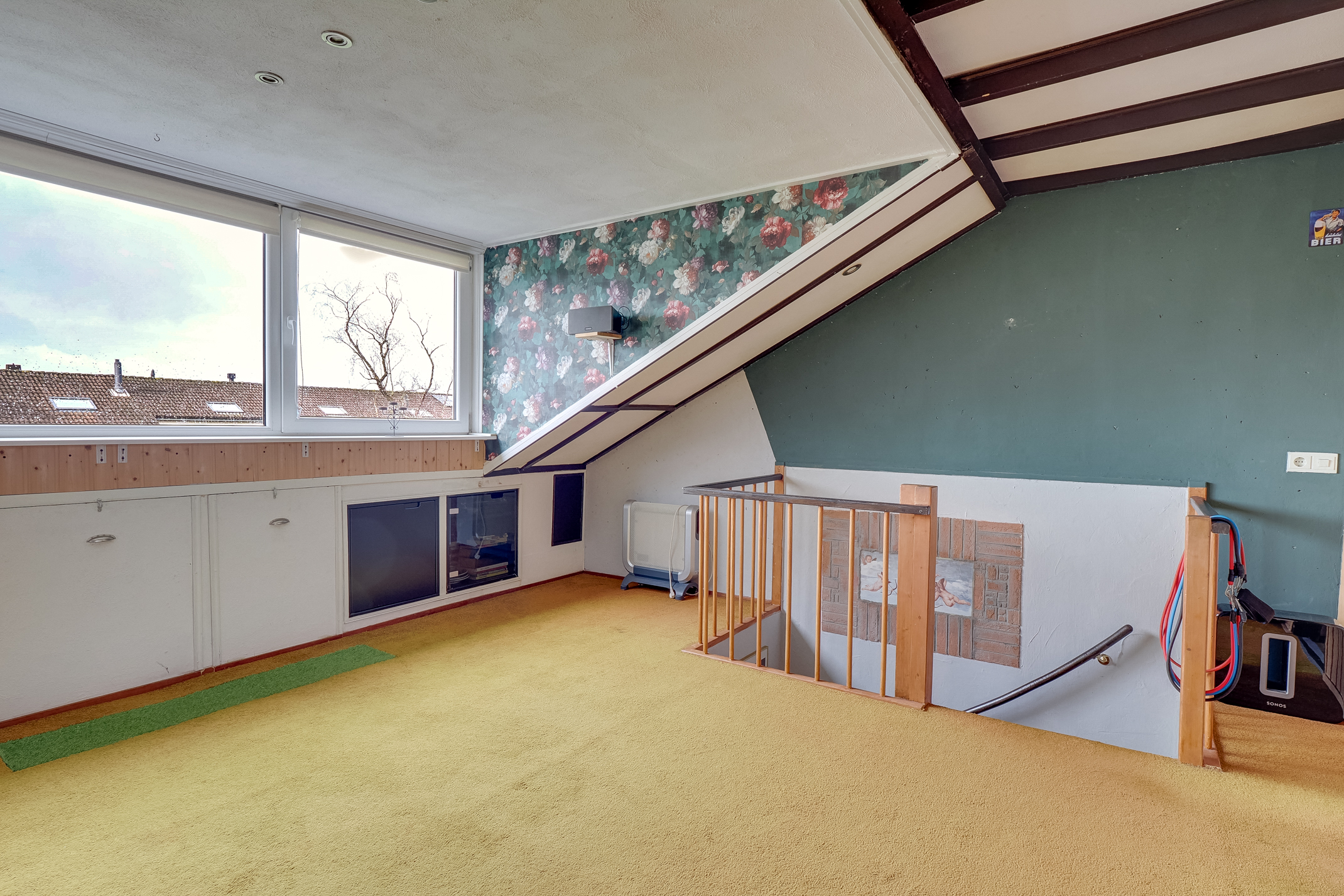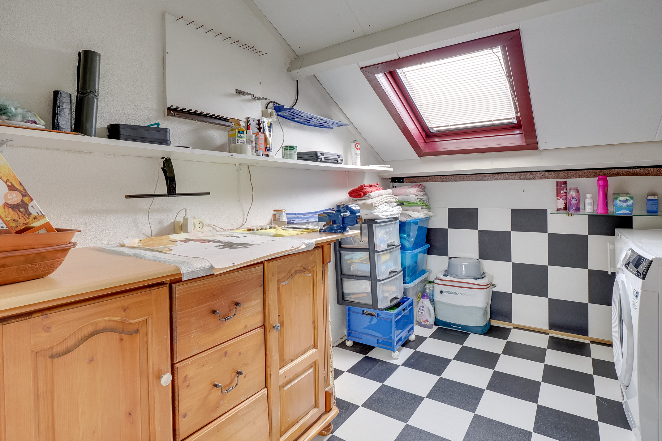 2e Verdieping: Ruime overloop met wasruimte met CV opstelling. Deze ruimte is voorzien van een tuimelraam. De zolder is ingedeeld met 2 slaapkamers van resp. 21,1m2 en 8,1 m2. De grote slaapkamer is voorzien van een dakkapel.