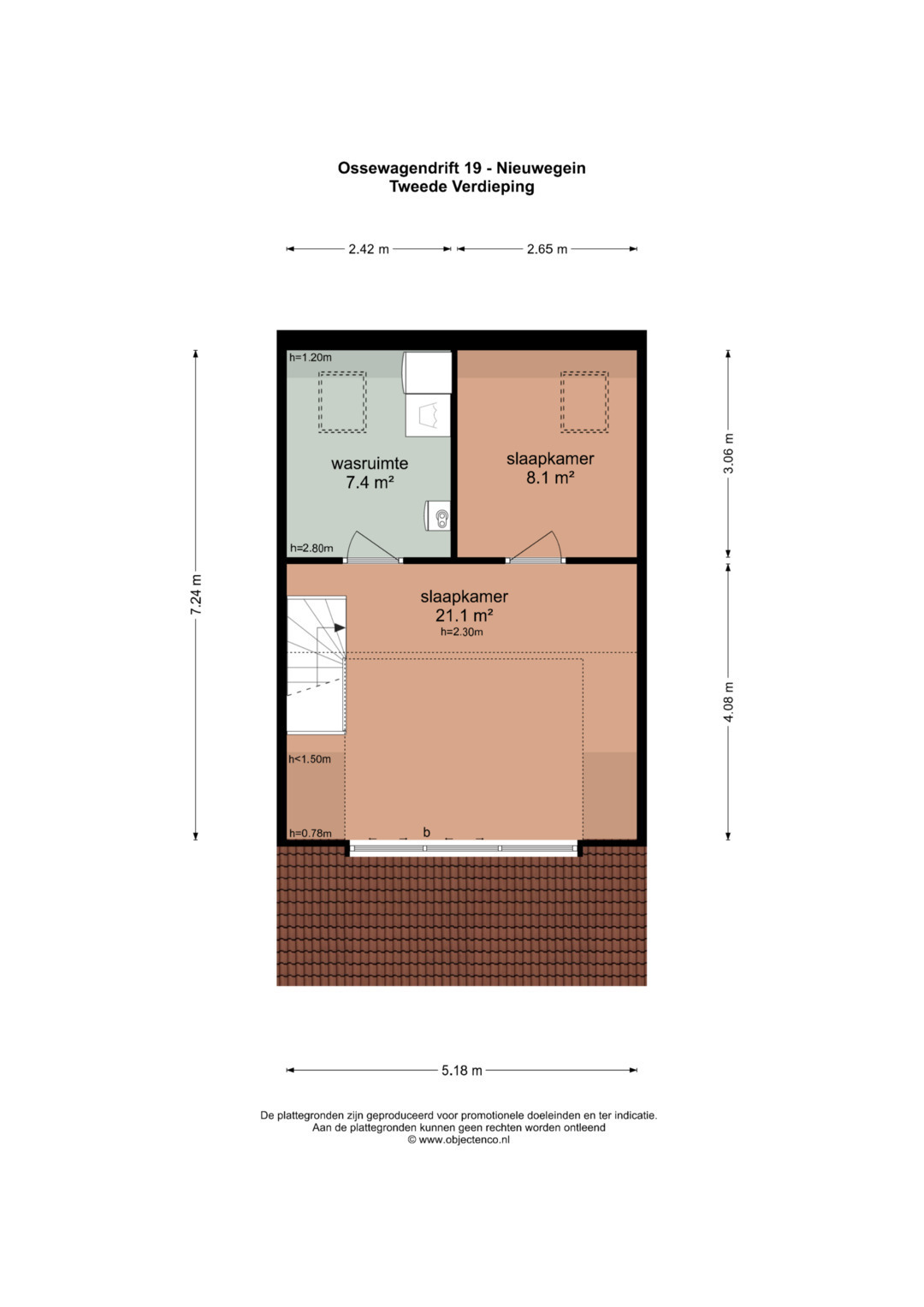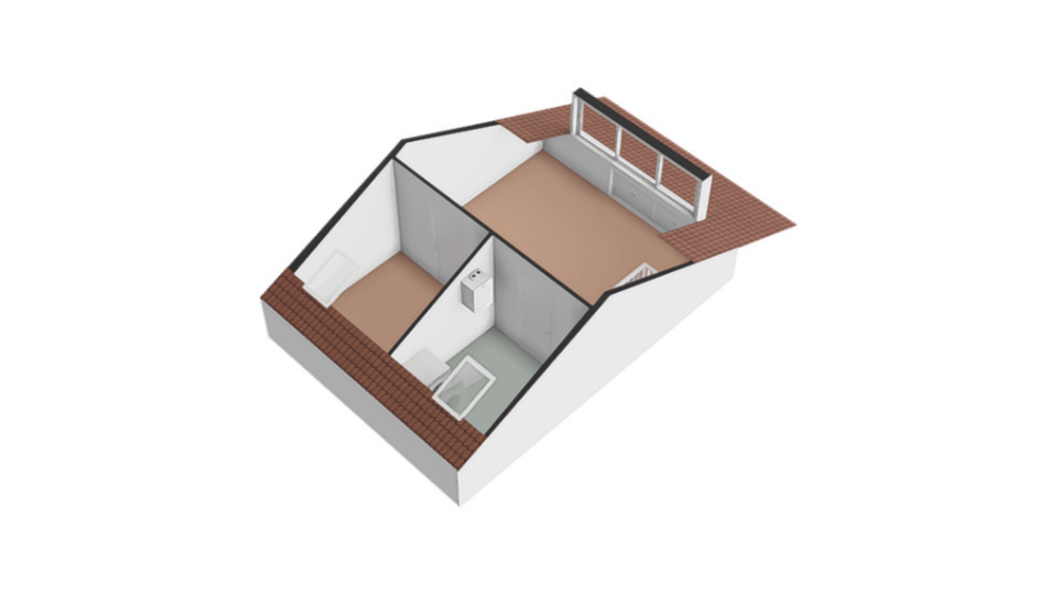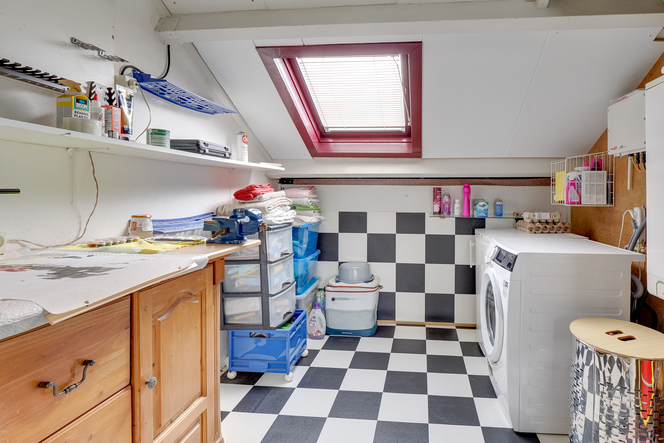 2e Verdieping: Ruime overloop met wasruimte met CV opstelling. Deze ruimte is voorzien van een tuimelraam. De zolder is ingedeeld met 2 slaapkamers van resp. 21,1m2 en 8,1 m2. De grote slaapkamer is voorzien van een dakkapel.