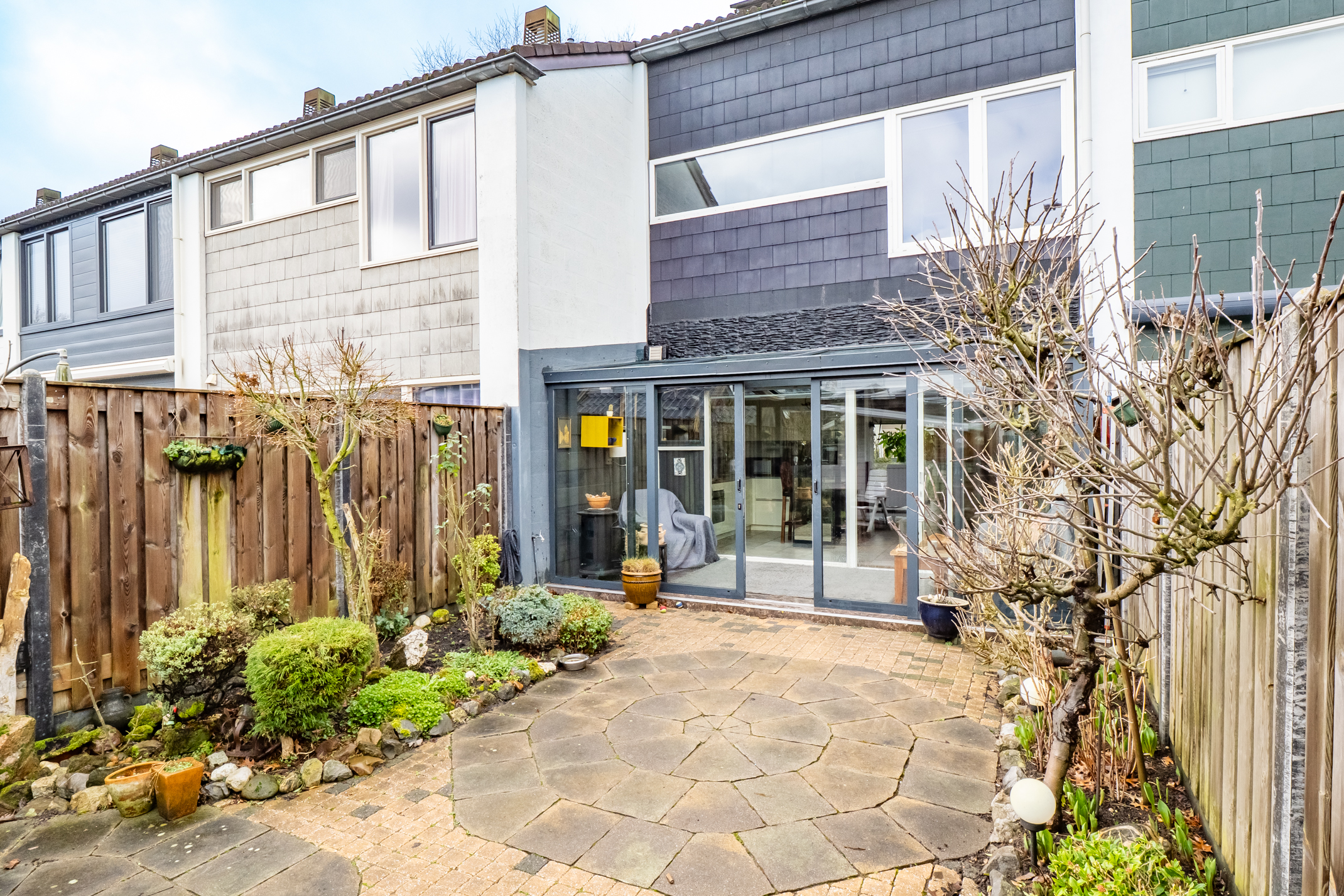 • Ruime, onderhoudsarme achtertuin voorzien van sierbestrating en achterom.