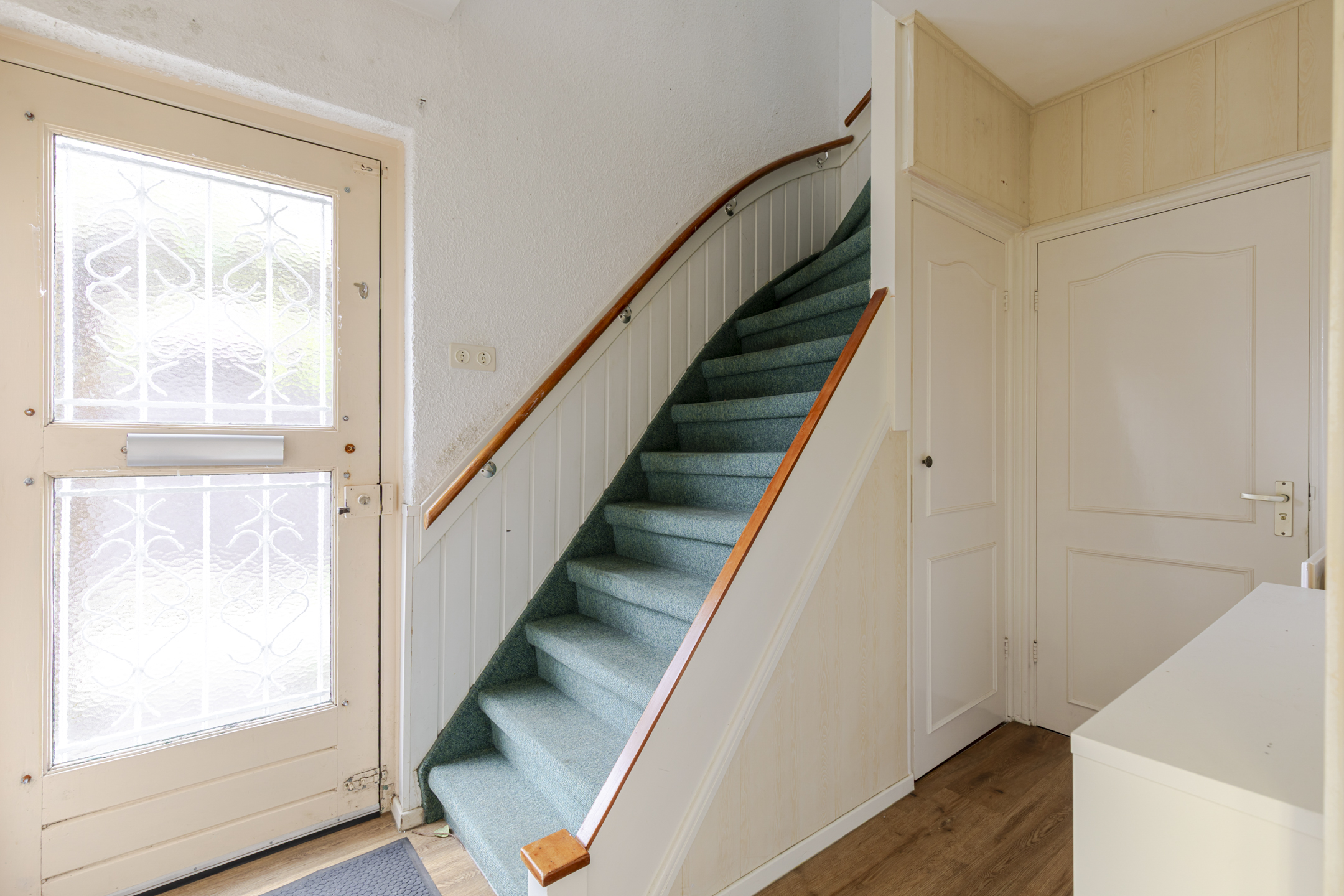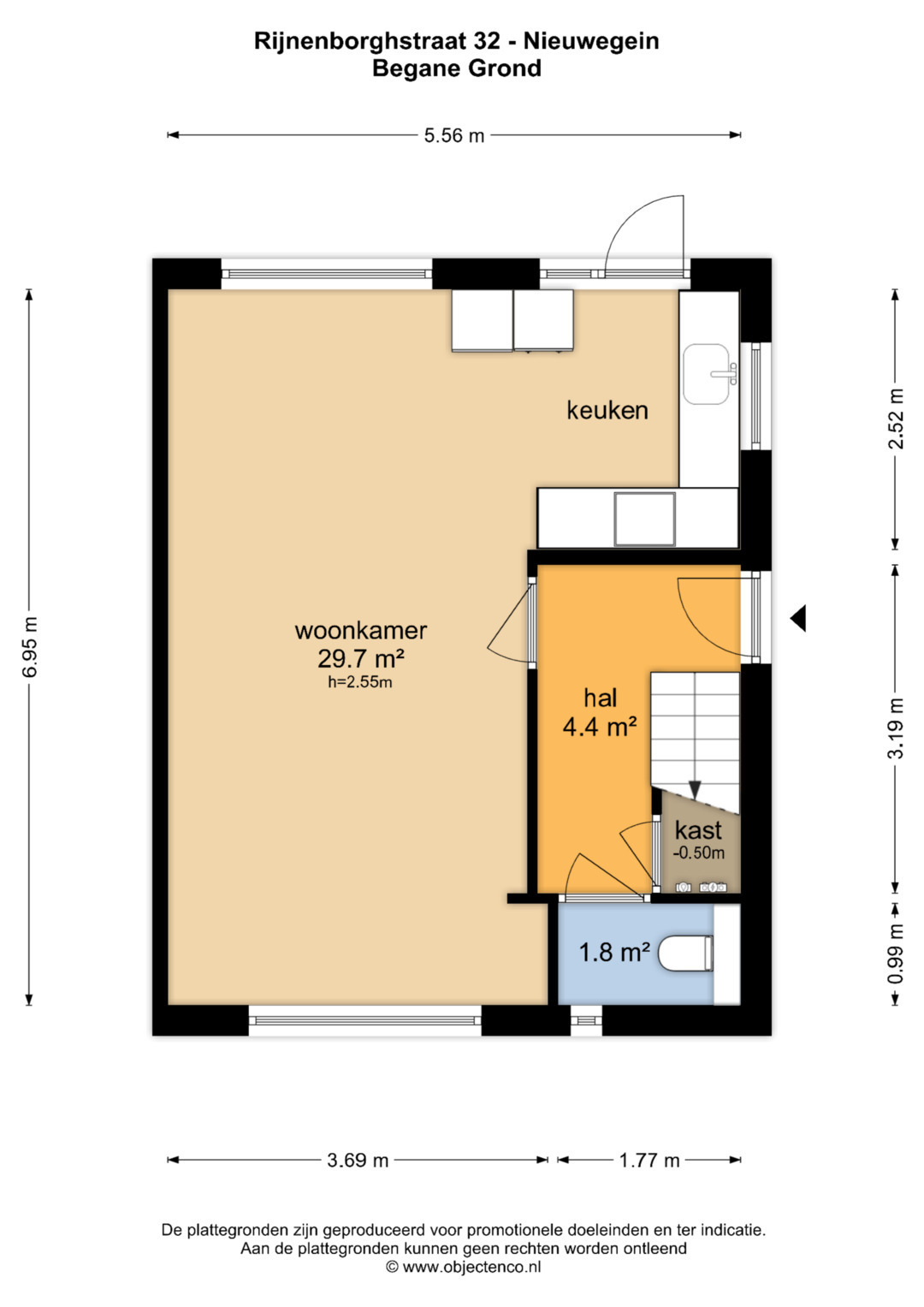 Begane grond: Vanaf de zijgevel bereik je de entree welke toegang geeft naar de hal. In de hal bevindt zich de meterkast, trapopgang en toiletruimte. Vanuit de hal heb je toegang naar de mooie lichte woonkamer, type doorzon. Aan de achterzijde tref je de open keuken aan met een eenvoudige inrichting in L opstelling en voorzien van diverse