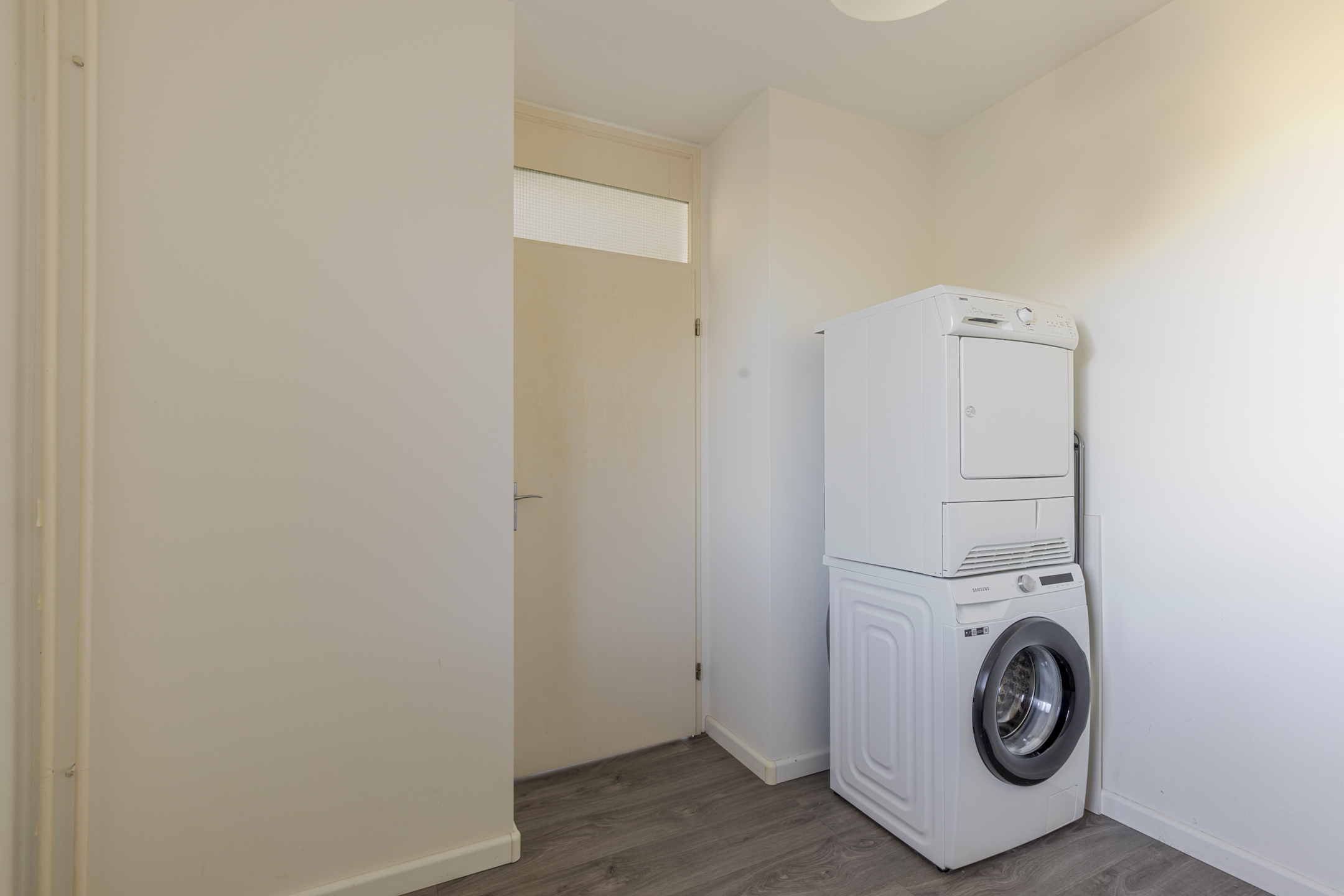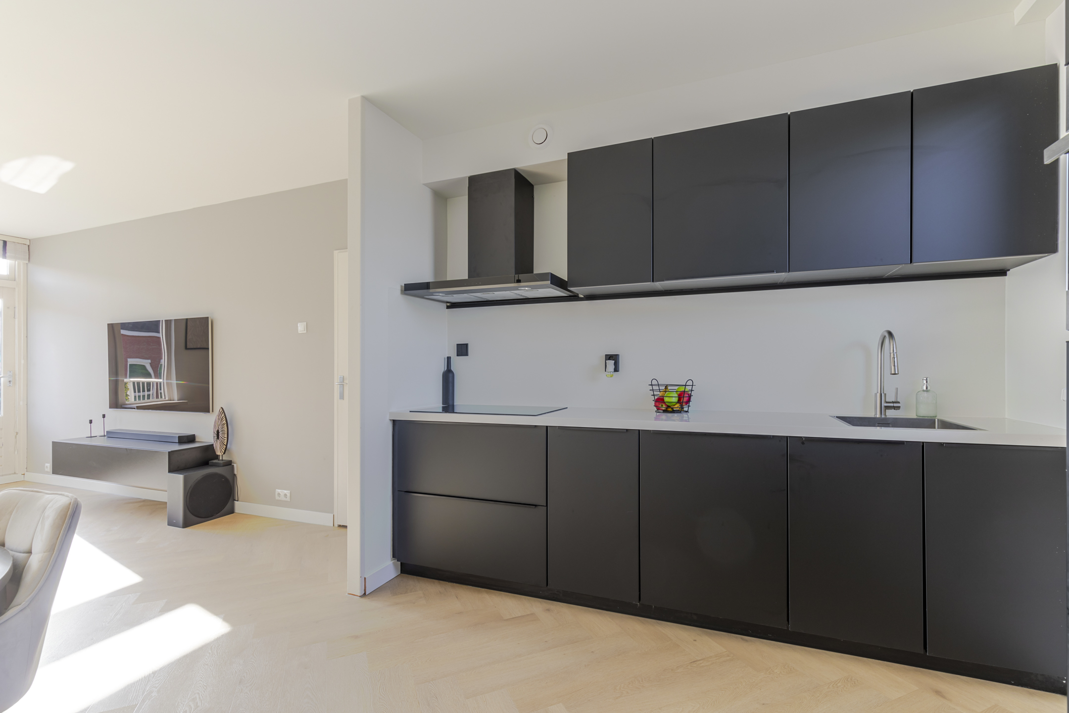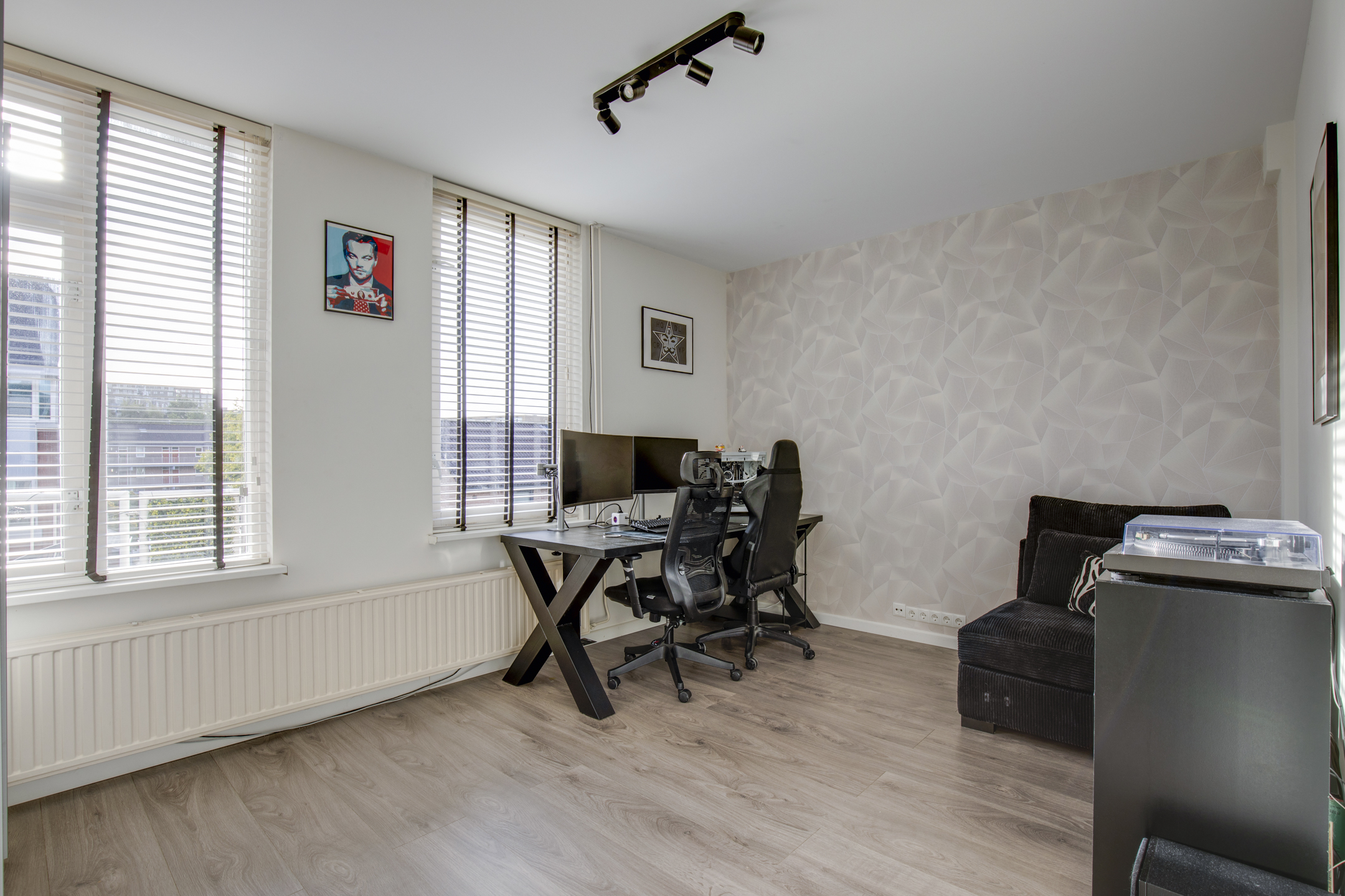 2de VERDIEPING: vanaf de galerij heb je toegang naar de entree. Via entree bereik je de ruime hal met aan de linkerzijde de prachtige, ruime woonkamer van circa 34,4 m2 die voorzien is van een mooie visgraat vloer, luxe zwarte open keuken met diverse inbouwapparatuur en een afgesloten bijkeuken. In de woonkamer bevindt zich tevens de trap opgang naar de eerste verdieping. Aan de andere zijde van de entree tref je twee ruime kamers aan, waaronder de ruime slaapkamer van 14,7 m2 en een aparte kamer die momenteel in gebruik is als wasruimte van circa 8,2 m2. In de hal bevinden zich tevens de luxe toiletruimte alsmede de recent gemoderniseerde badkamer die voorzien is van een inloop douche en een wastafel meubel.