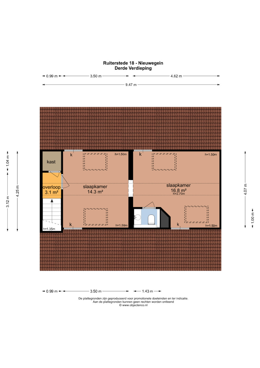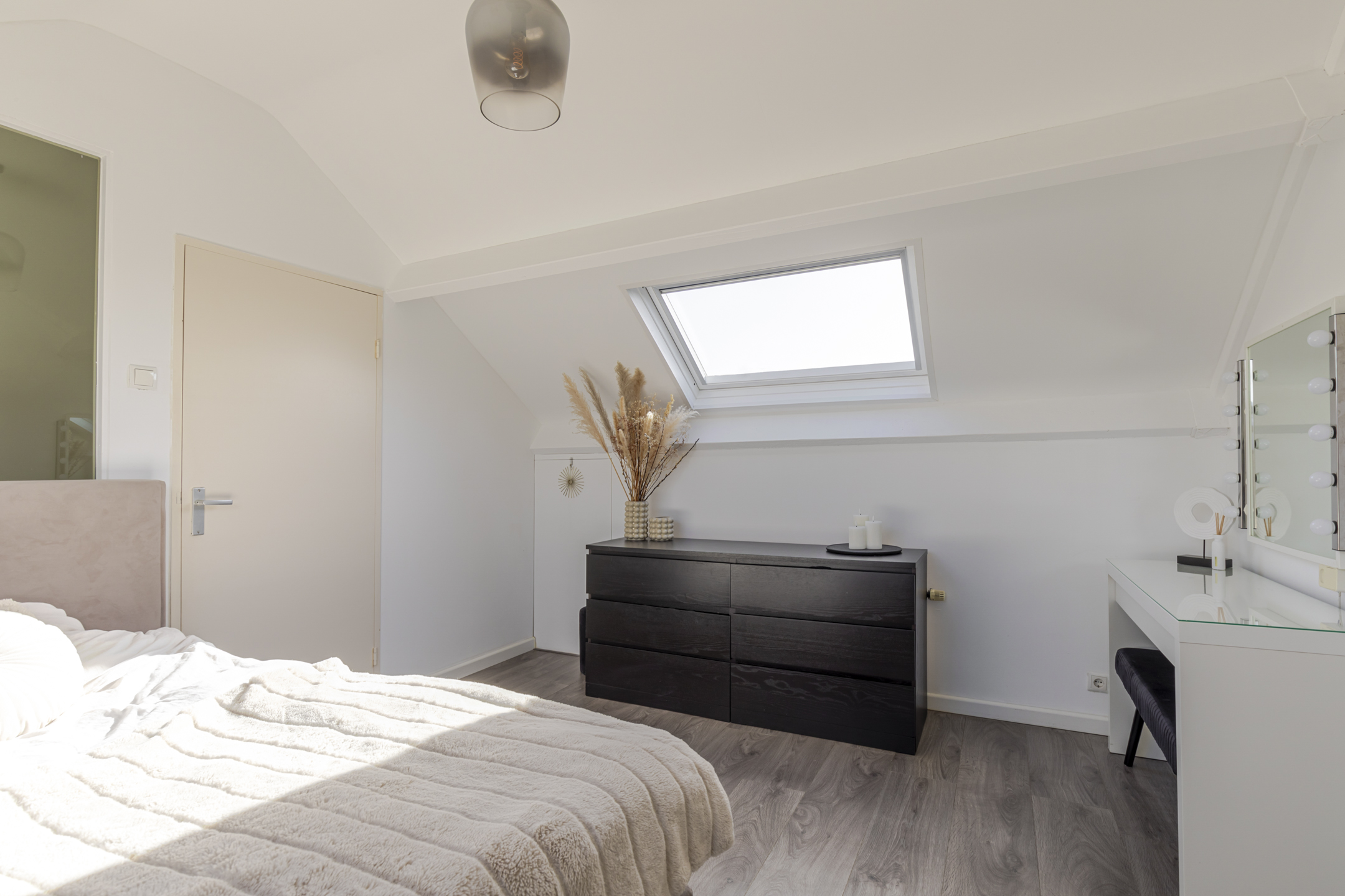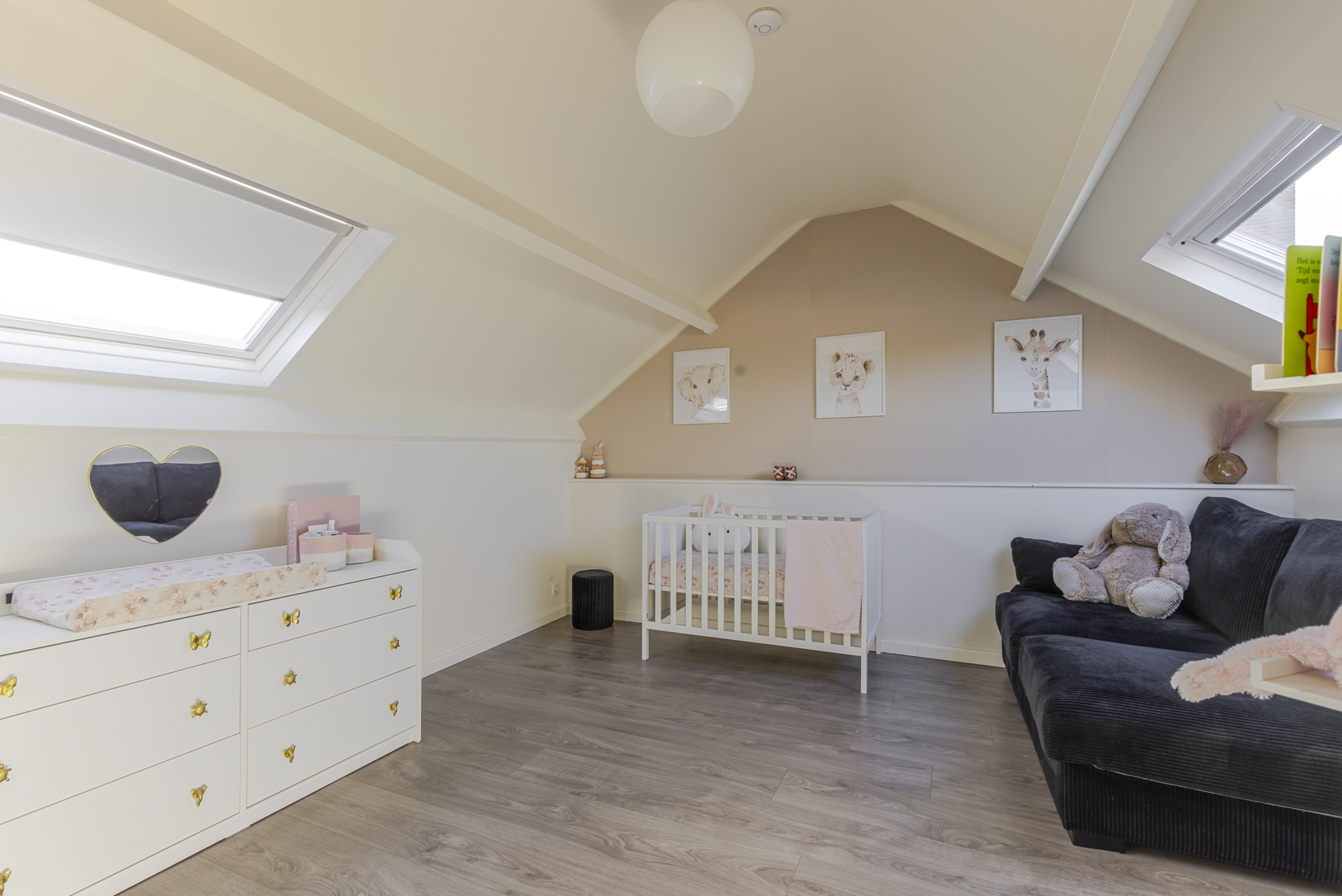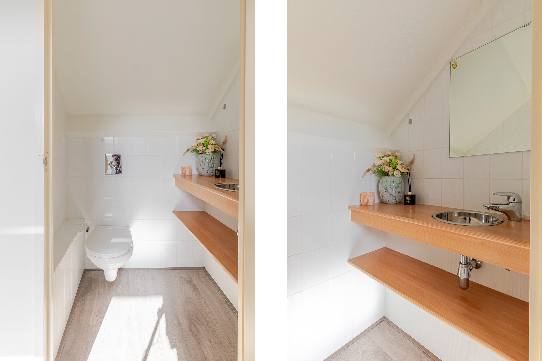 3de VERDIEPING: via de trap opgang bereik je de overloop met een bergkast. Op deze verdieping bevinden zich twee ruime slaapkamers van respectievelijk 16,8 m2 en 14,3 m2. Beide slaapkamers zijn voorzien van tuimelramen in de schuine kap. De grootste slaapkamer is voorzien van een extra toiletruimte met wastafel meubel.
