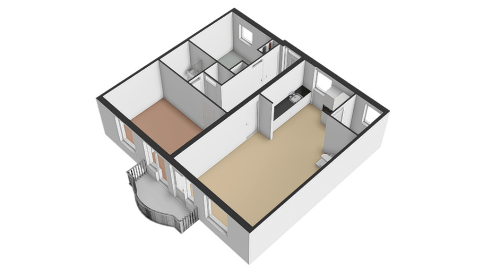 – Woonetage is voorzien van fraaie eikenkleurige pvc visgraat vloer.
