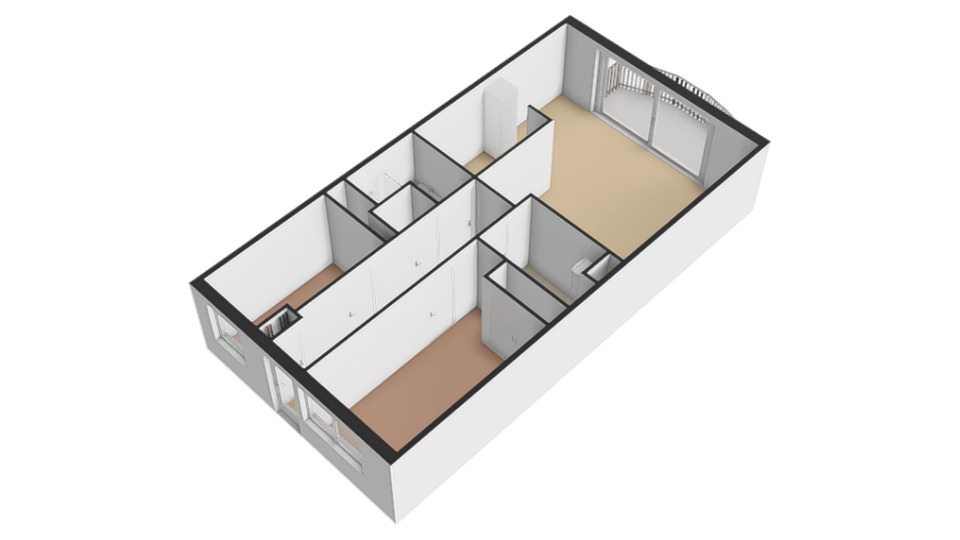 Begane grond: Bellentableau met intercom, brievenbussen en aparte ingang naar de berging. In de centrale hal is het trappenhuis naar de verdieping.