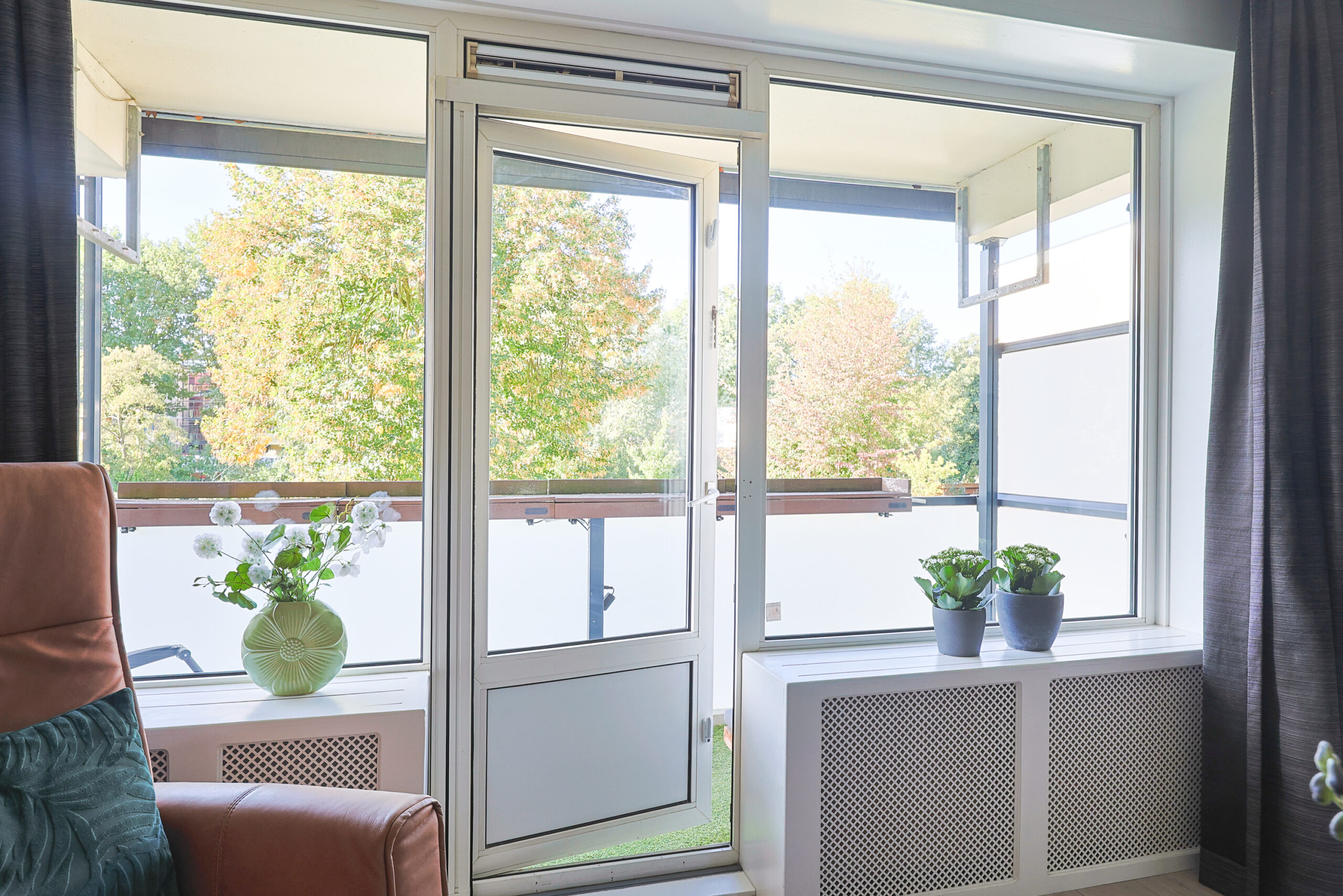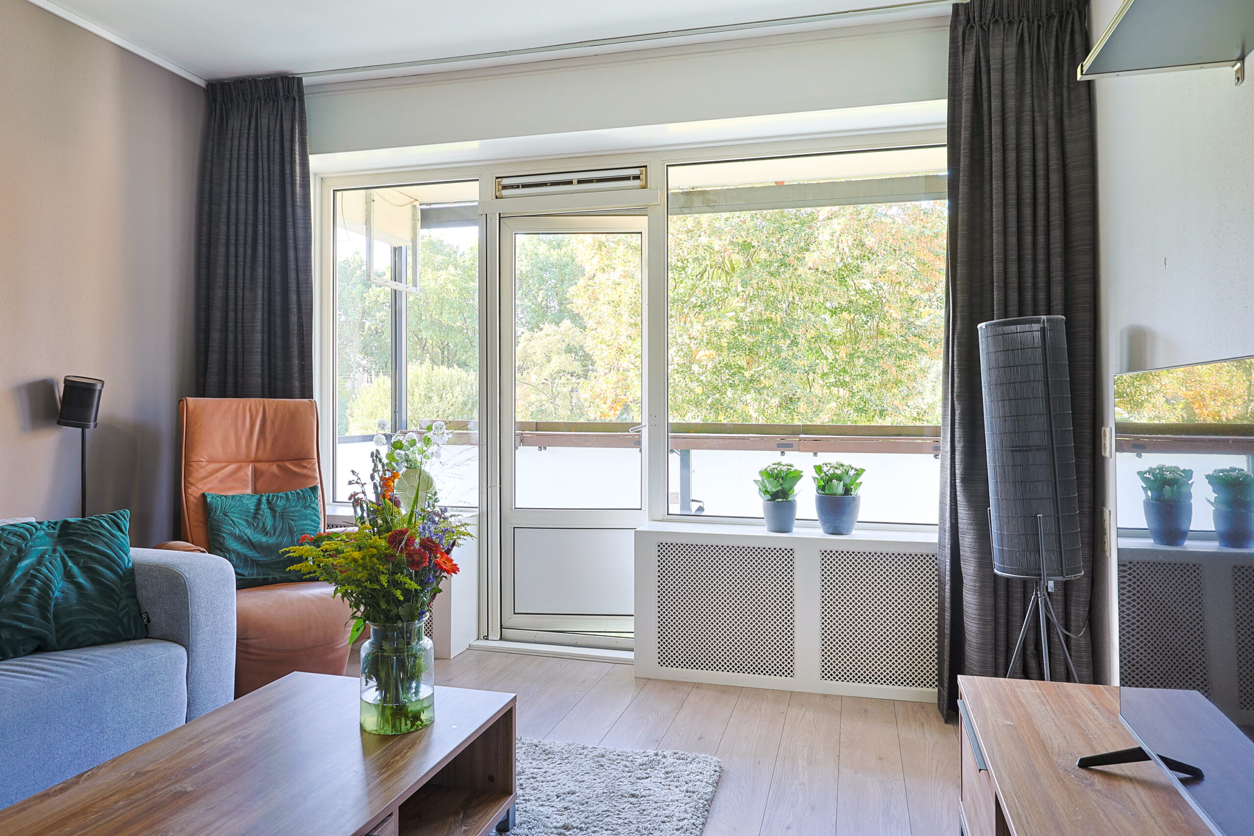– Het zonnige balkon heeft uitzicht over groenvoorziening.