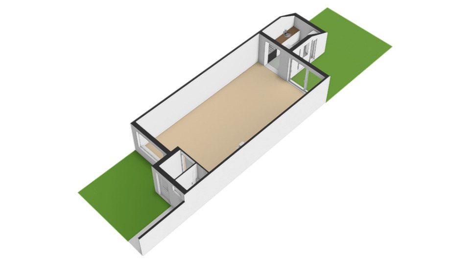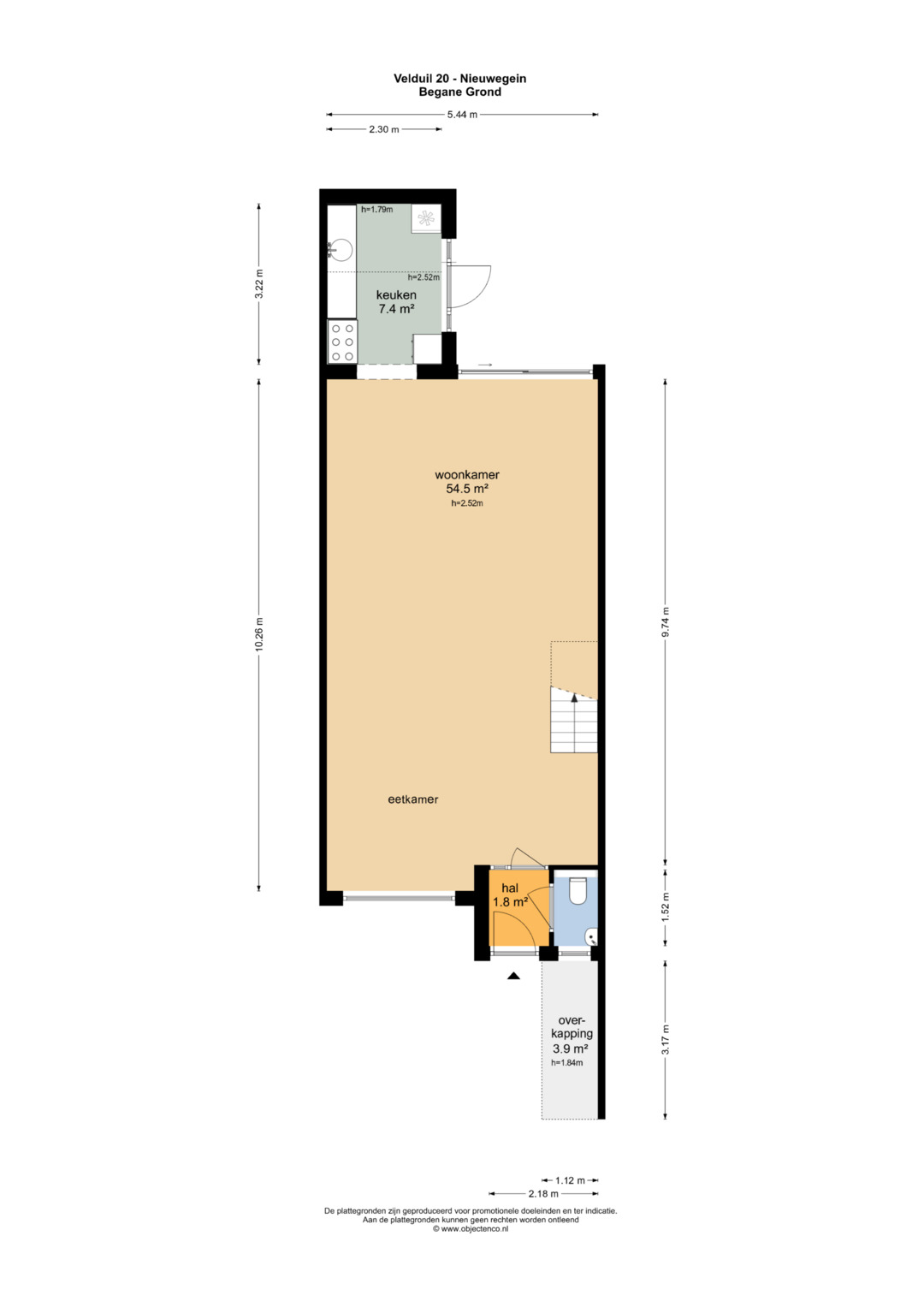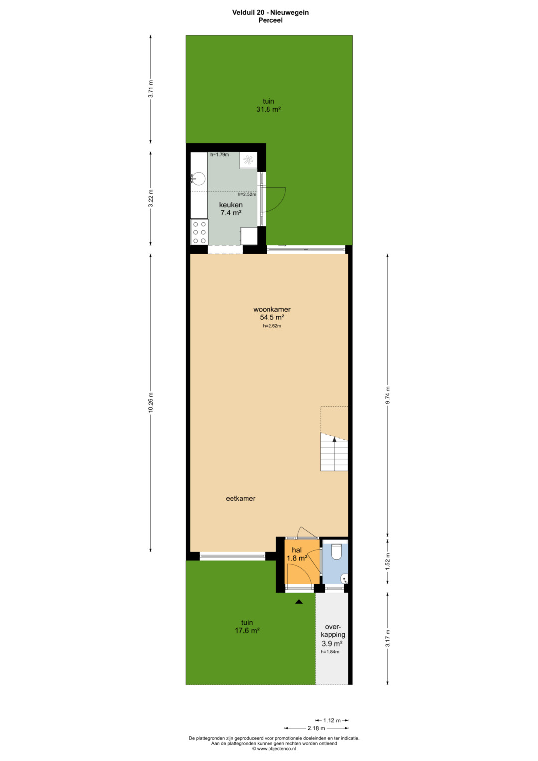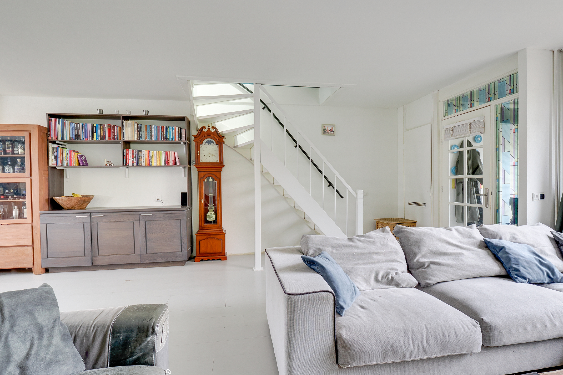 Begane grond: Entree, hal, toilet, toegang naar de woonkamer. De woonkamer is maar liefst 54,5 m² groot, met aan de voorzijde de plek van de eettafel waar je heerlijk zicht op de vijver hebt. Vanuit het zitgedeelte aan de achterzijde heb je mooi zicht op de bomen van het park en de knusse tuin. De keuken is in de voormalige berging geplaatst. Een open trap vanuit de woonkamer geeft toegang tot de verdieping.
