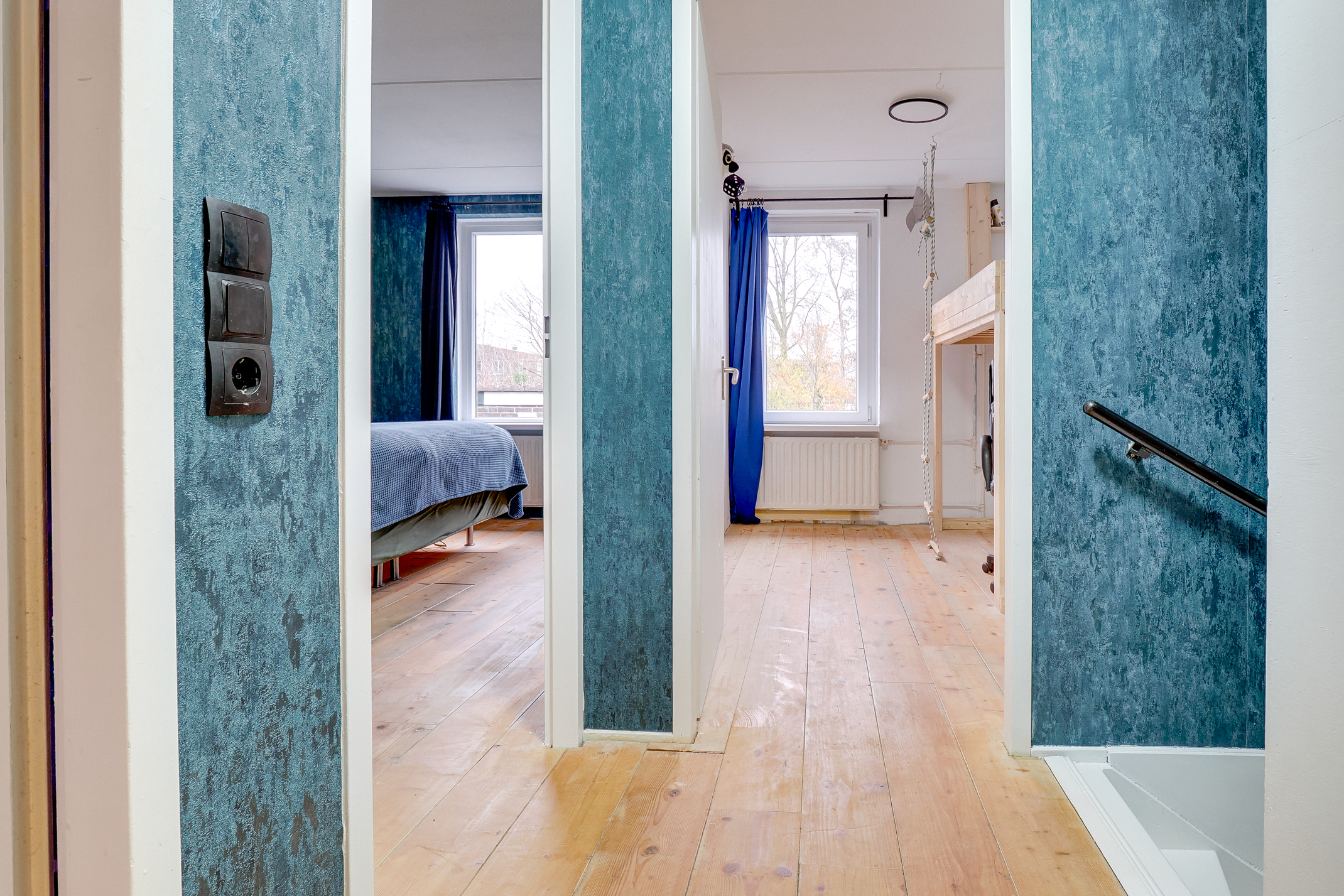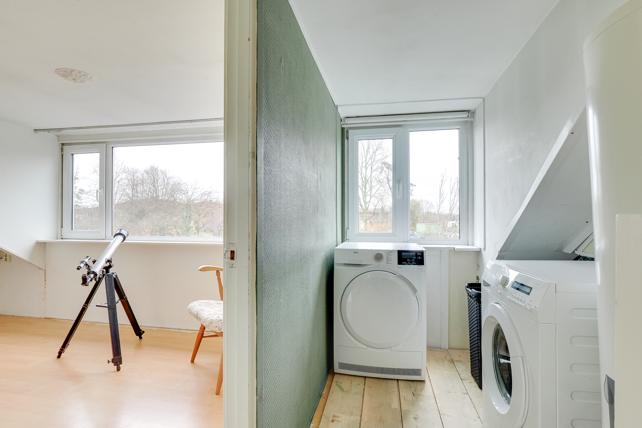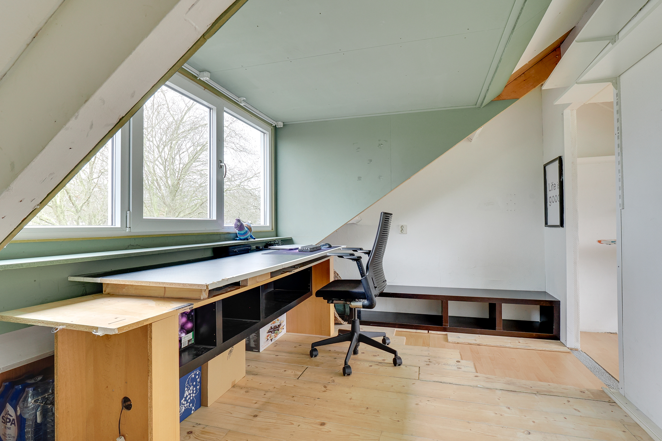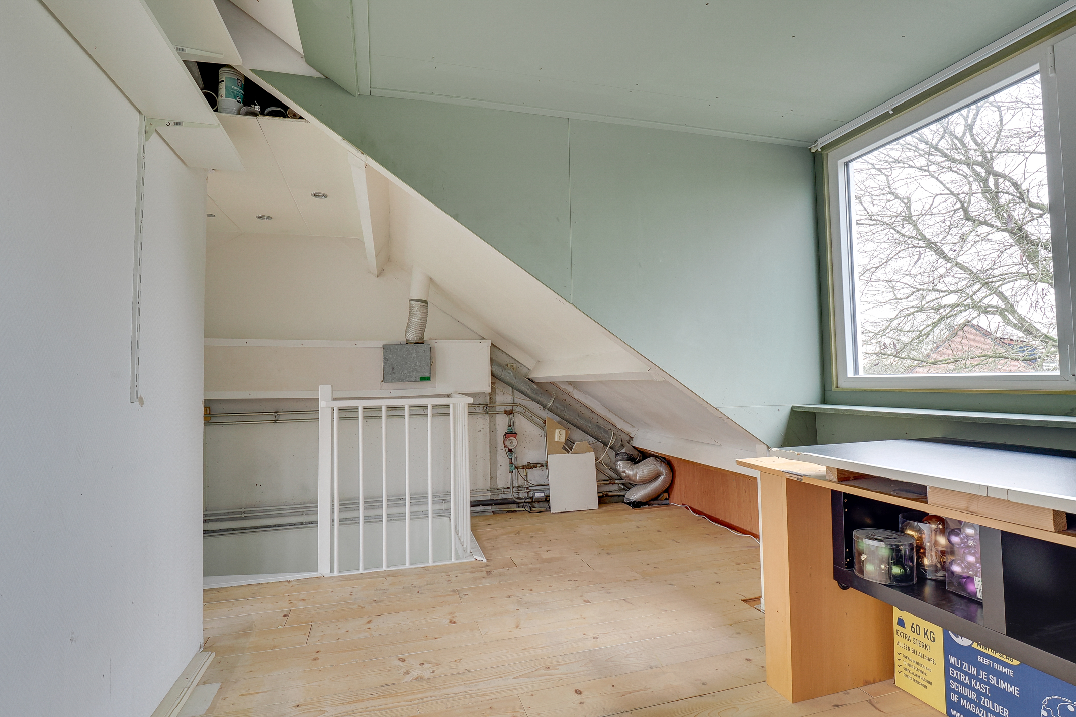 2e verdieping: Overloop, voorzolder met bergruimte en de wasmachineaansluiting, welke ook een slaapkamer is (20,8 m²), en een vijfde slaapkamer van 10,2 m². Speels gevormde slaapkamers, beiden met een dakkapel.