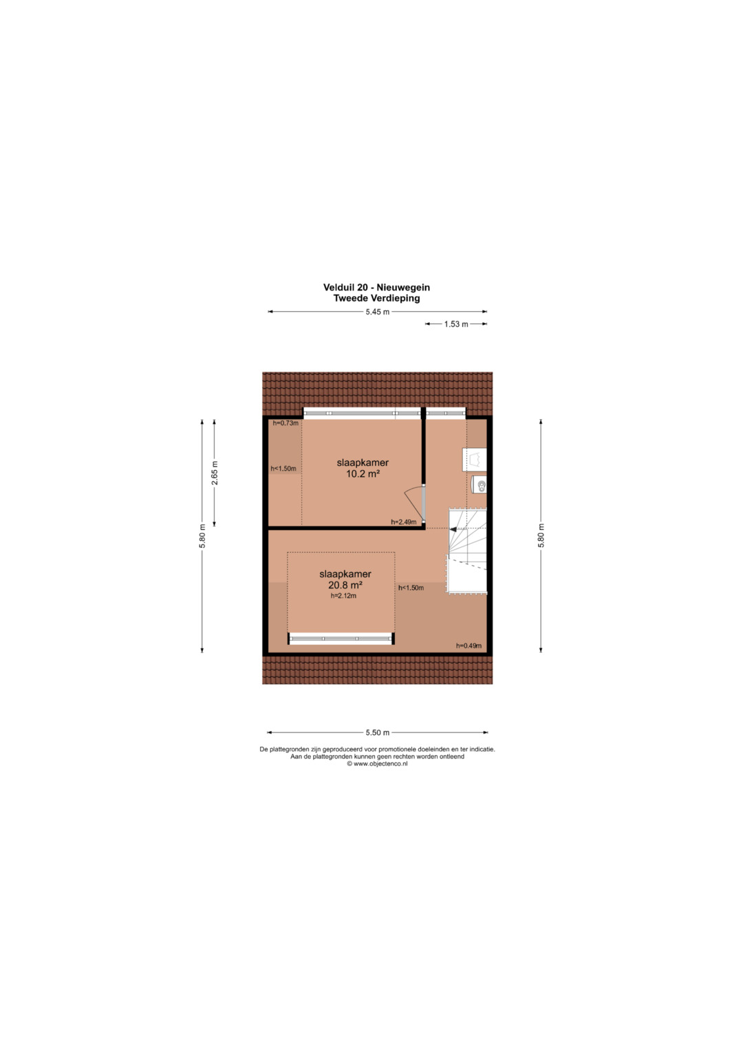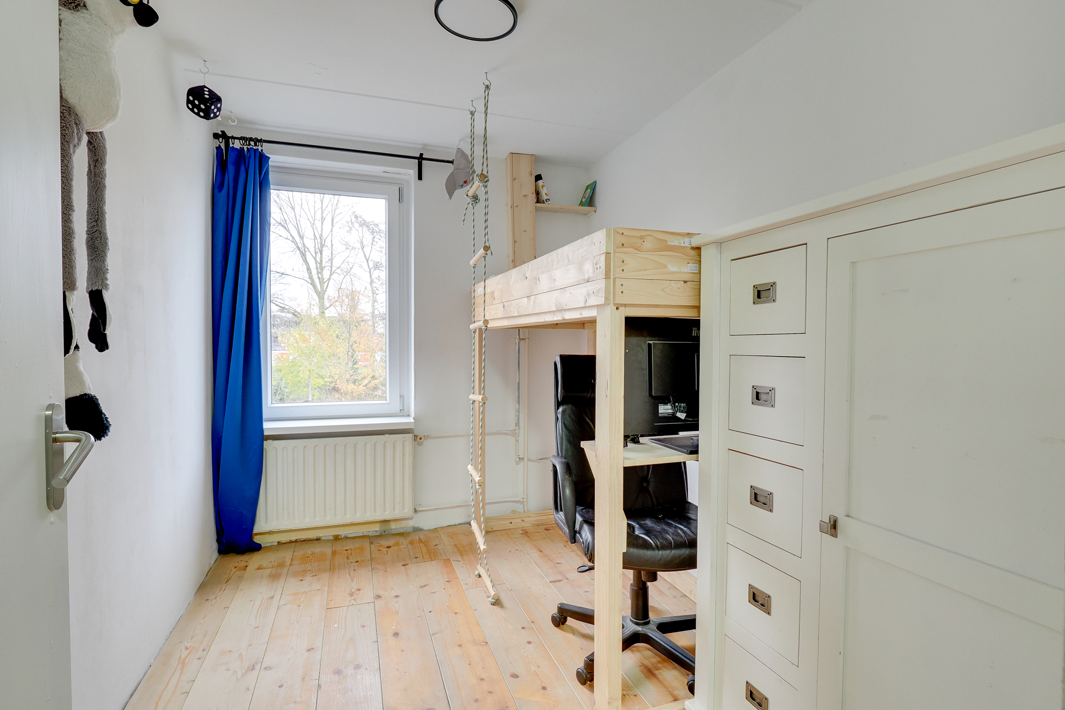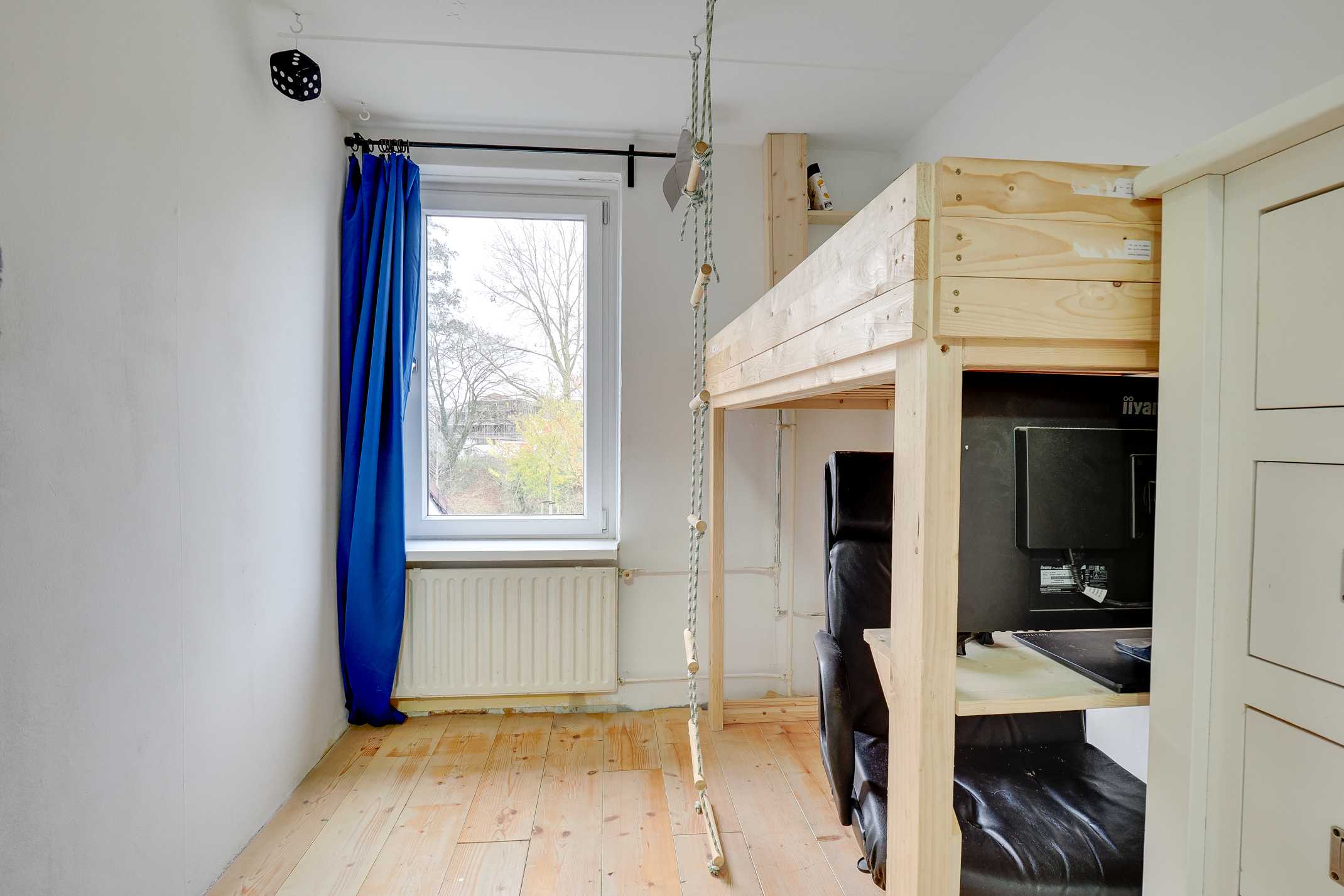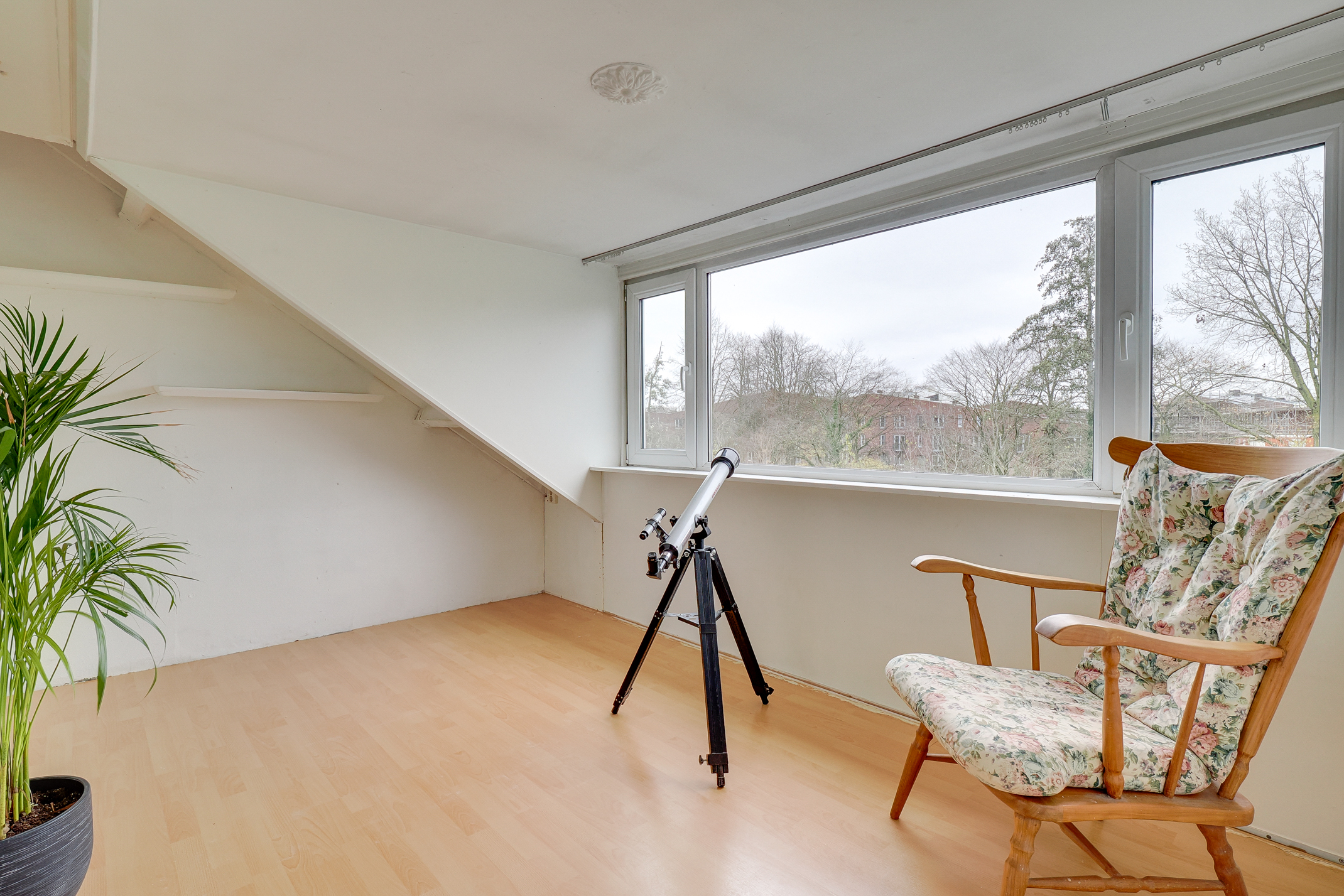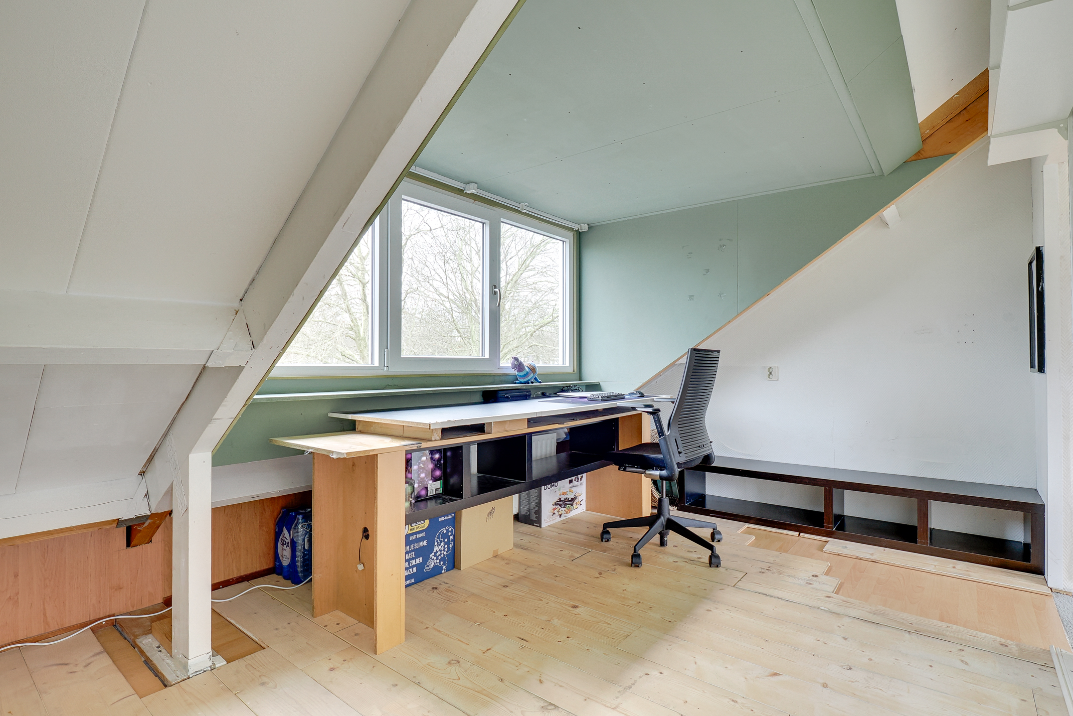 2e verdieping: Overloop, voorzolder met bergruimte en de wasmachineaansluiting, welke ook een slaapkamer is (20,8 m²), en een vijfde slaapkamer van 10,2 m². Speels gevormde slaapkamers, beiden met een dakkapel.