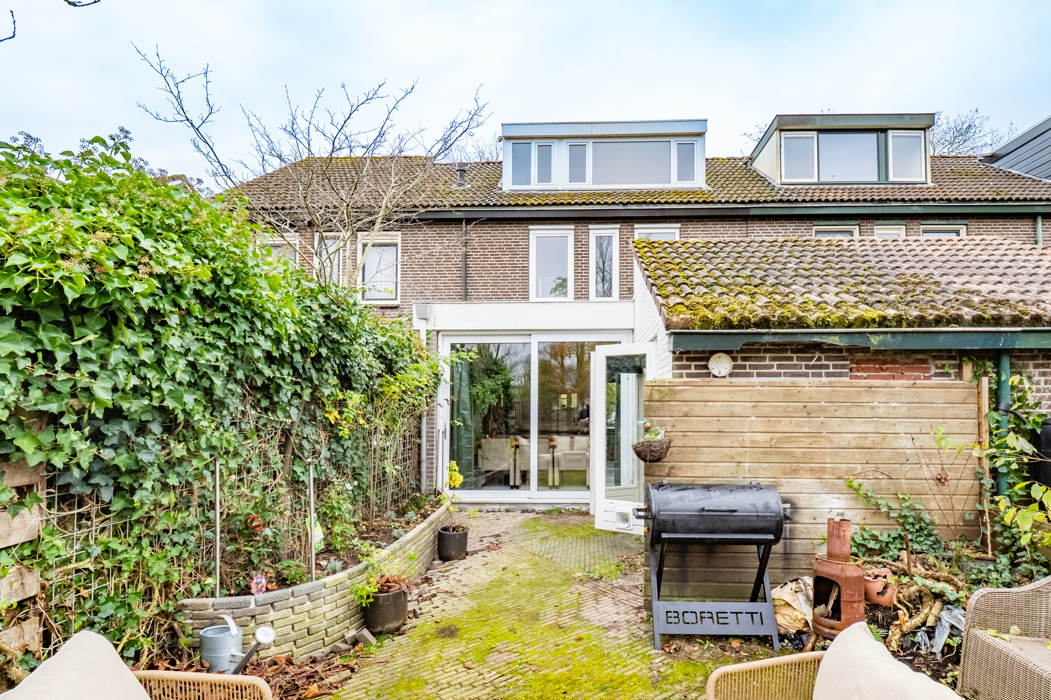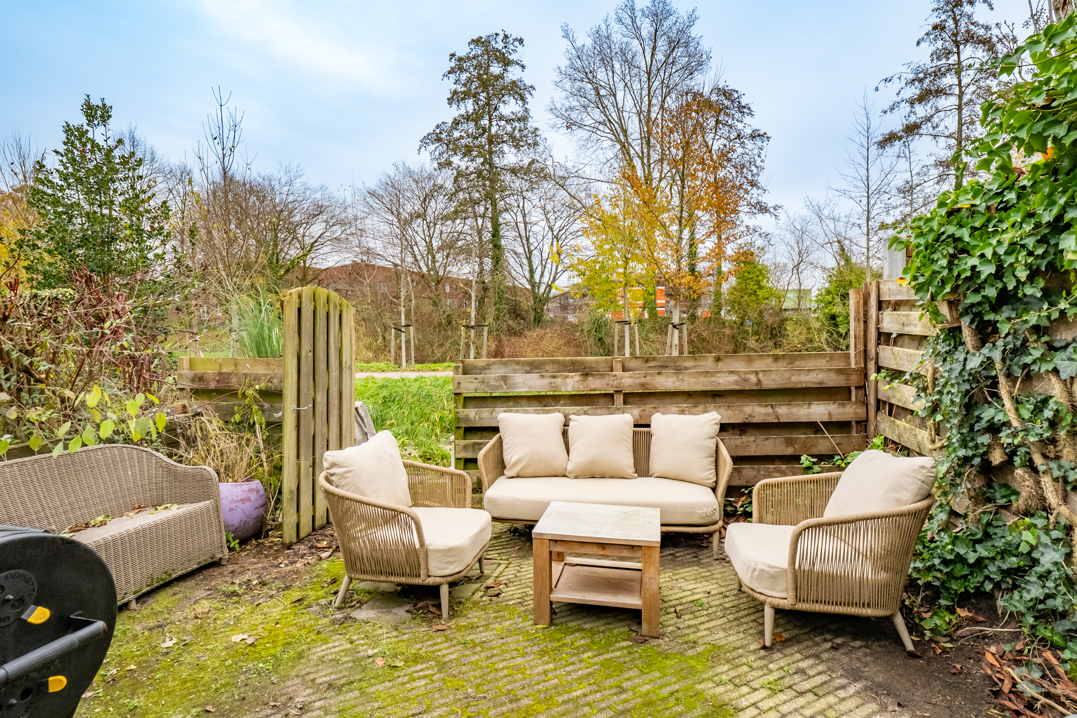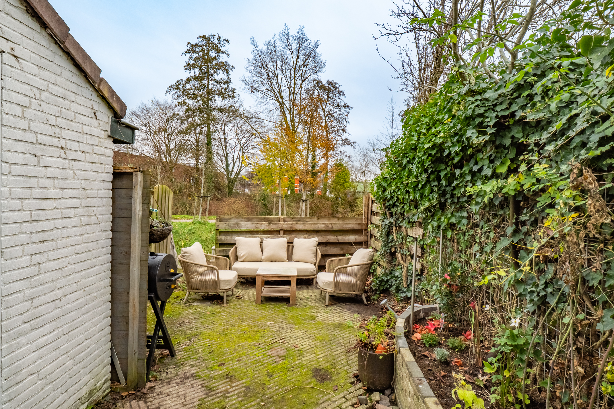 – Gezellig aangelegde tuin met veel groen en in de voortuin een overkapping voor fietsen etc.