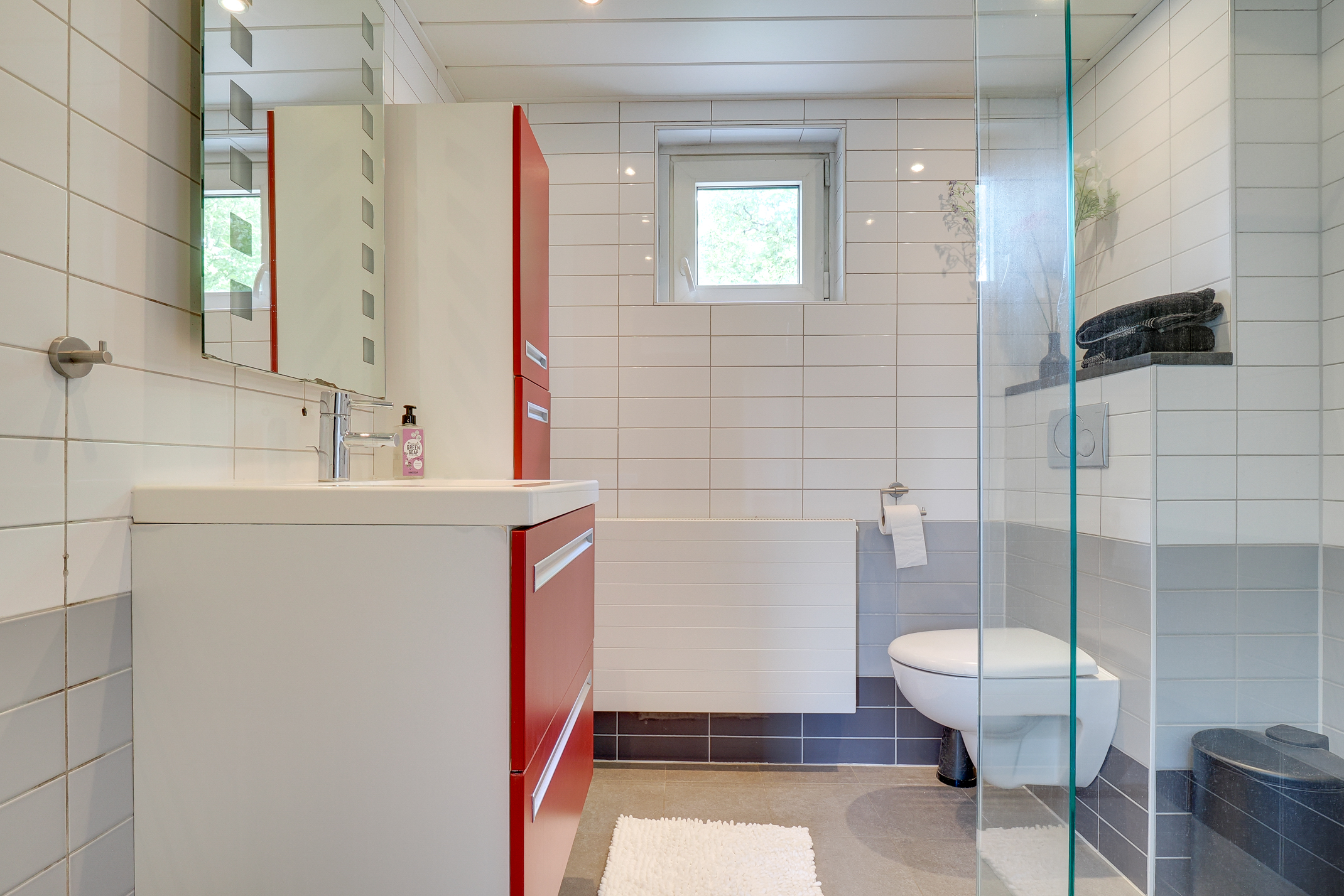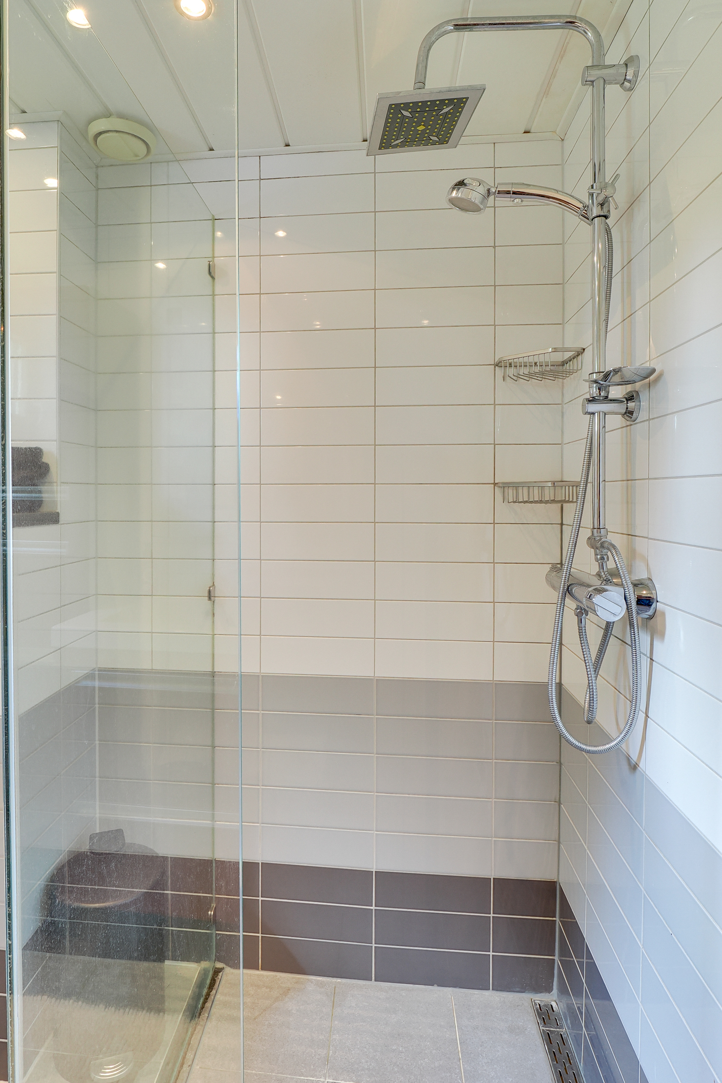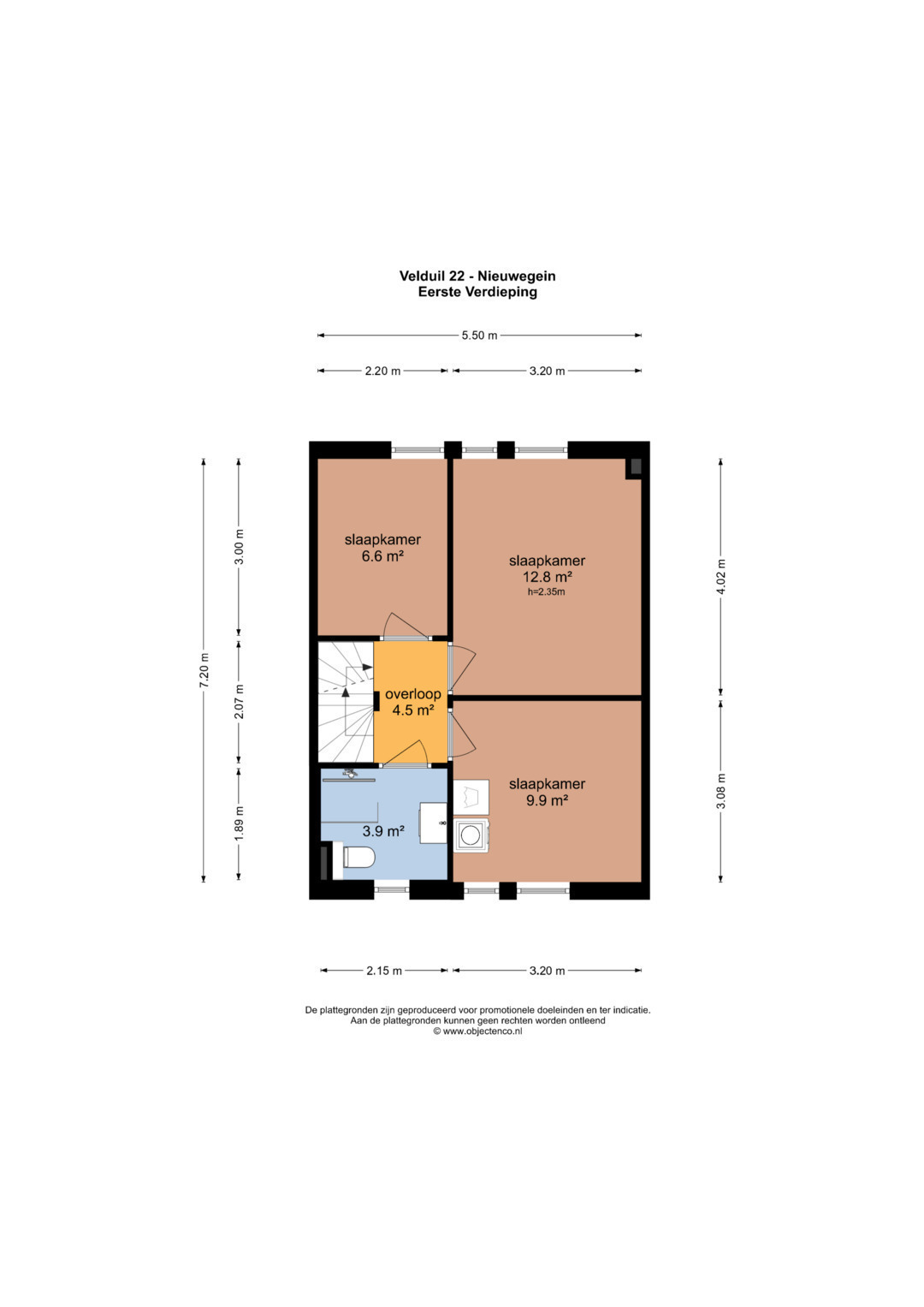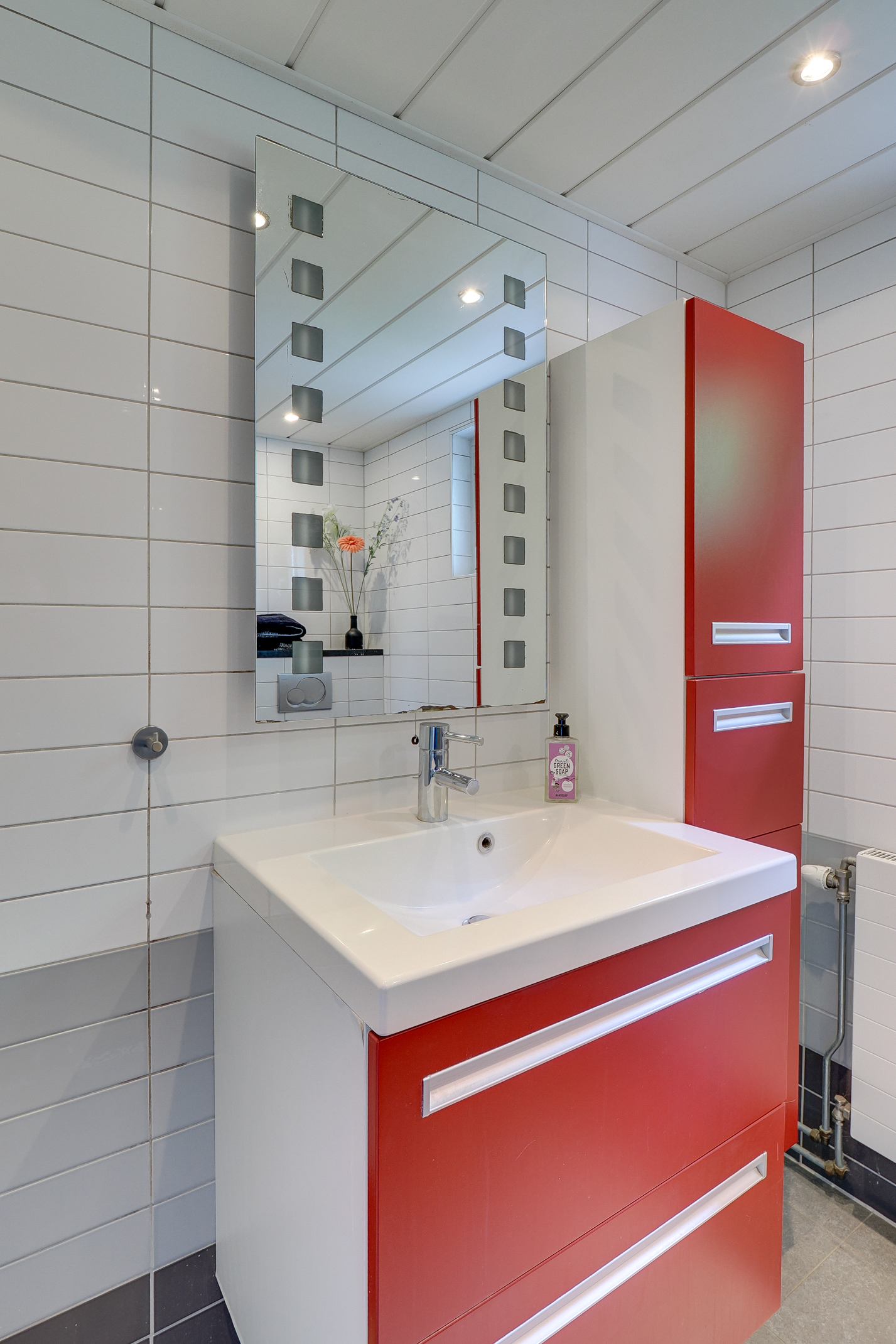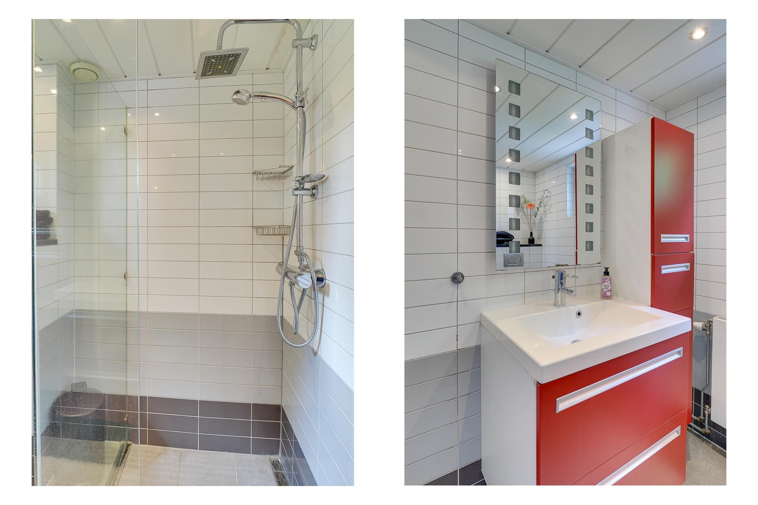 1STE VERDIEPING: Overloop met toegang tot de 3 ruime slaapkamers van resp. 12.8 m2; 9.9 m2 en 6,6 m2. In een van de slaapkamers bevindt zich de aansluiting voor de wasmachine droger. De keurige badkamer beschikt over inloopdouche, wastafelmeubel en toilet.