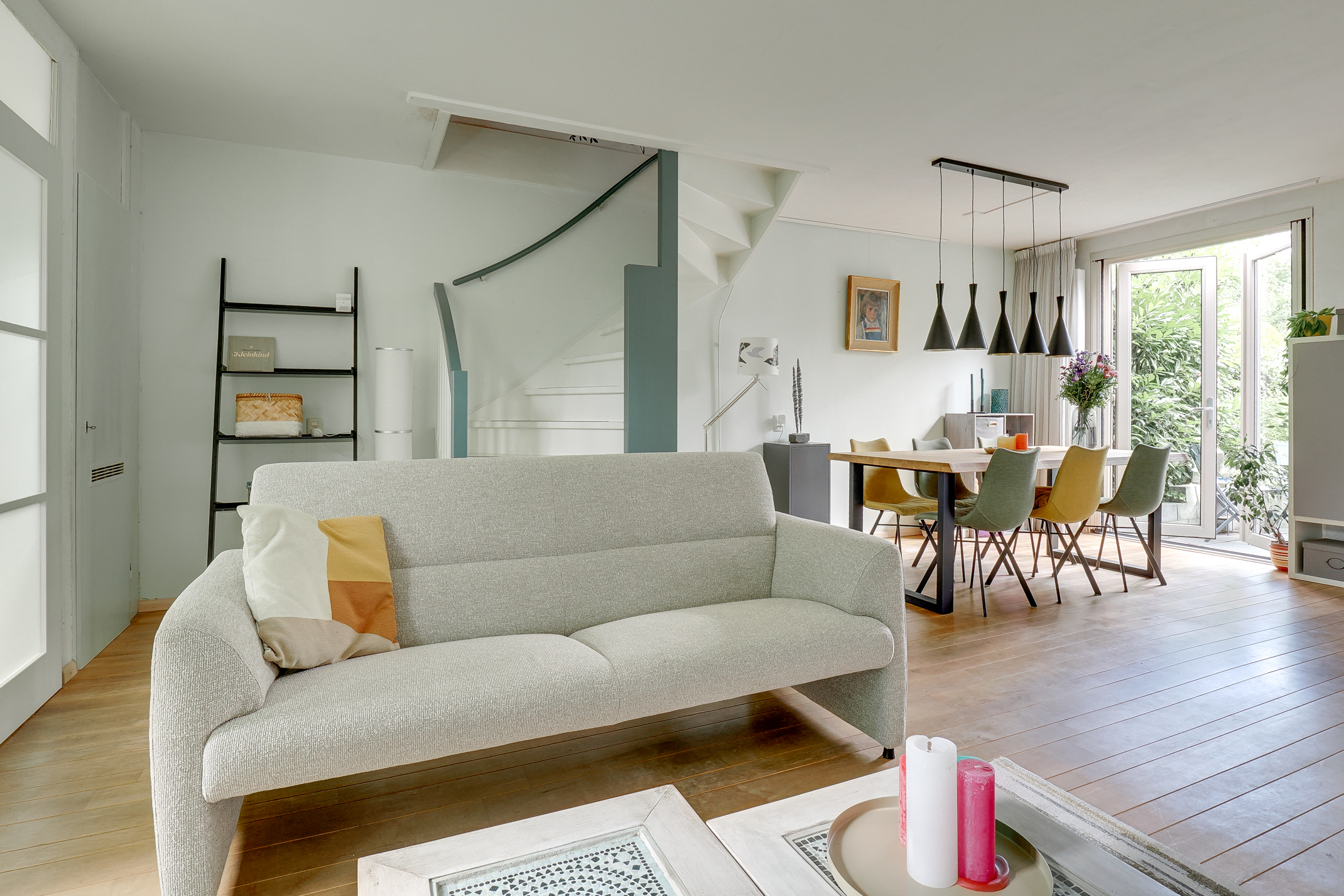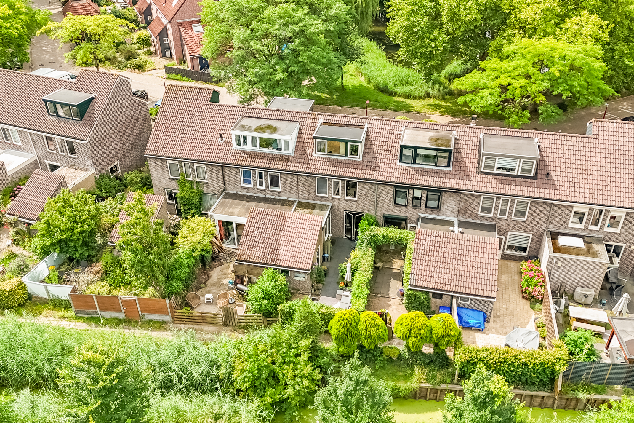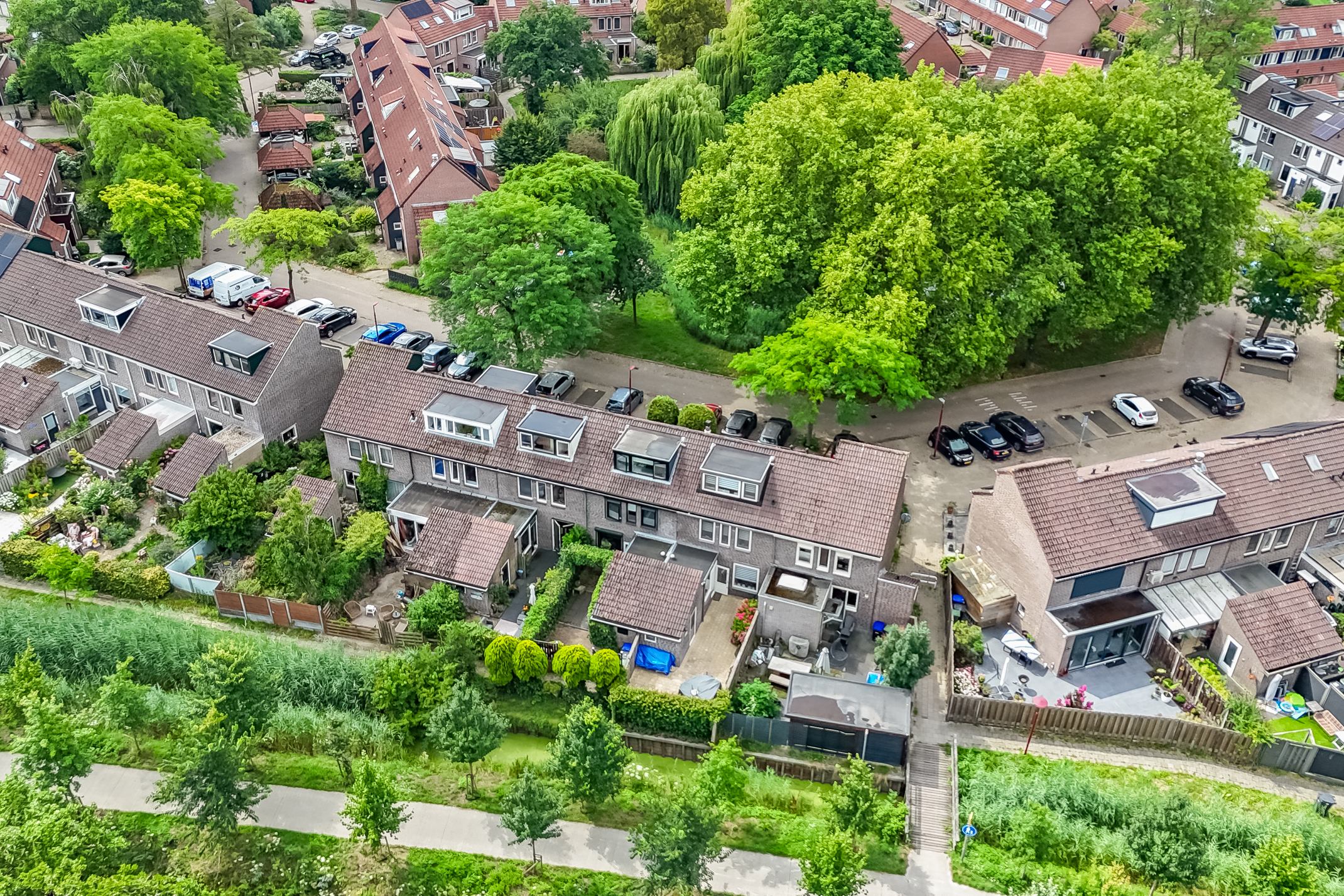 BEGANE GROND: Entree, hal, modern toilet en meterkast. Toegang tot de ruime woonkamer, welke prachtig uitzicht biedt over de vijverpartij. De woonkamer is goed indeelbaar, beschikt over openslaande deuren naar de tuin en is voorzien van een keurige parket vloer. De moderne keuken bevindt zich aan de achterzijde van de woning en is voorzien van een inductiekookplaat, vaatwassen, oven, koel-/vriescombinatie en Quooker kraan. Tevens biedt de keuken toegang tot de achtertuin. De keurig aangelegde, sfeervolle achtertuin van ca. 10 meter diep is een fijne besloten plek om te zitten. De tuin biedt zowel zon als schaduw, wat ideaal is met mooi weer. Tevens biedt de achtertuin toegang tot de berging van ca. 7,8 m2 en het direct aangrenzende park met speeltuin.