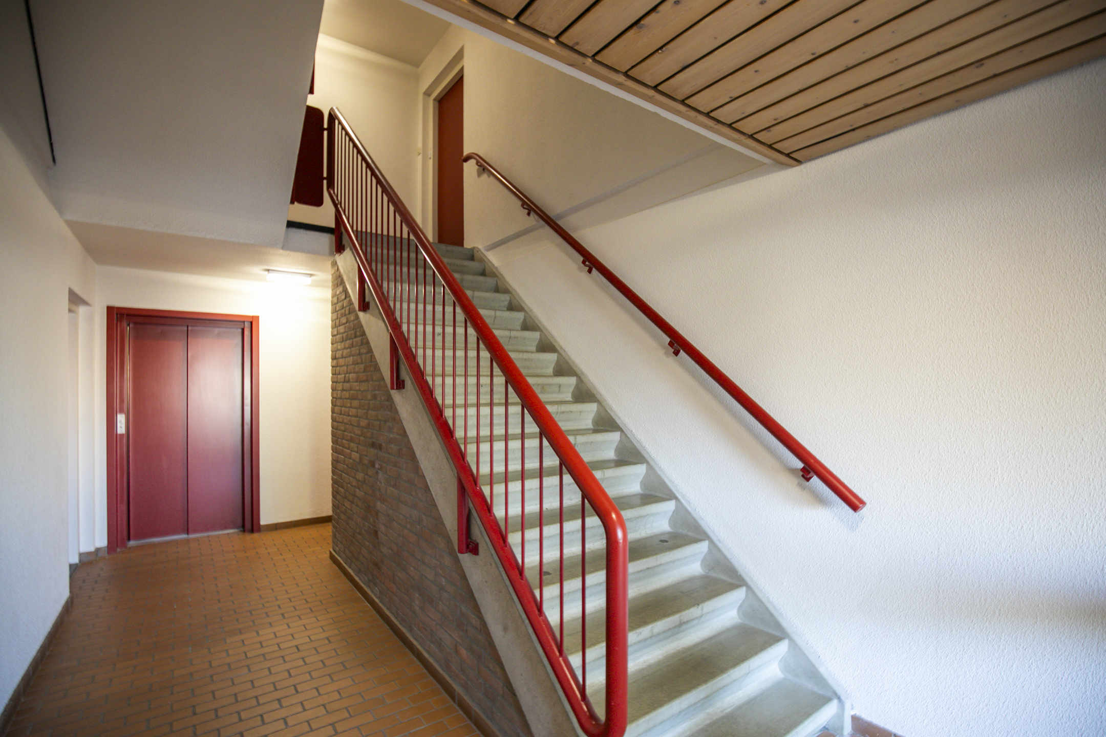BEGANE GROND: afgesloten trappenhuis met toegang naar de liftinstallatie en de fietsenberging in de onderbouw van het complex.