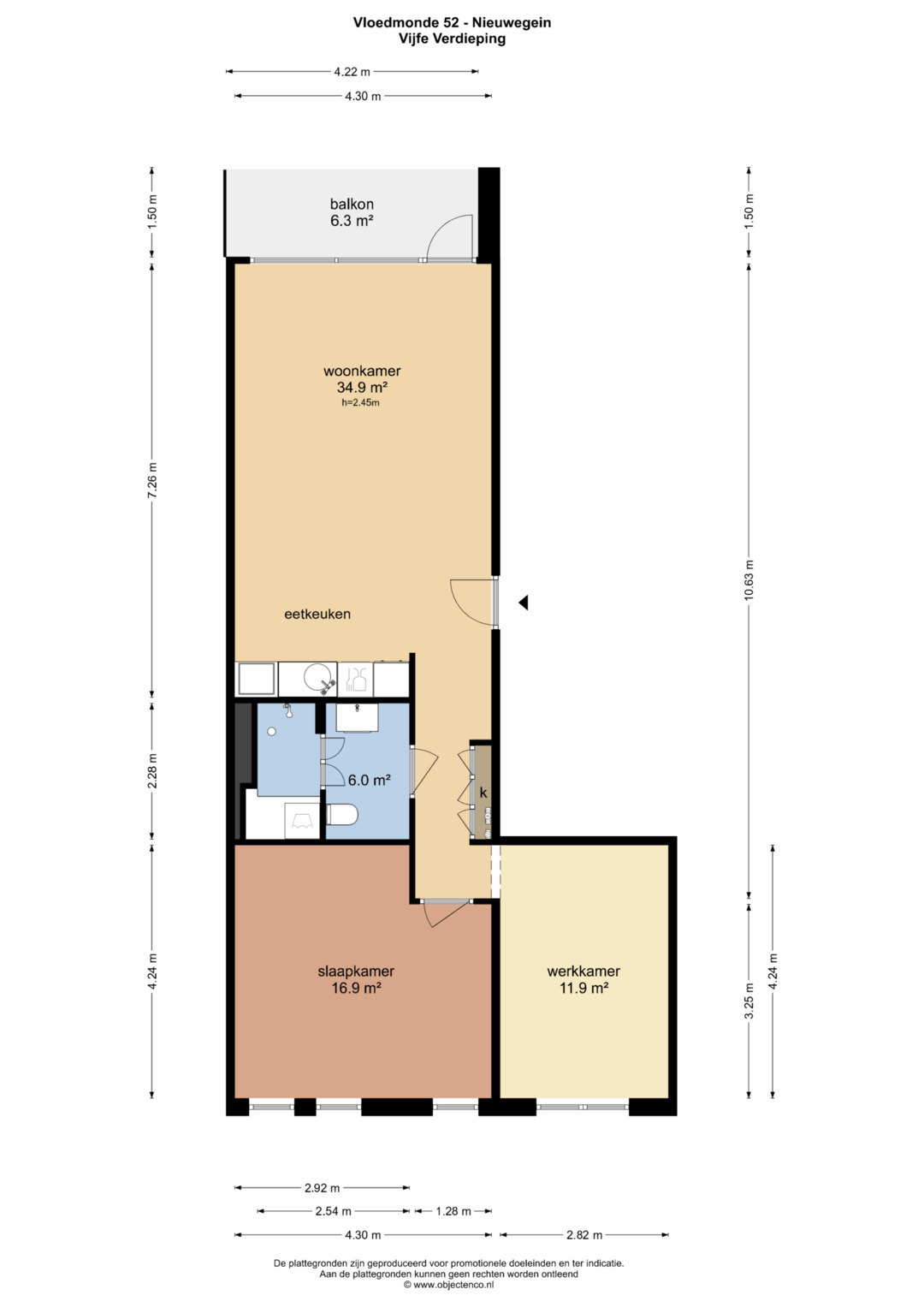 – Het appartement is opnieuw ingedeeld waardoor een ruime woonkamer is ontstaan van circa 35 vierkante meter.