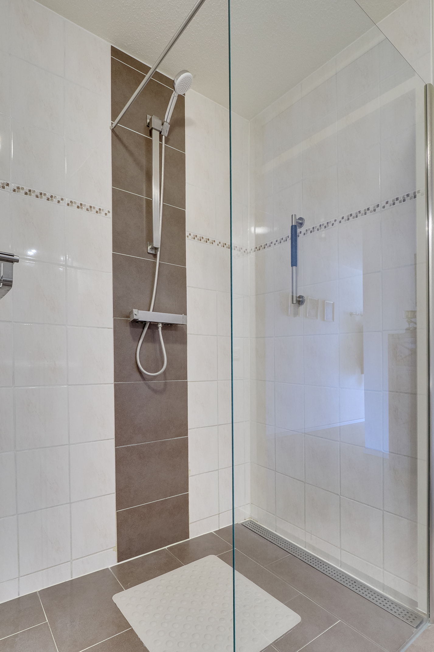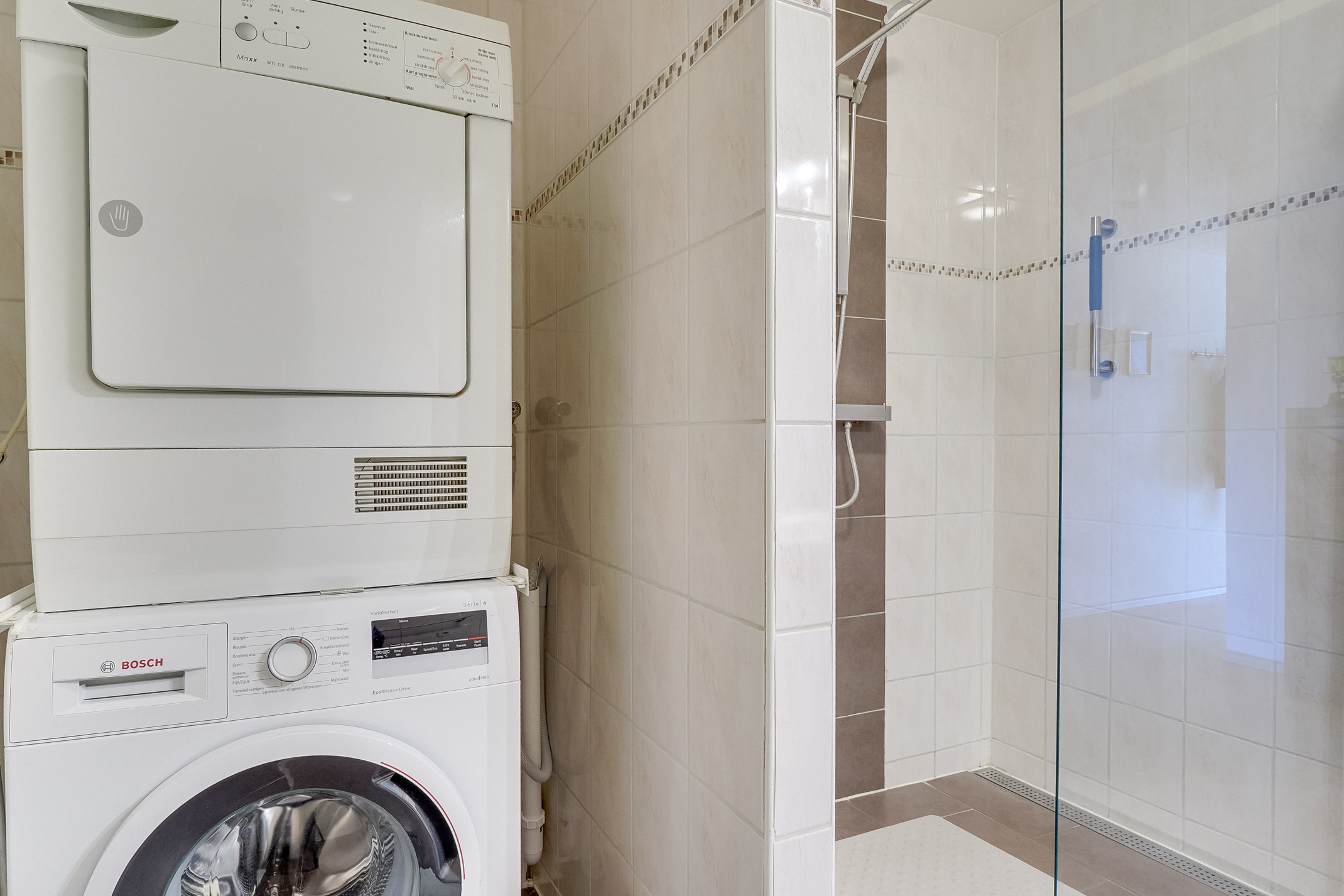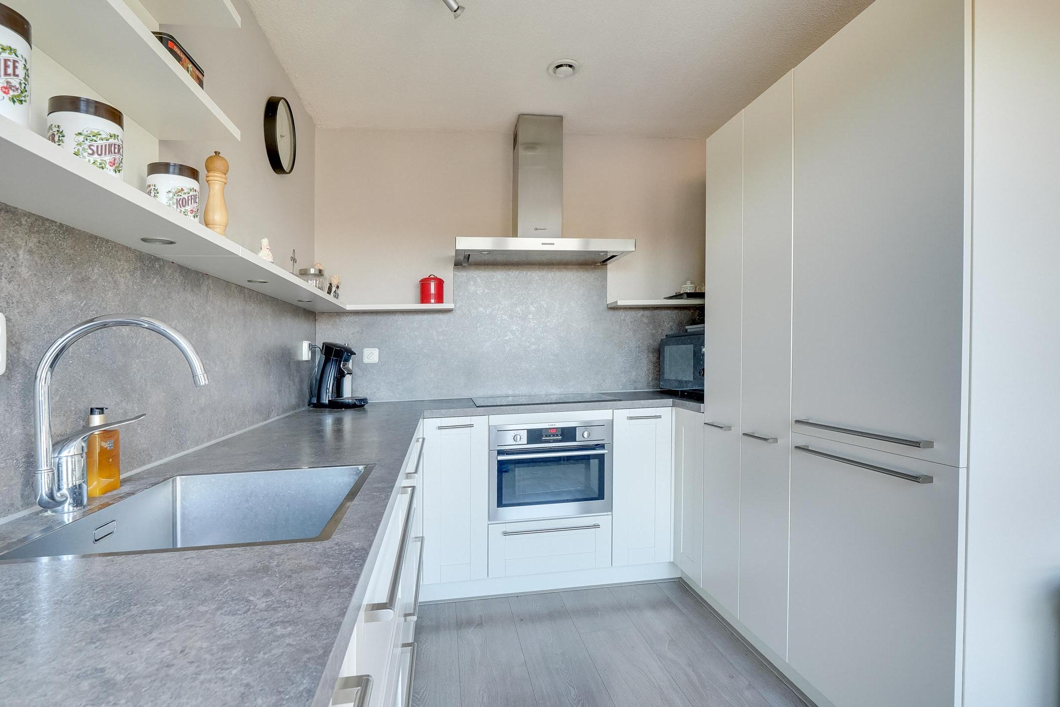 – De moderne keuken is in lichte kleurstelling uitgevoerd, U-opstelling en divers inbouwapparatuur.