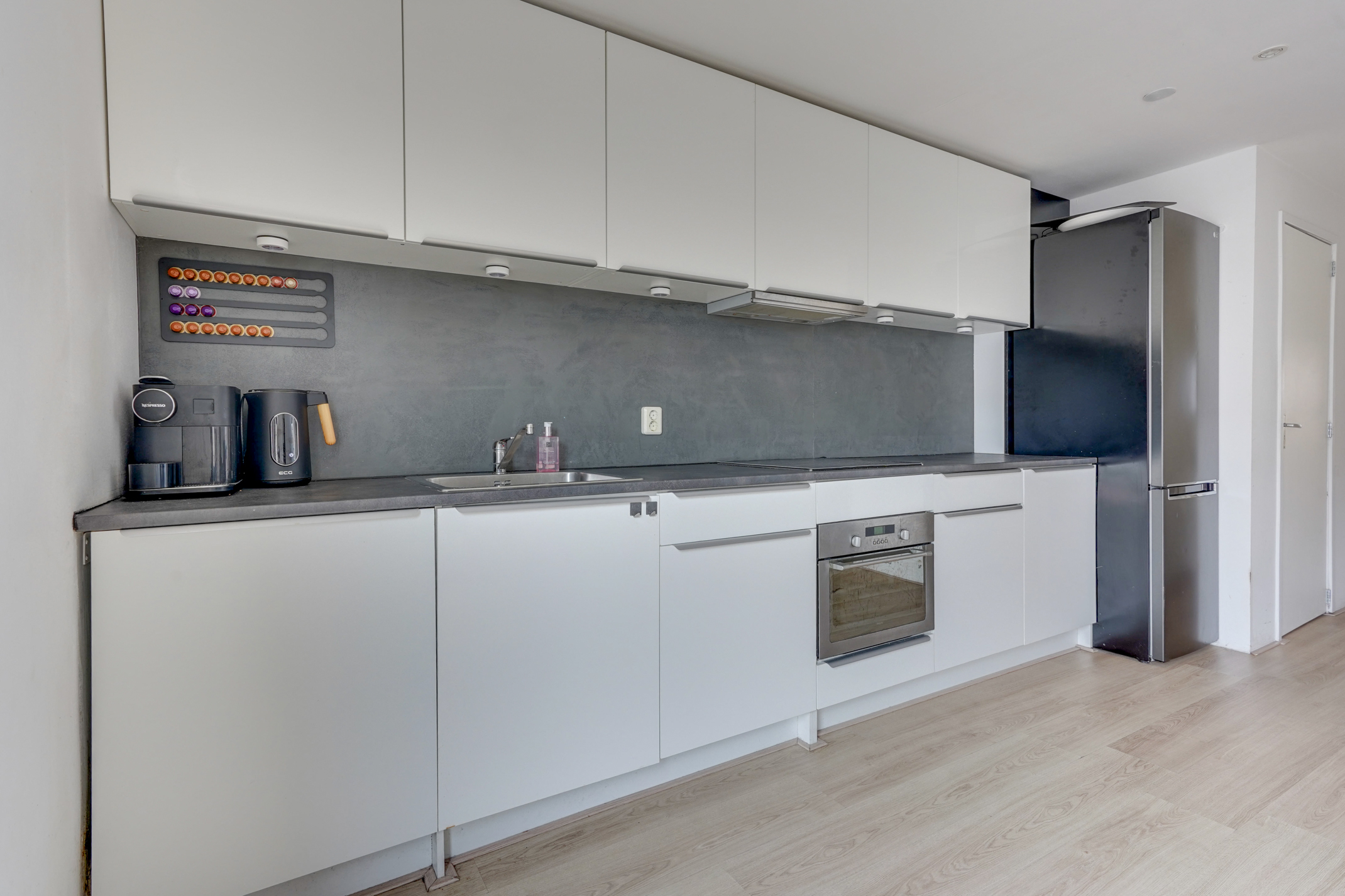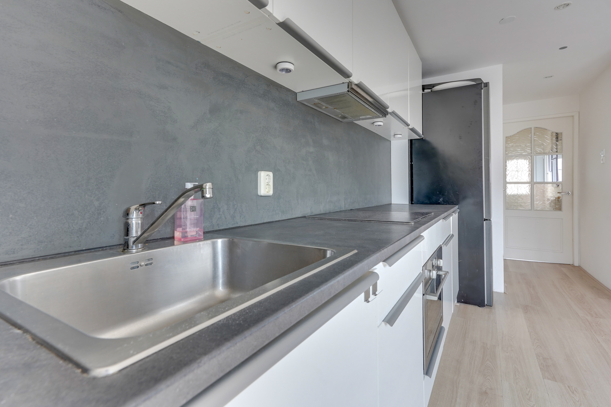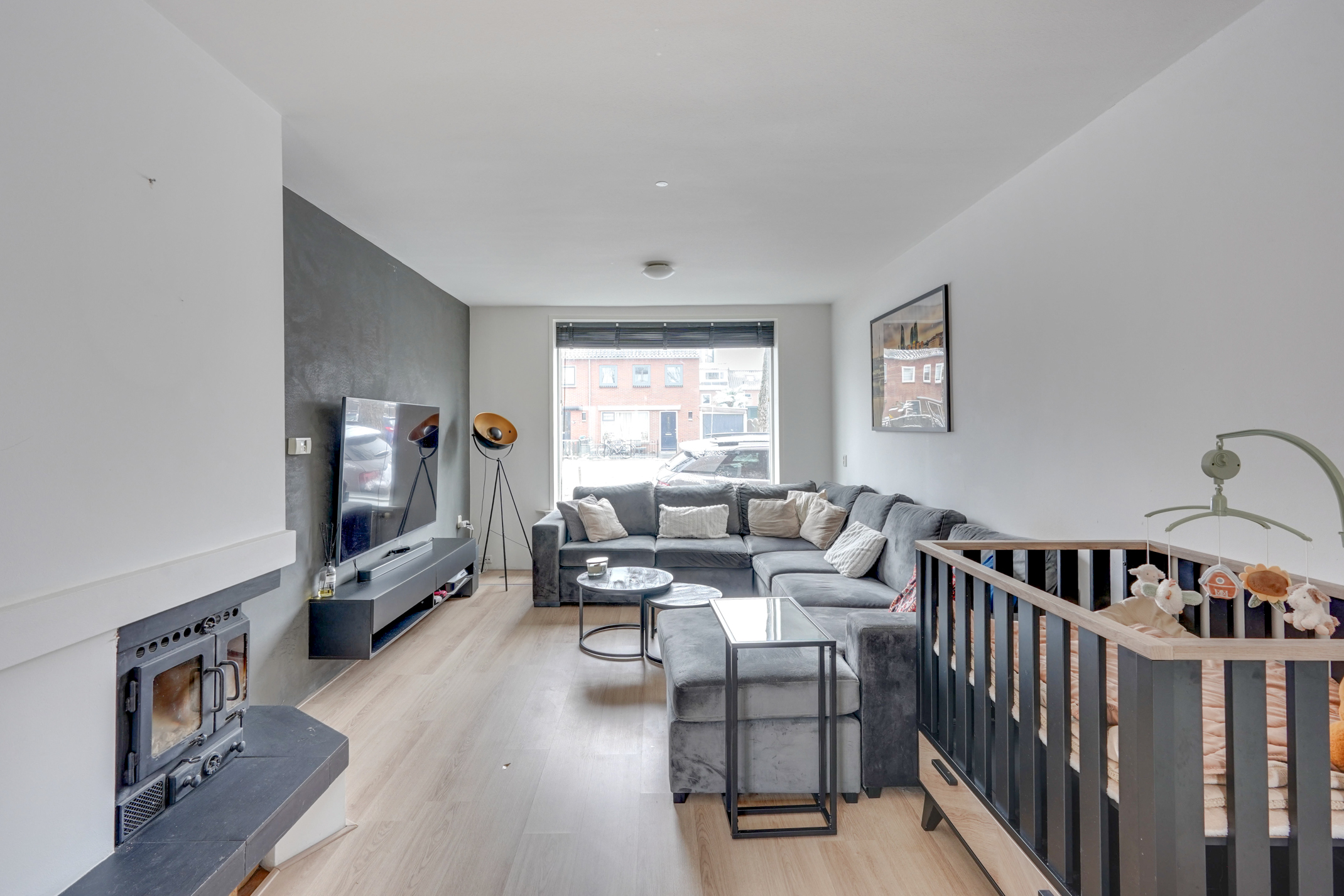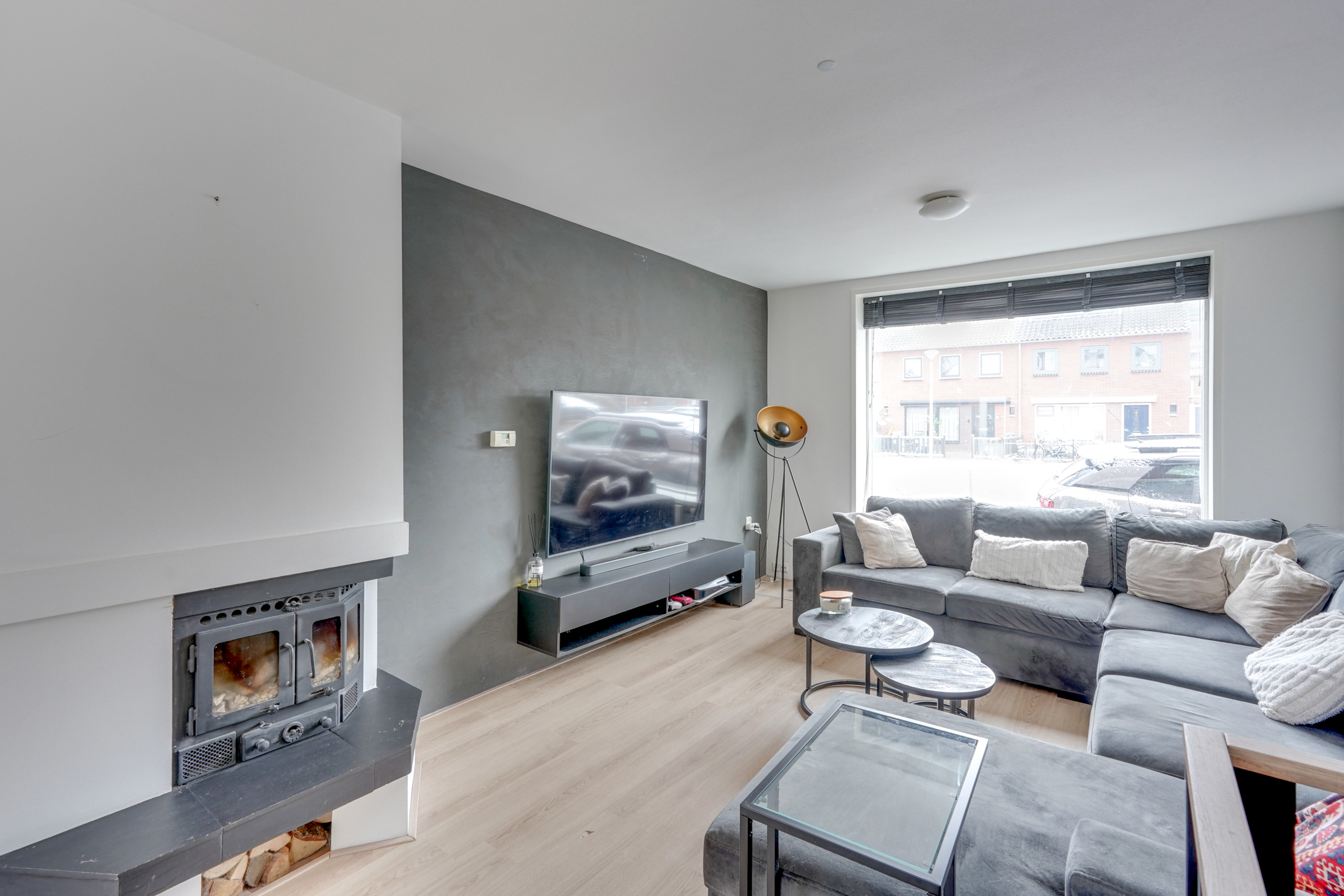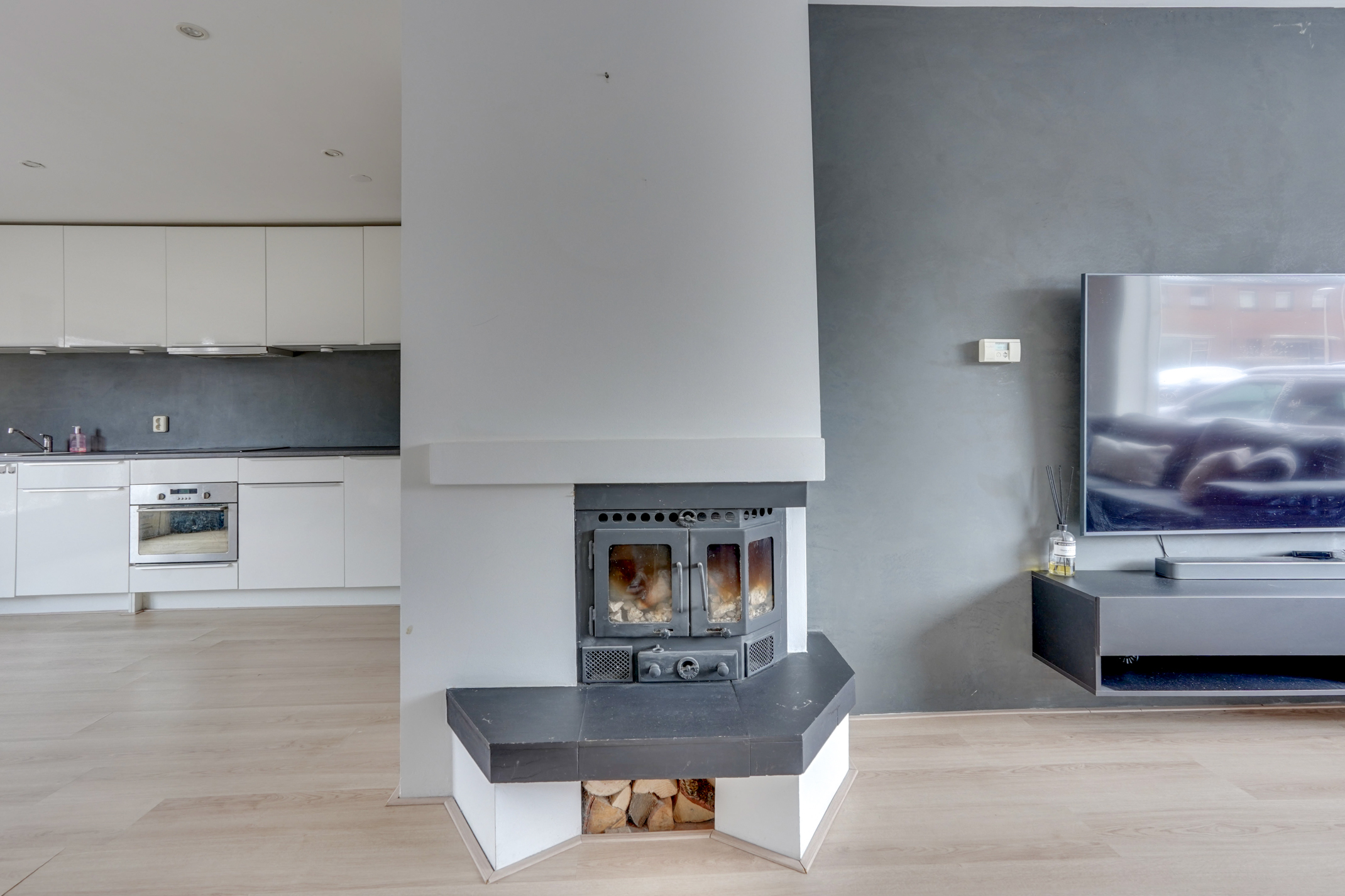 Begane grond: De gehele begane grond is voorzien van een nieuwe, lichte laminaatvloer en glad gestuukte wanden en plafonds. Entree/hal met vernieuwde, uitgebreide groepenkast, een modern, zwevend toilet met fonteintje, trapkast en trapopgang naar de eerste verdieping. Rechtdoor lopen we naar de ruime woonkamer met houtkachel en een ruime woonkeuken met verlaagd plafond en openslaande deuren naar de tuin. De keuken is voorzien van een 4 pits-inductieplaat, geïntegreerde afzuigkap en combimagnetron.