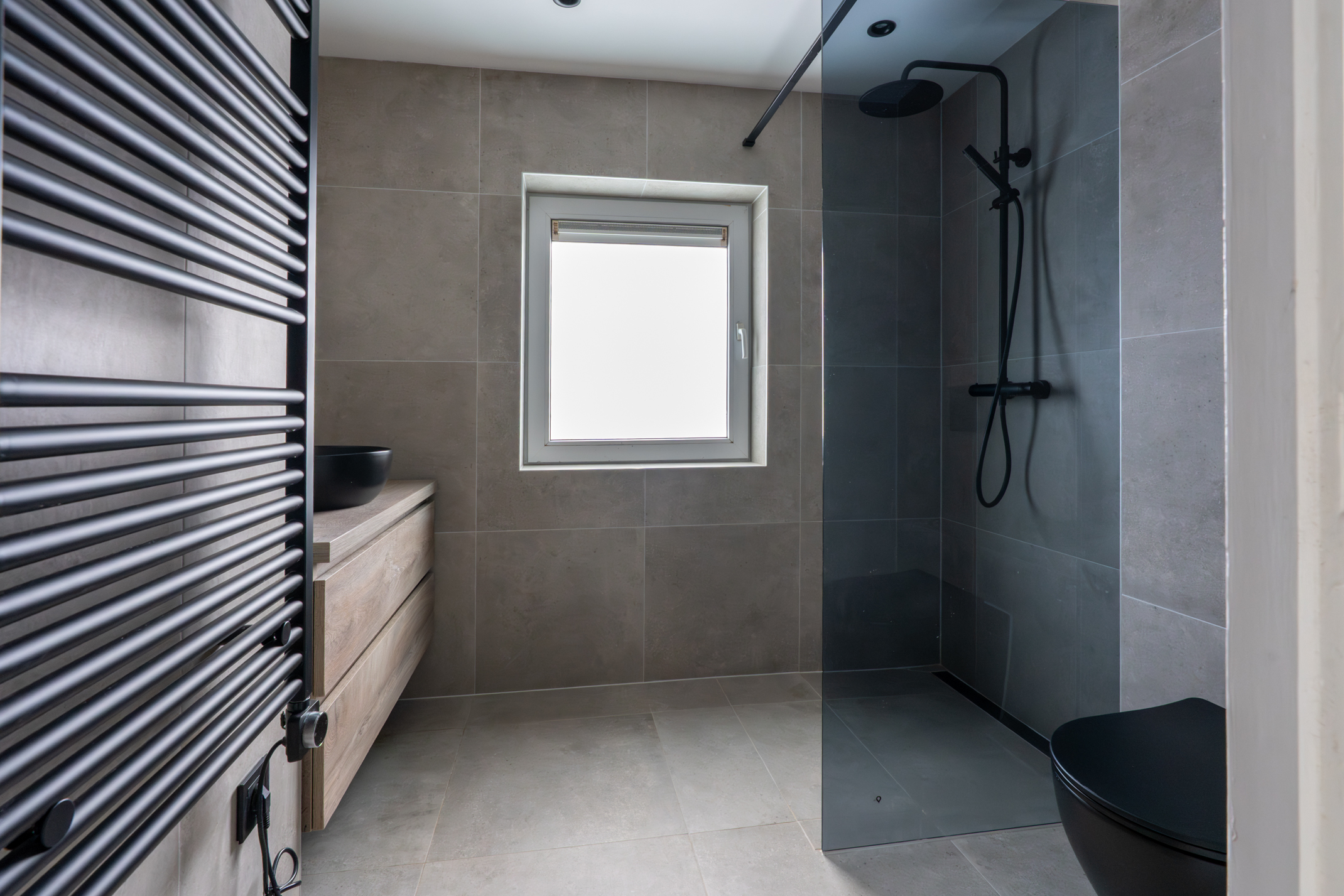 Vanaf de overloop hebben we toegang tot 3 ruime slaapkamers met kunststof kozijnen, de badkamer en de vaste trap naar de 2e verdieping. De badkamer is voorzien van een inloopdouche, wastafel, toilet en designradiator.