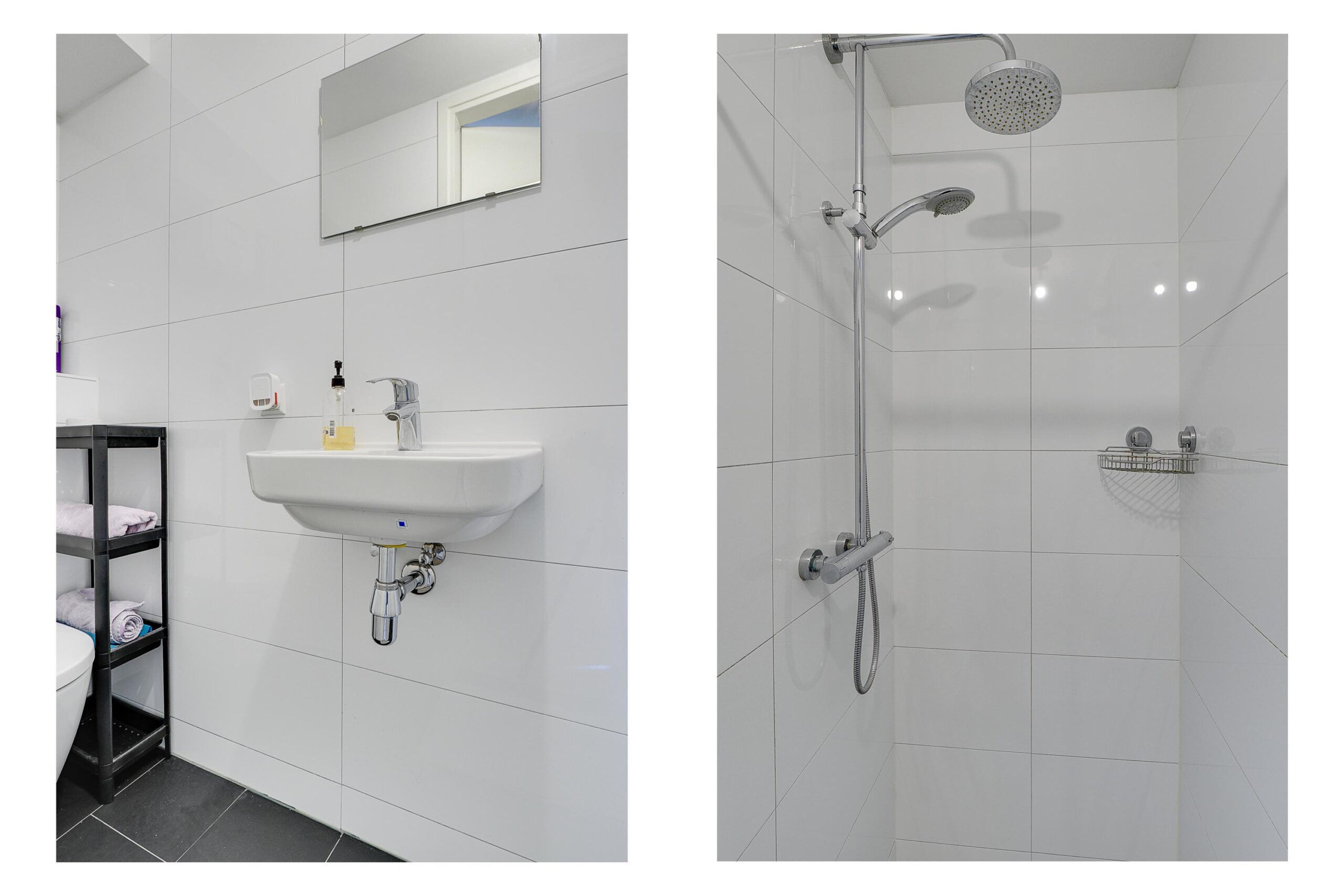 – Badkamer met douche, toilet en wastafel uit 2023.